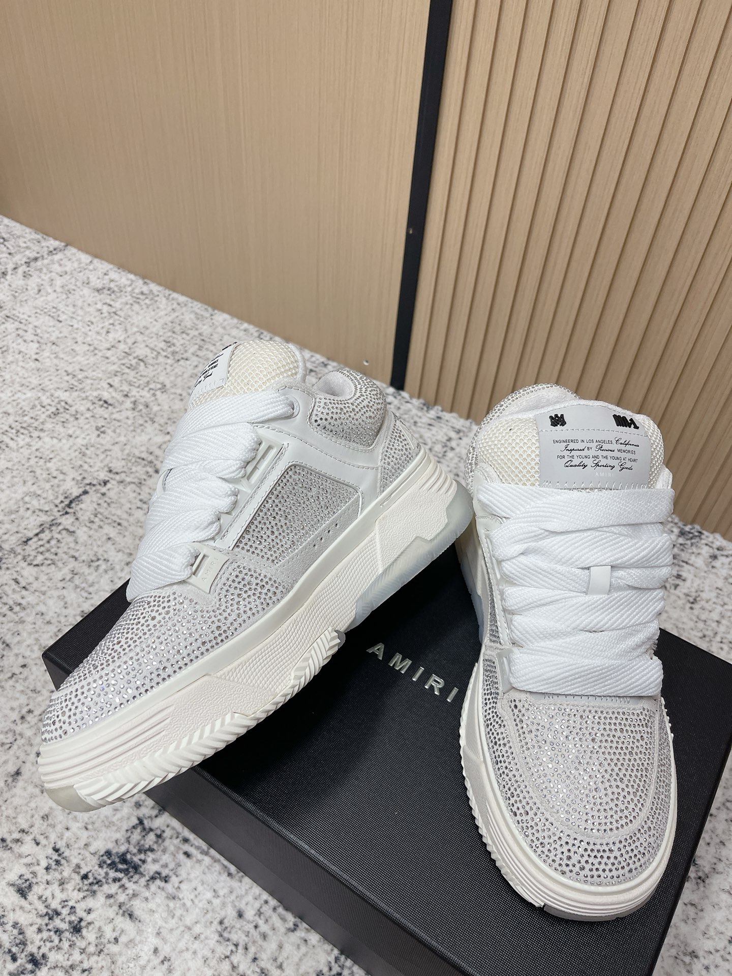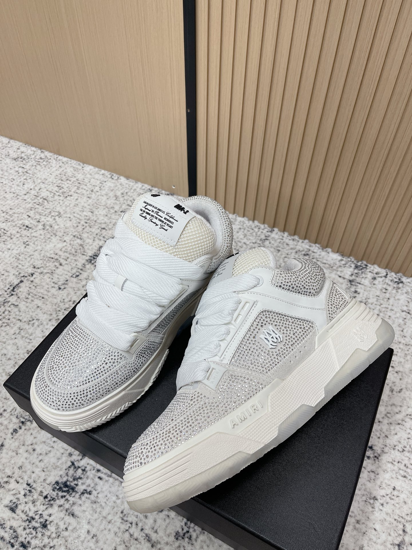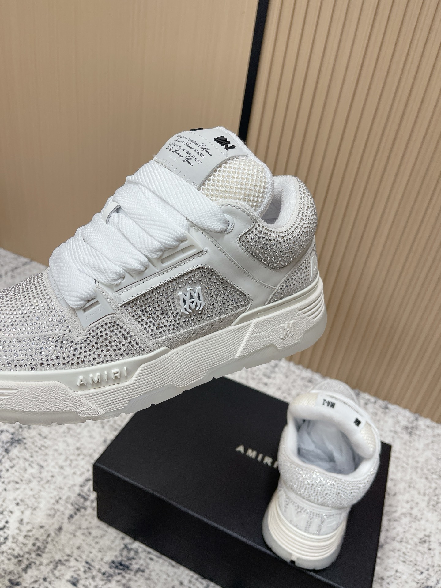 這款鞋子是AAAAA 1:1 質量(非常棒). 使用了和原版一模一樣的材料. 商標部分也保持了和AMIRI一樣. 圖片拍攝是實物鞋子拍攝, 您所收到的實物保證和我們圖片一模一樣.