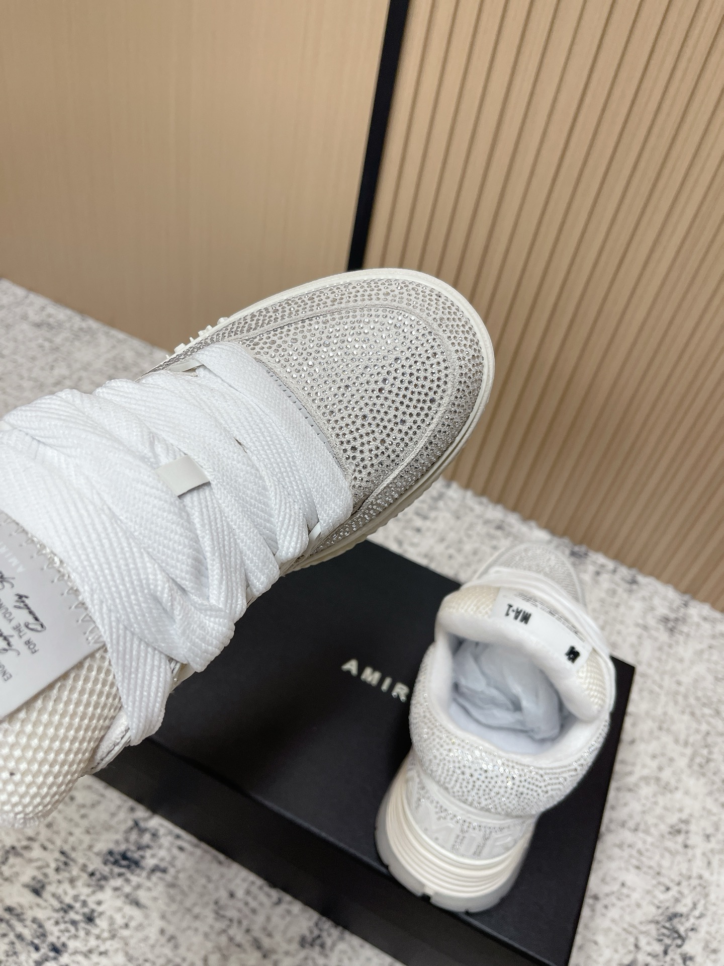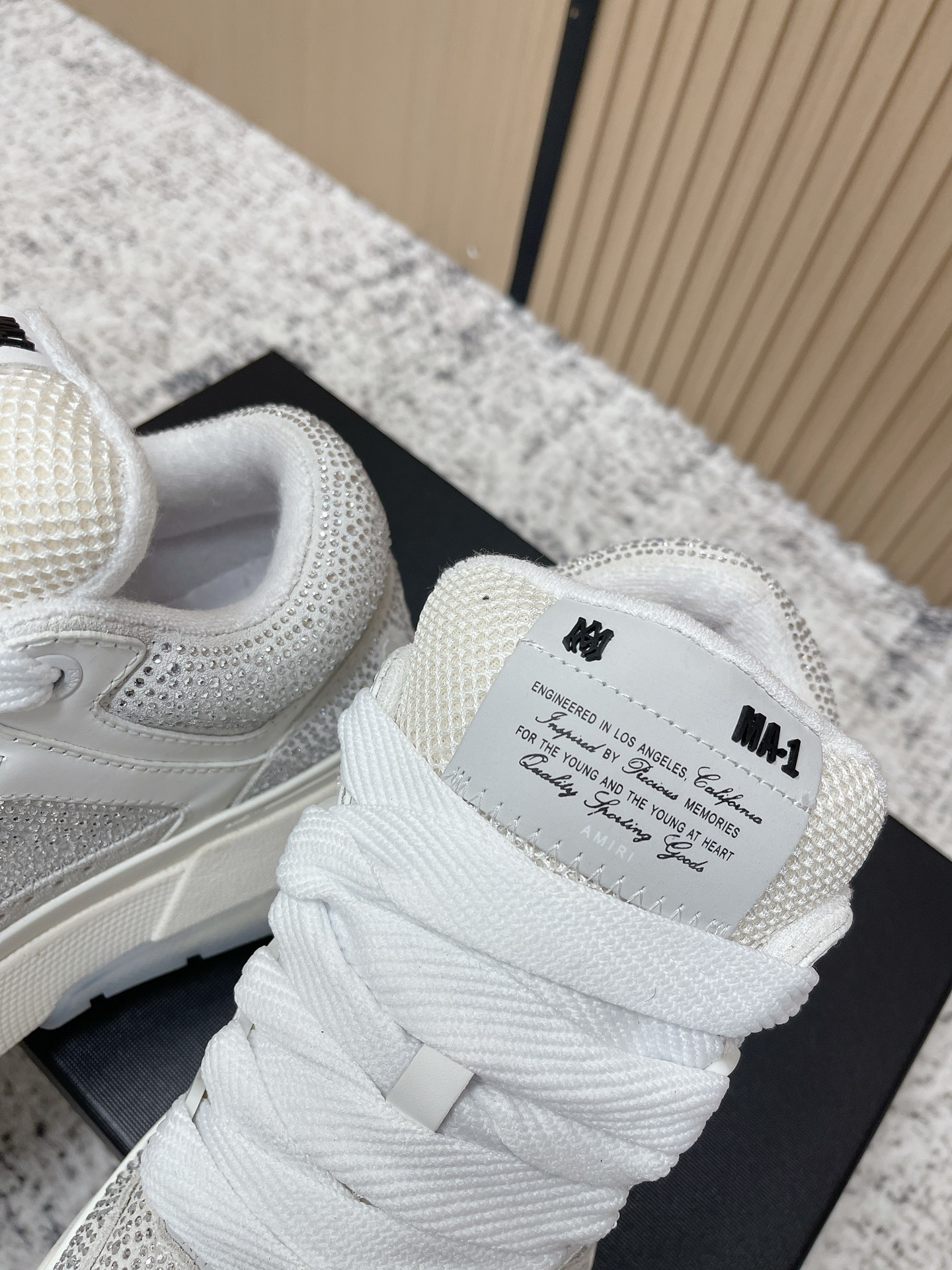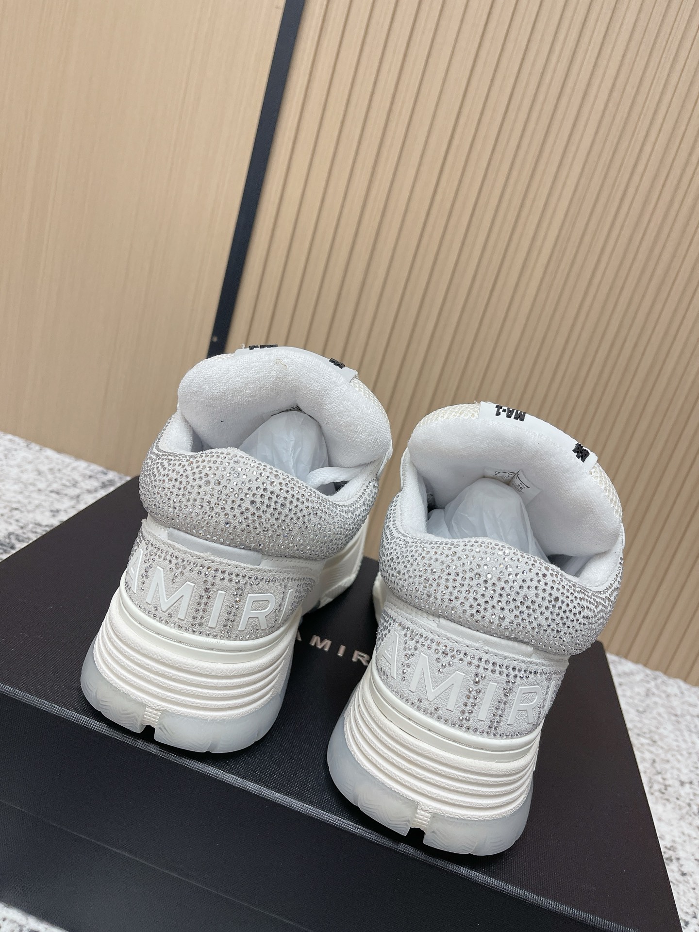 這款鞋子是AAAAA 1:1 質量(非常棒). 使用了和原版一模一樣的材料. 商標部分也保持了和AMIRI一樣. 圖片拍攝是實物鞋子拍攝, 您所收到的實物保證和我們圖片一模一樣.