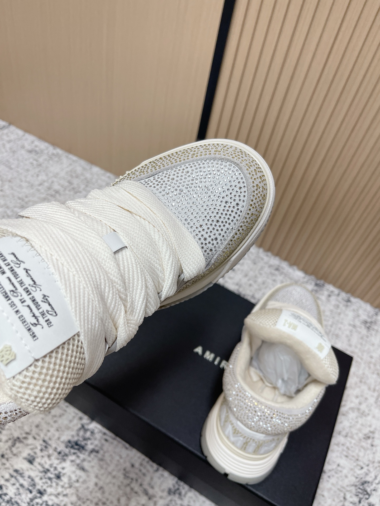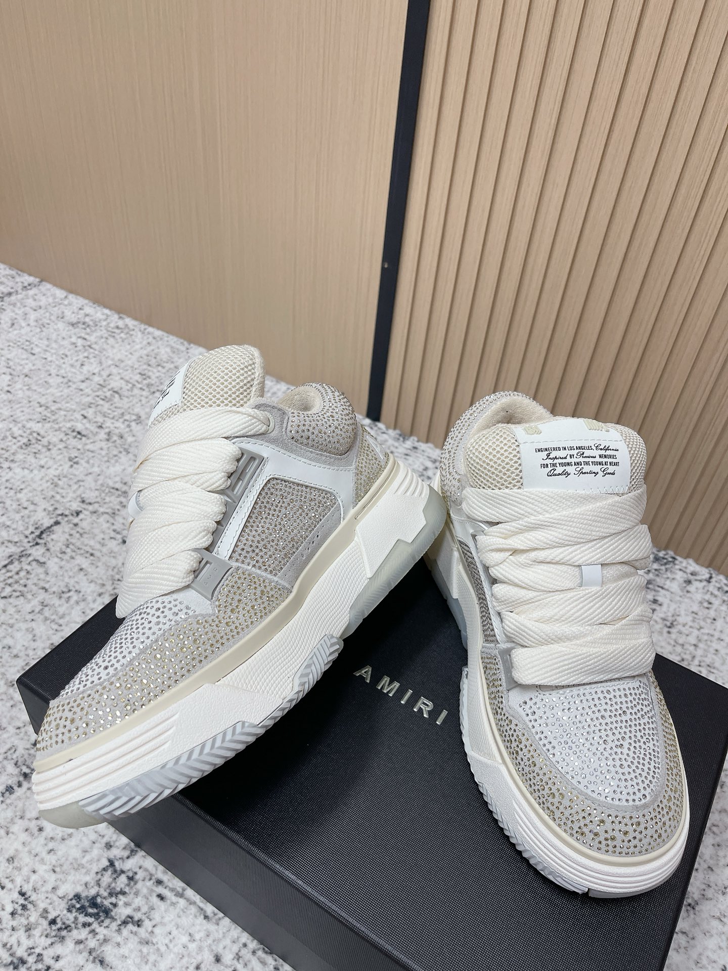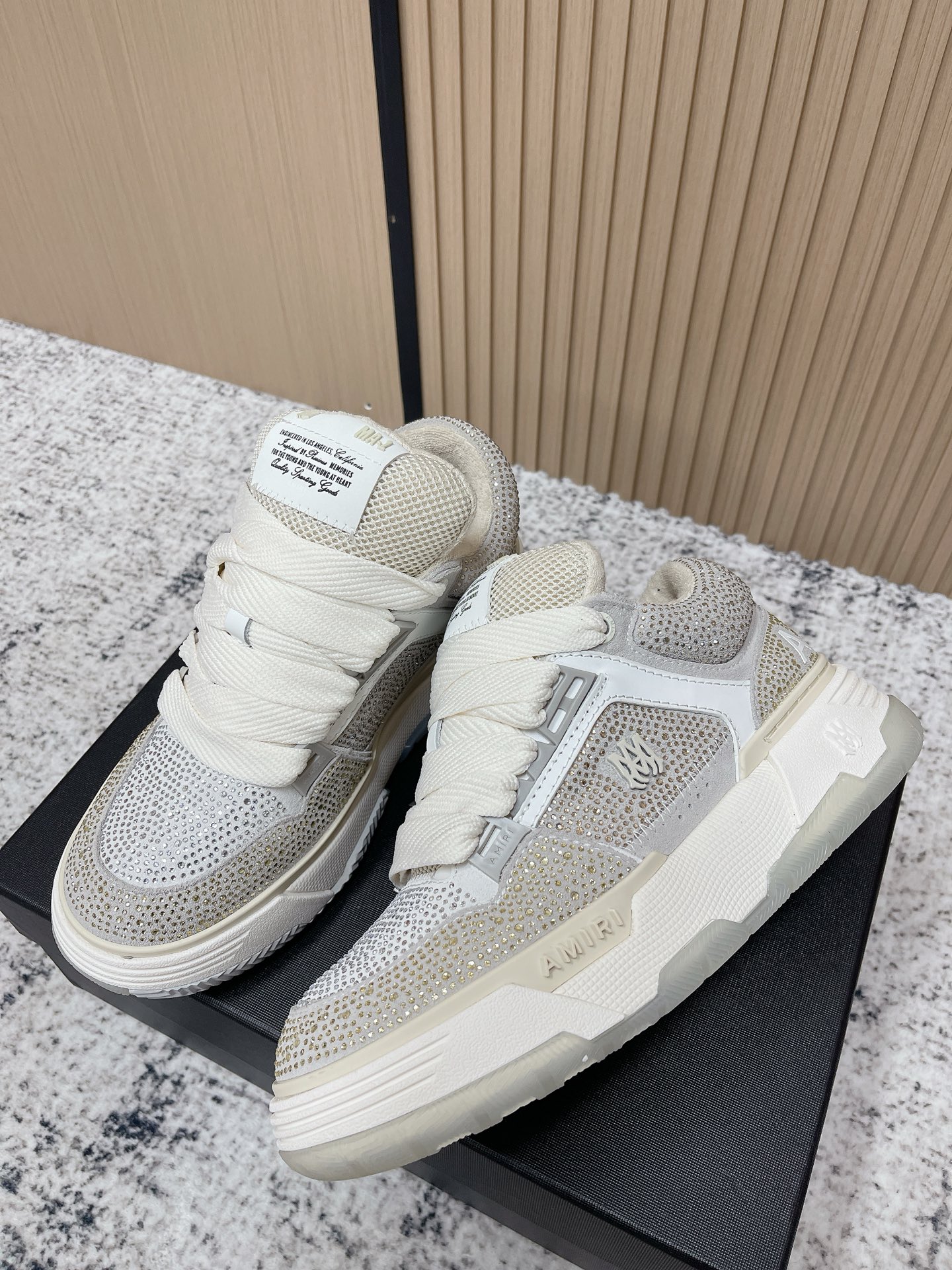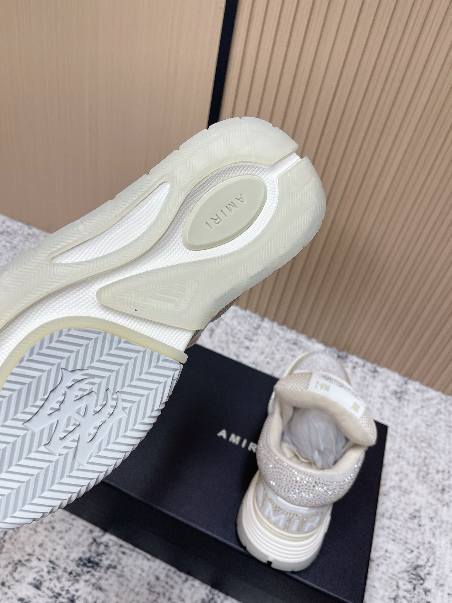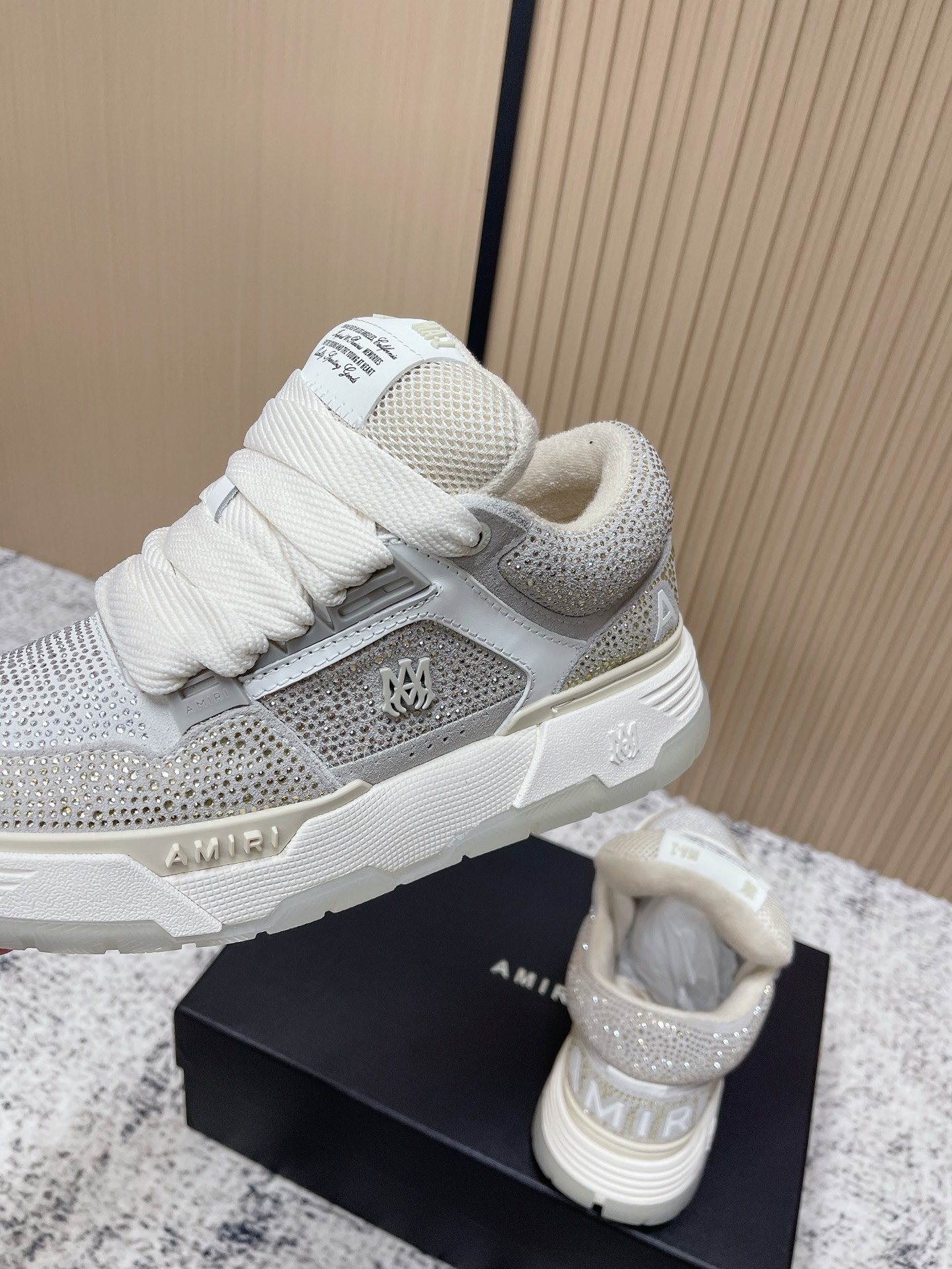 這款鞋子是AAAAA 1:1 質量(非常棒). 使用了和原版一模一樣的材料. 商標部分也保持了和AMIRI一樣. 圖片拍攝是實物鞋子拍攝, 您所收到的實物保證和我們圖片一模一樣.