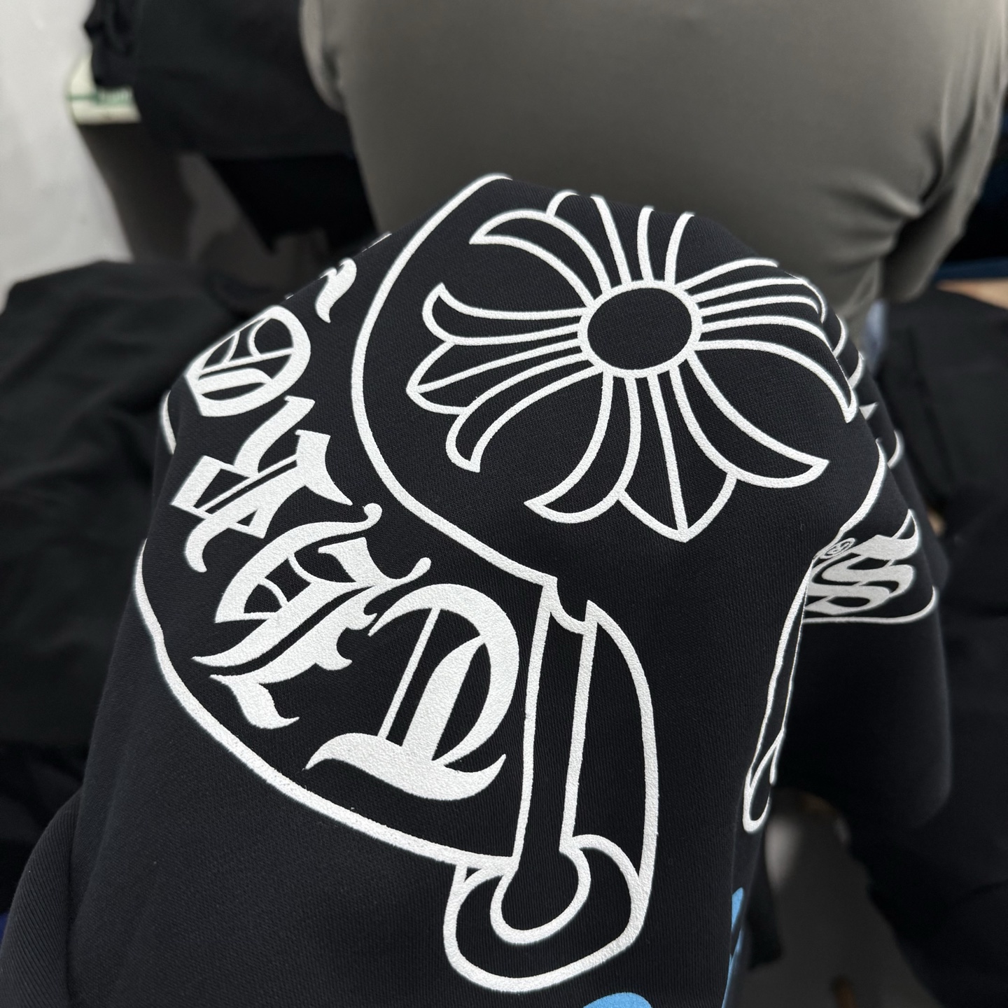 這款衣服是AAAAA 1:1 質量(非常棒). 使用了和原版一模一樣的材料. 商標部分也保持了和鉻心/Chrome Hearts一樣. 圖片拍攝是實物衣服拍攝, 您所收到的實物保證和我們圖片一模一樣.