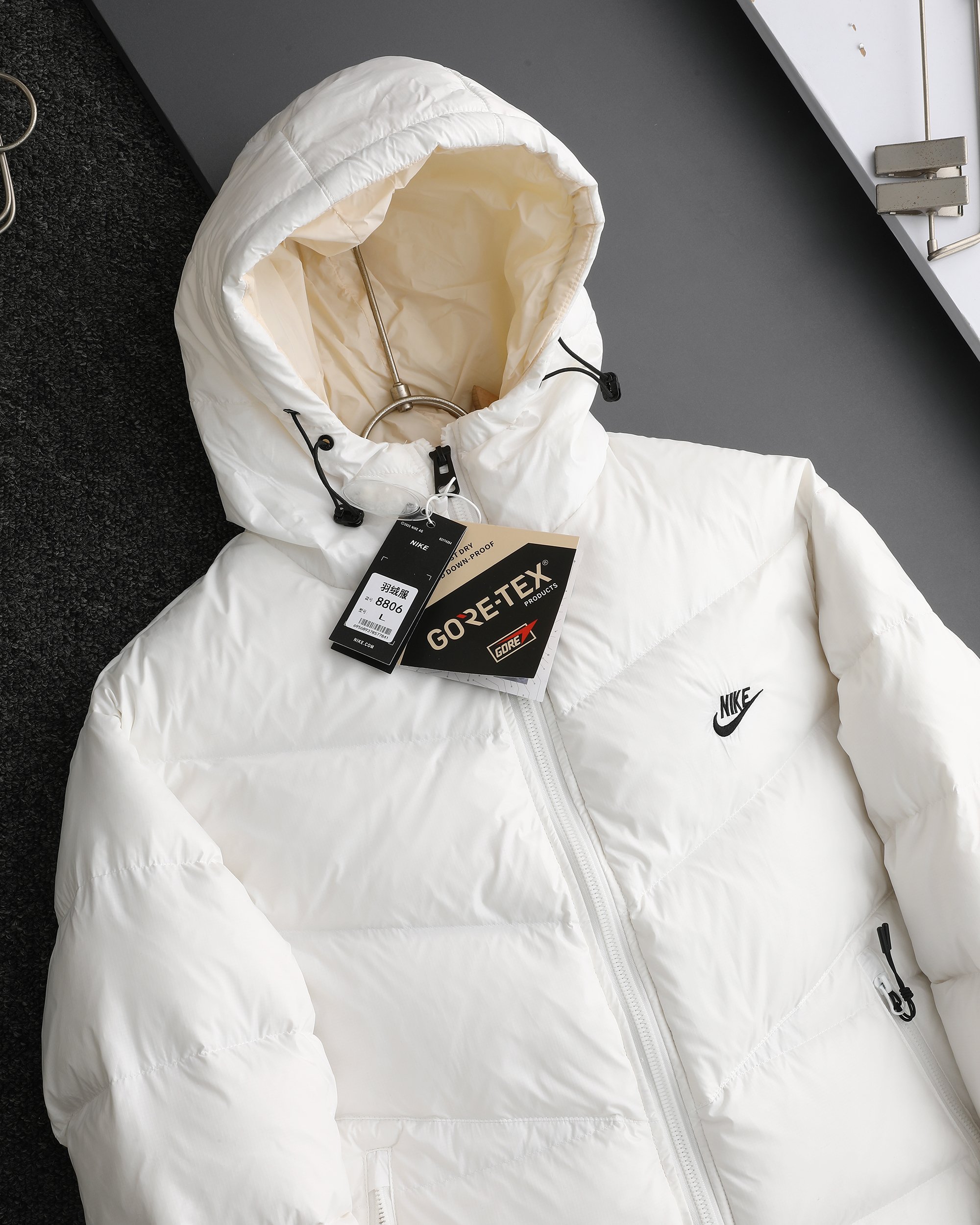 這款衣服是AAAAA 1:1 質量(非常棒). 使用了和原版一模一樣的材料. 商標部分也保持了和Nike一樣. 圖片拍攝是實物衣服拍攝, 您所收到的實物保證和我們圖片一模一樣.