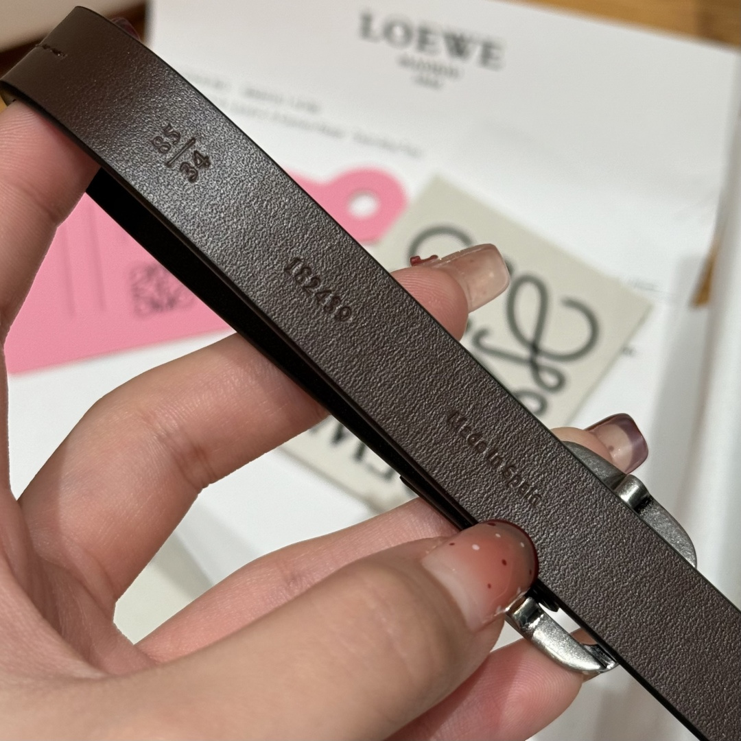 這款皮帶是AAAAA 1:1 質量(非常棒). 使用了和原版一模一樣的材料. 商標部分也保持了和Loewe一樣. 圖片拍攝是實物皮帶拍攝, 您所收到的實物保證和我們圖片一模一樣.