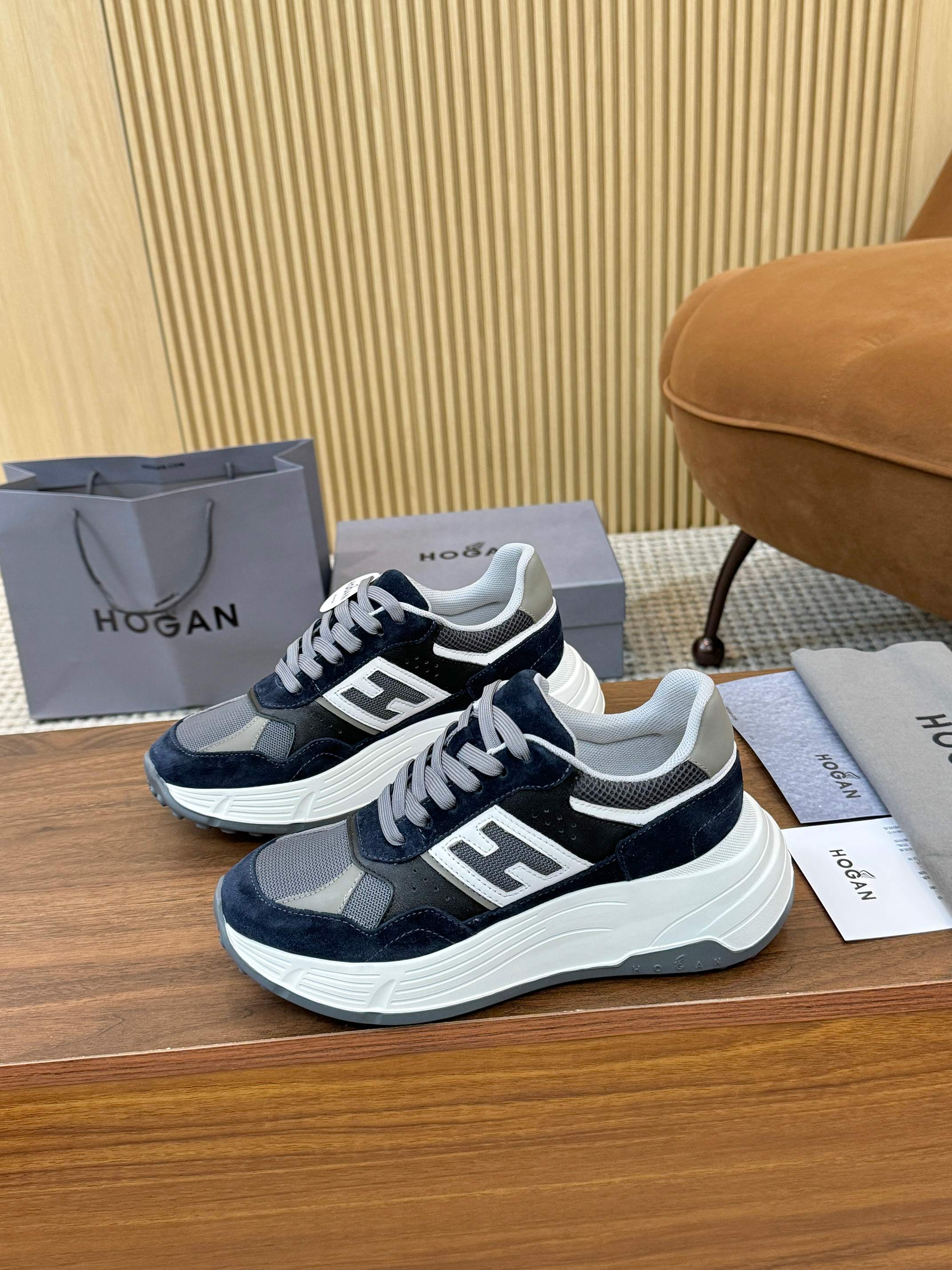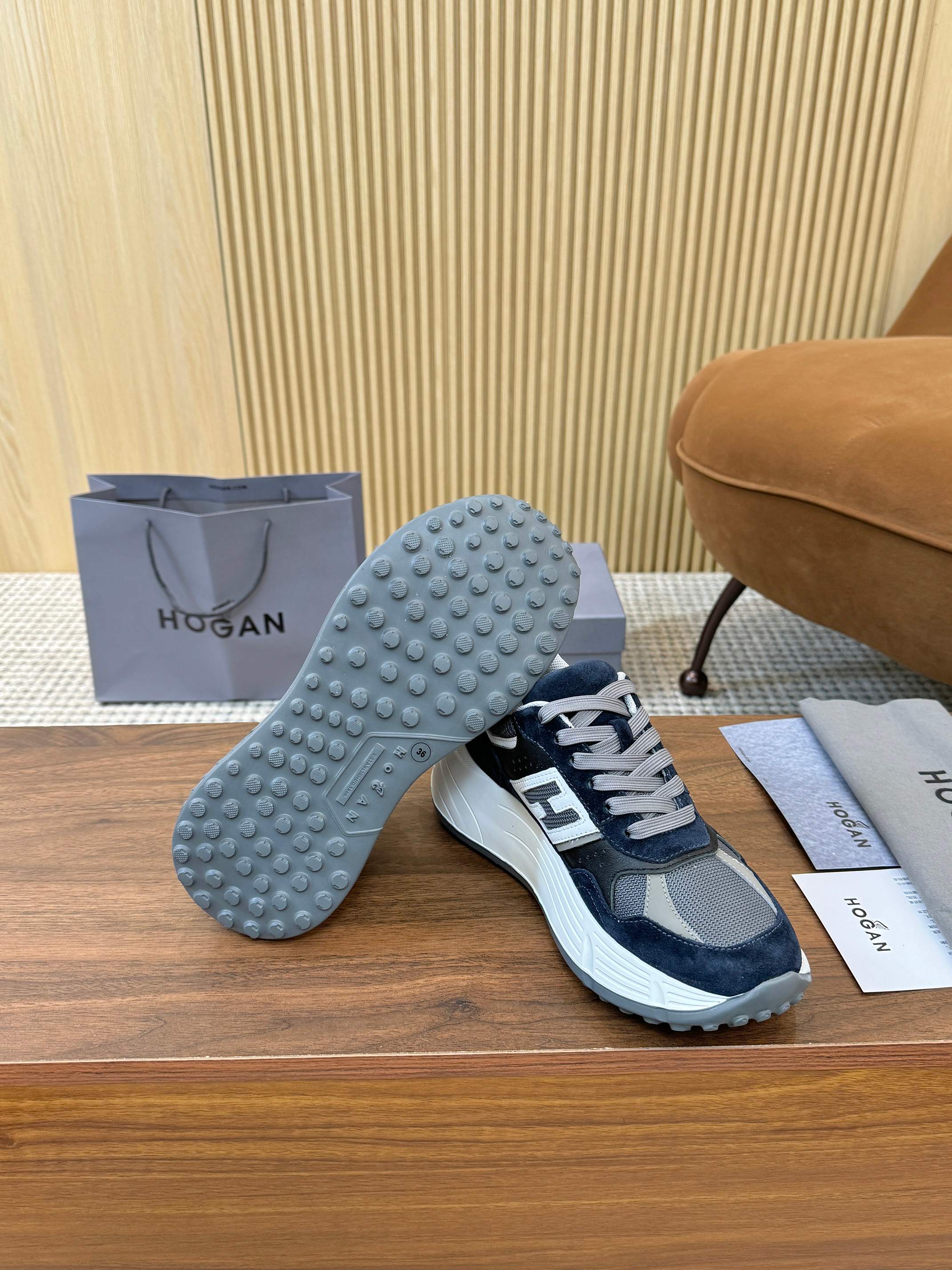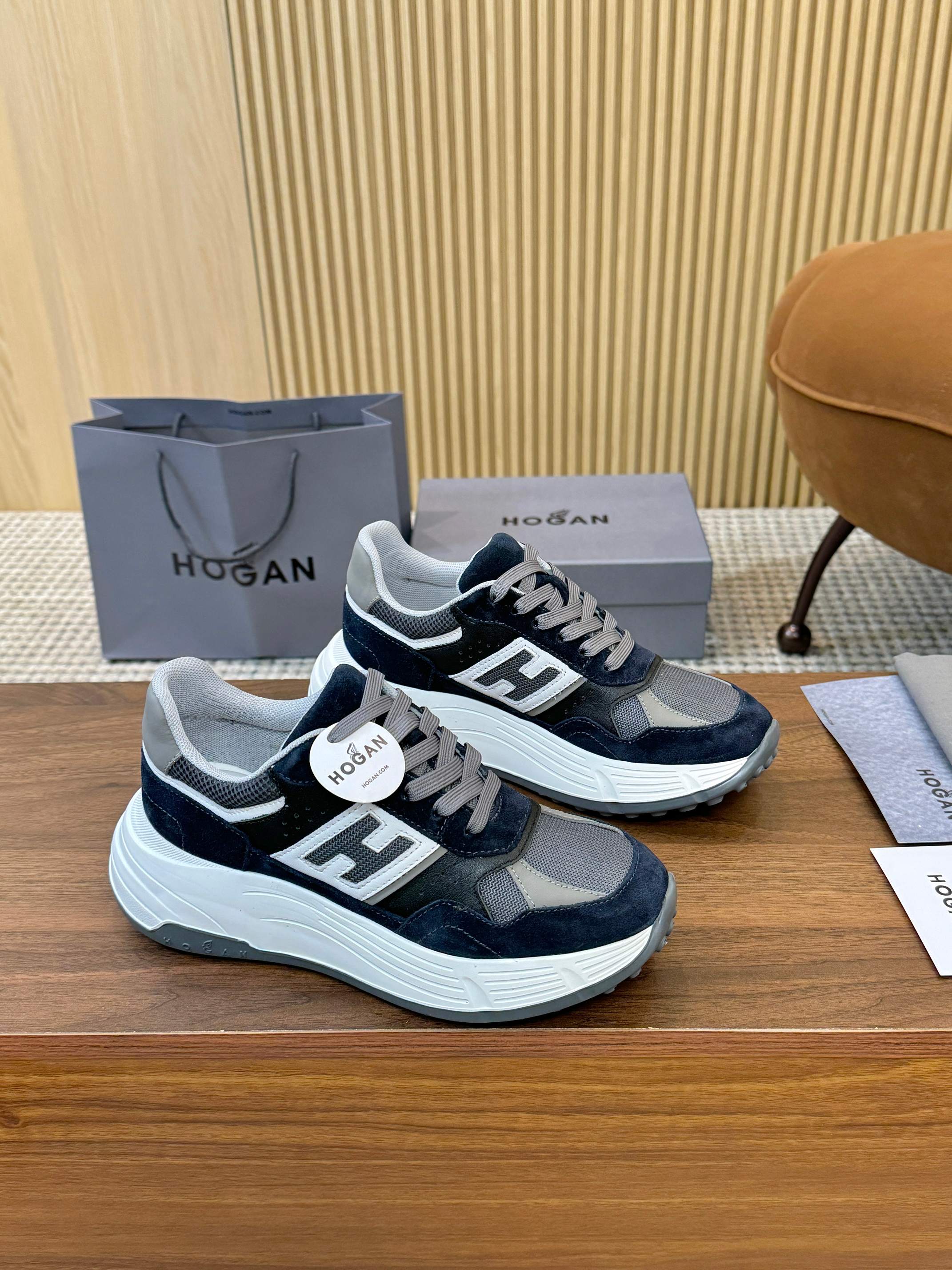 這款鞋子是AAAAA 1:1 質量(非常棒). 使用了和原版一模一樣的材料. 商標部分也保持了和Hogan一樣. 圖片拍攝是實物鞋子拍攝, 您所收到的實物保證和我們圖片一模一樣.