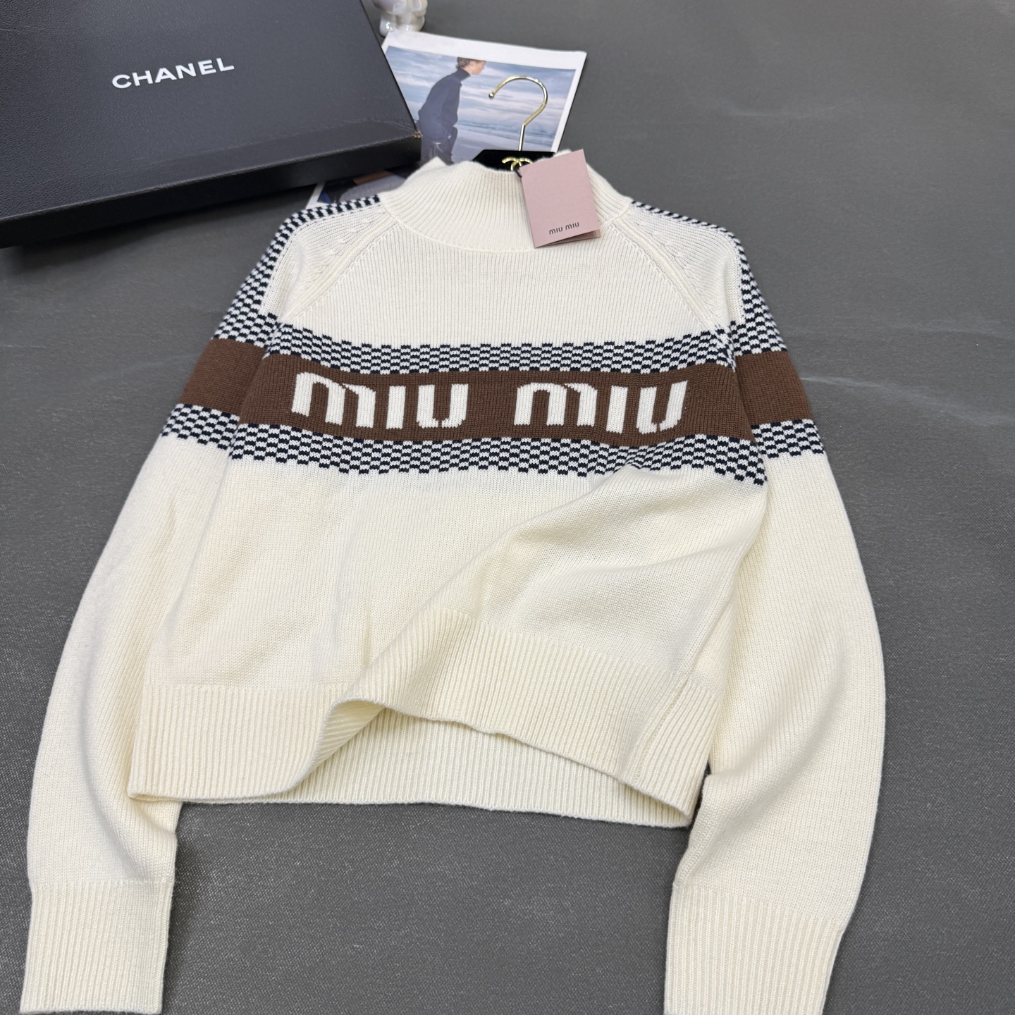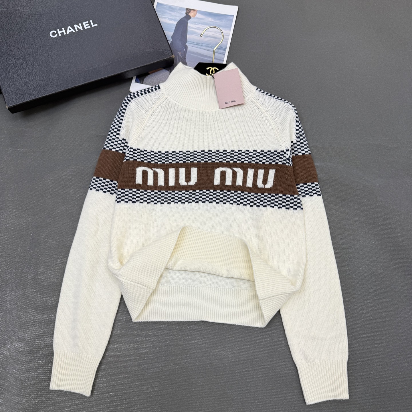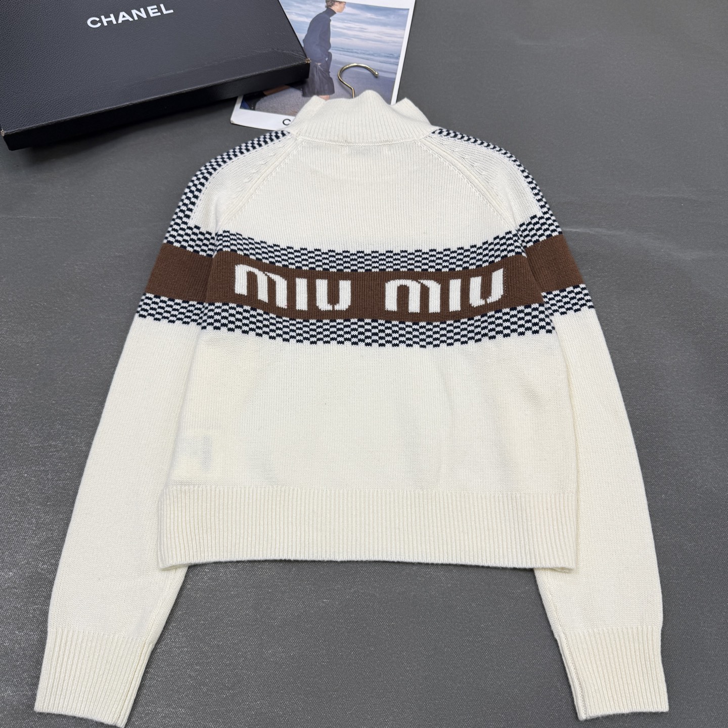 這款衣服是AAAAA 1:1 質量(非常棒). 使用了和原版一模一樣的材料. 商標部分也保持了和繆繆/Miu Miu一樣. 圖片拍攝是實物衣服拍攝, 您所收到的實物保證和我們圖片一模一樣.