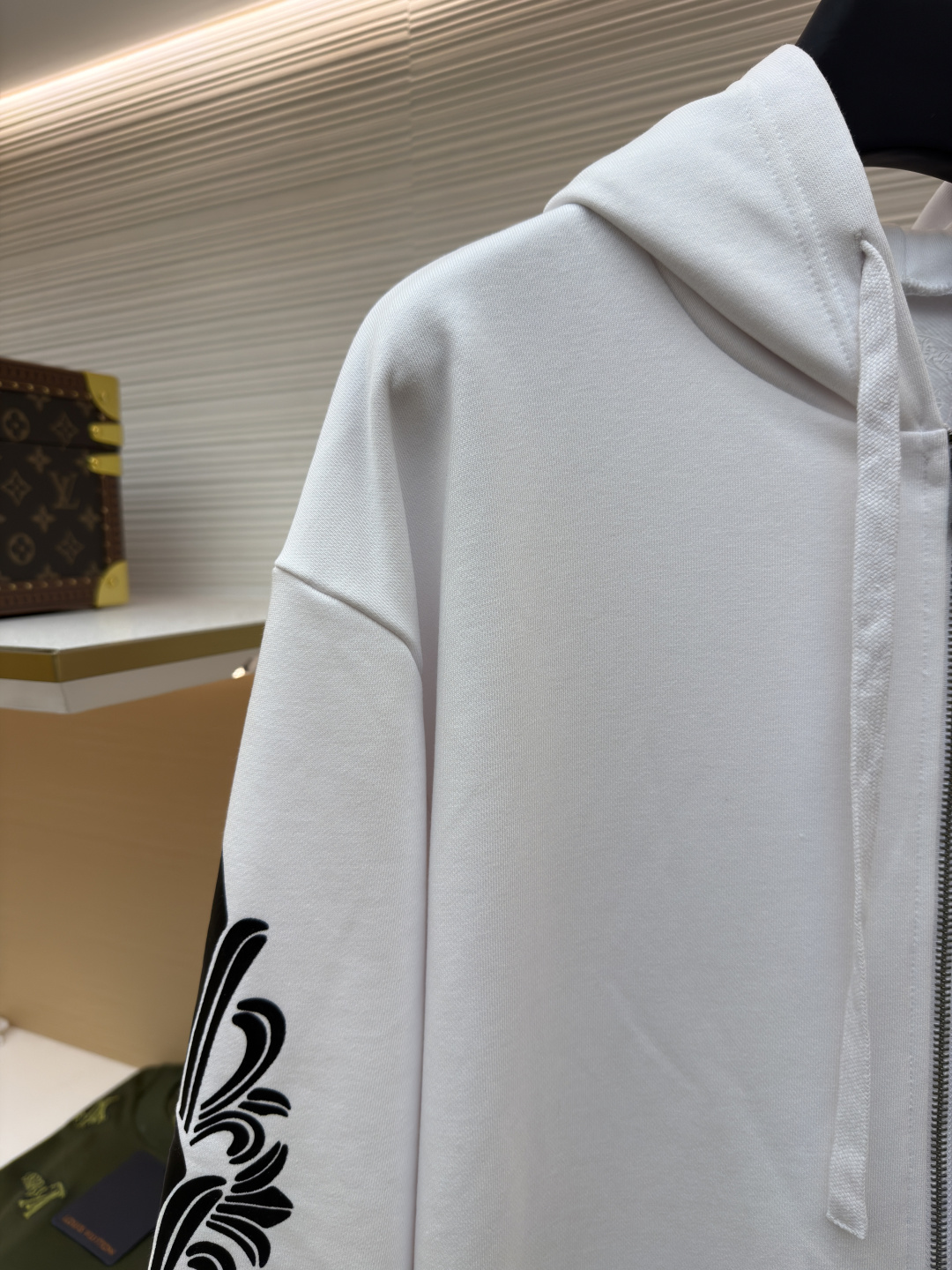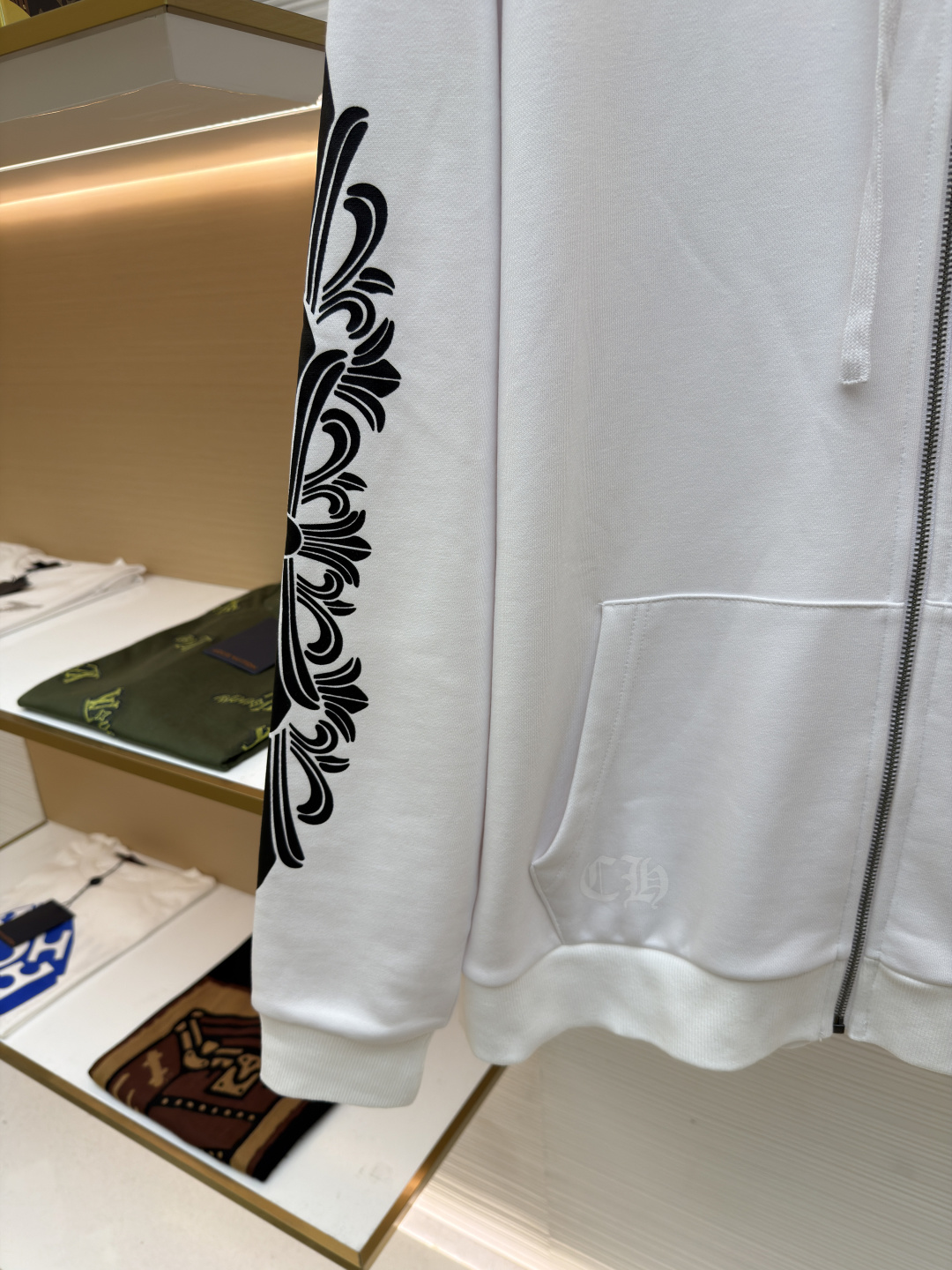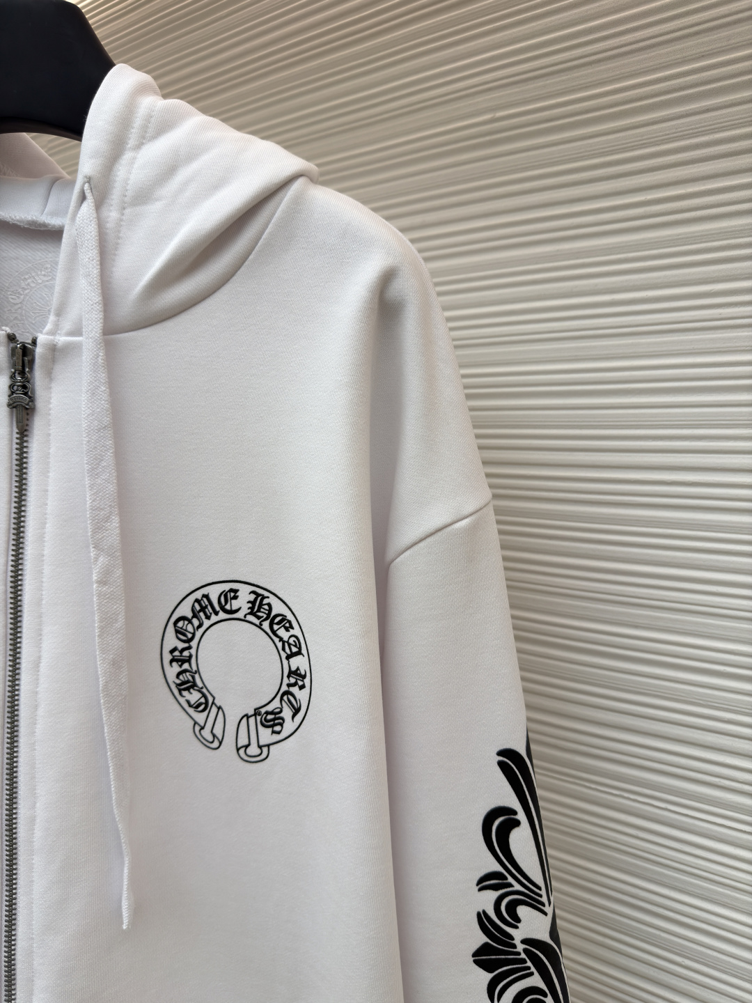 這款衣服是AAAAA 1:1 質量(非常棒). 使用了和原版一模一樣的材料. 商標部分也保持了和鉻心/Chrome Hearts一樣. 圖片拍攝是實物衣服拍攝, 您所收到的實物保證和我們圖片一模一樣.