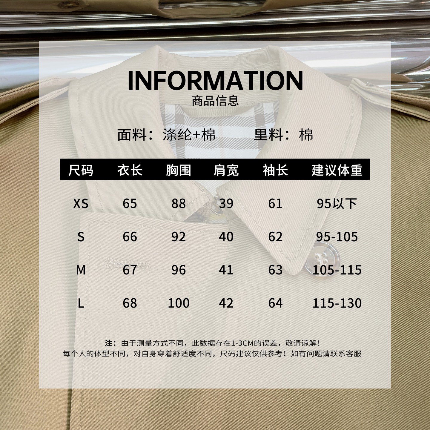 這款衣服是AAAAA 1:1 質量(非常棒). 使用了和原版一模一樣的材料. 商標部分也保持了和巴寶莉/Burberry一樣. 圖片拍攝是實物衣服拍攝, 您所收到的實物保證和我們圖片一模一樣.