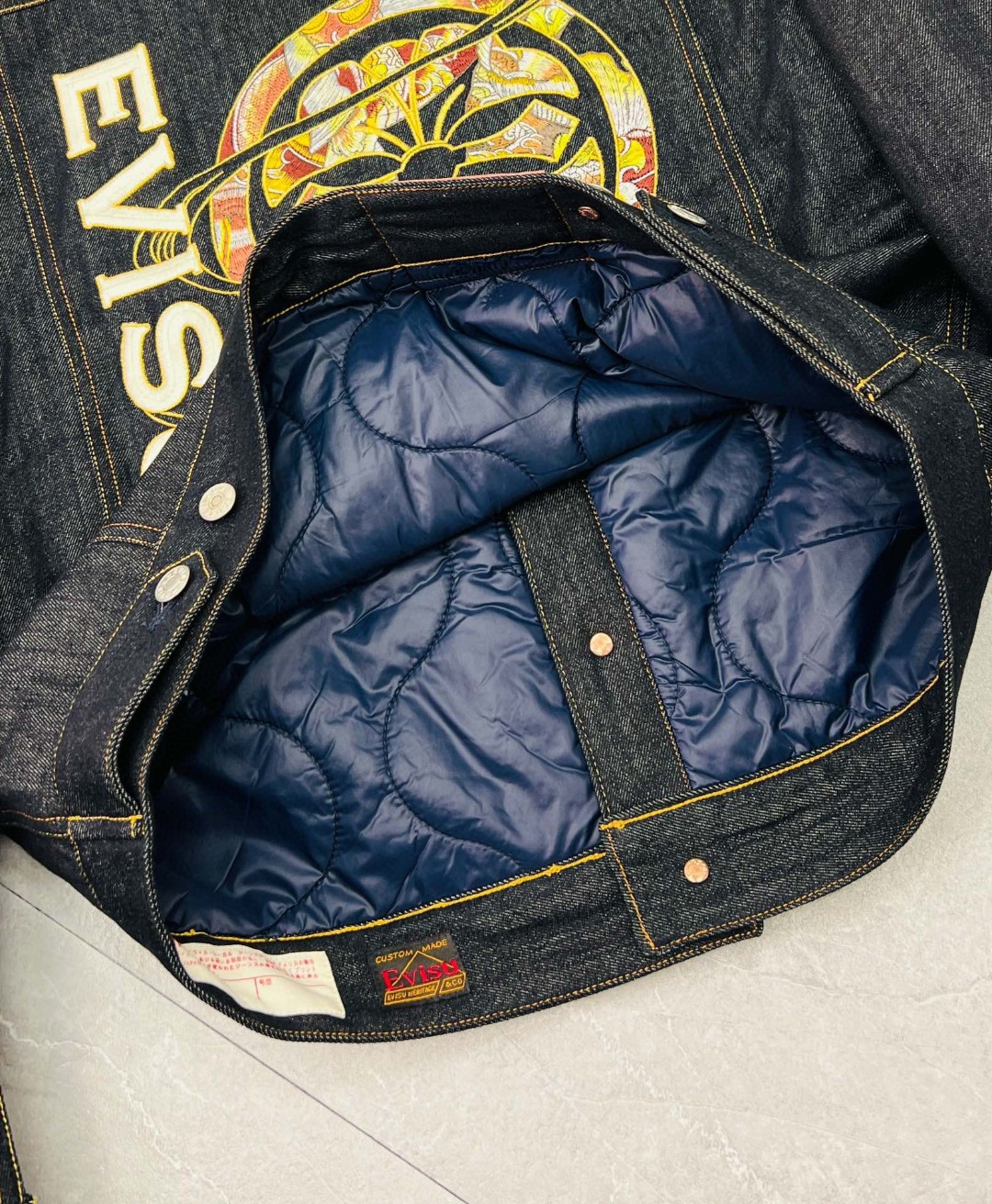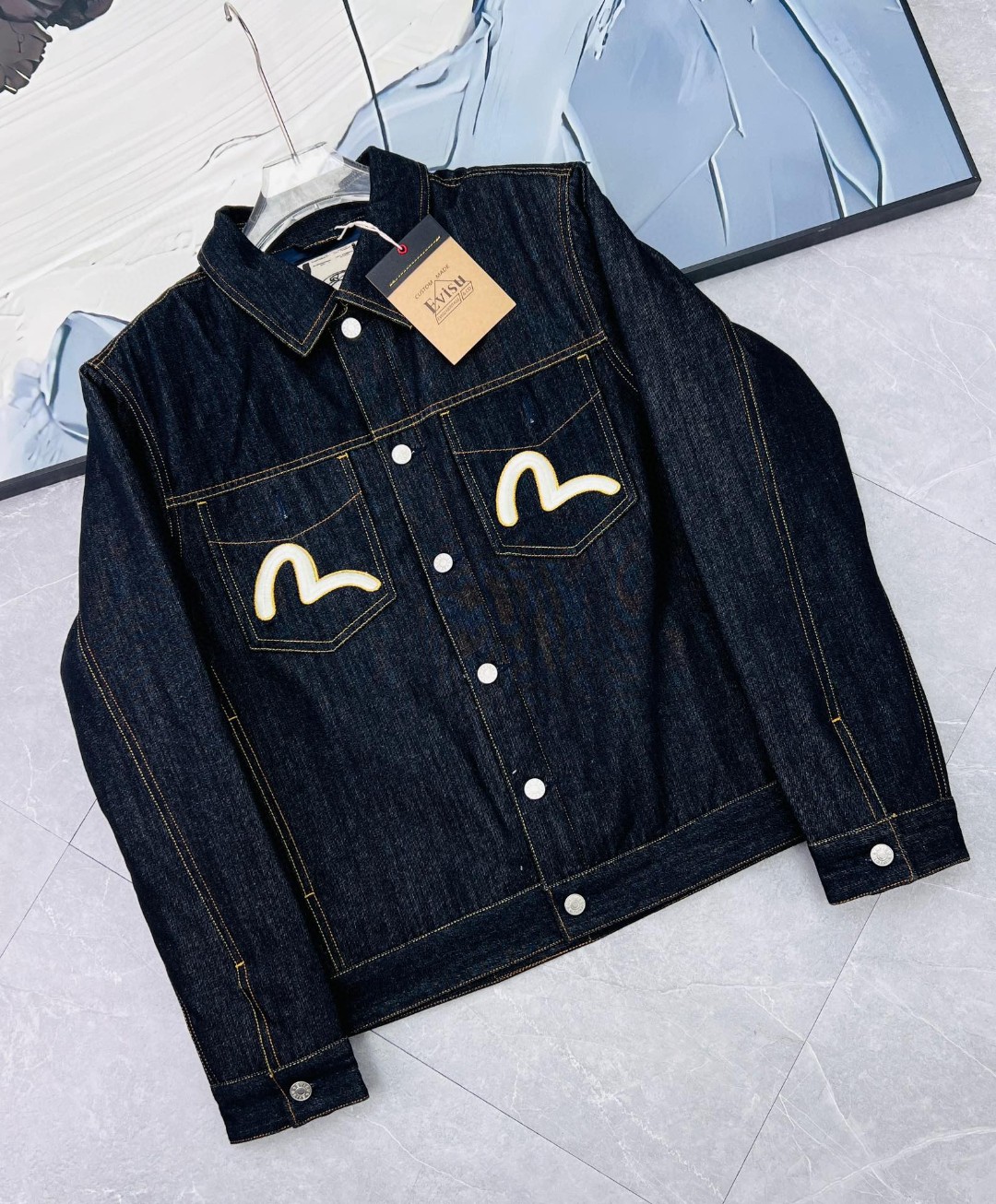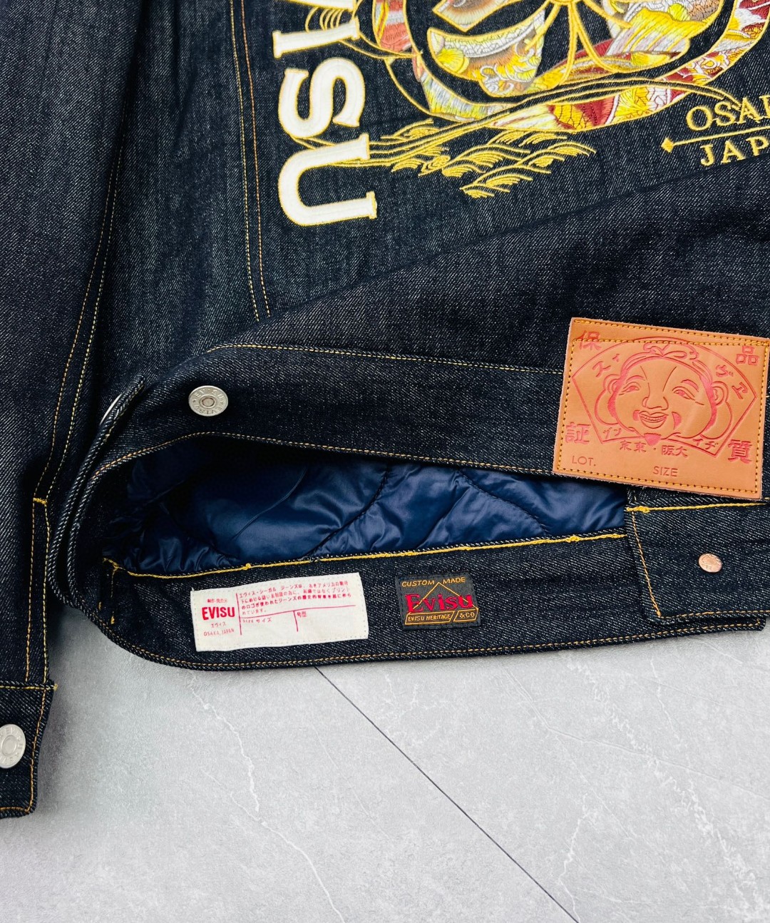 這款衣服是AAAAA 1:1 質量(非常棒). 使用了和原版一模一樣的材料. 商標部分也保持了和EVISU一樣. 圖片拍攝是實物衣服拍攝, 您所收到的實物保證和我們圖片一模一樣.