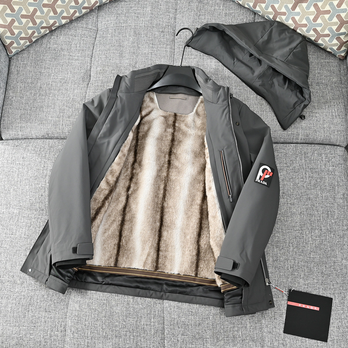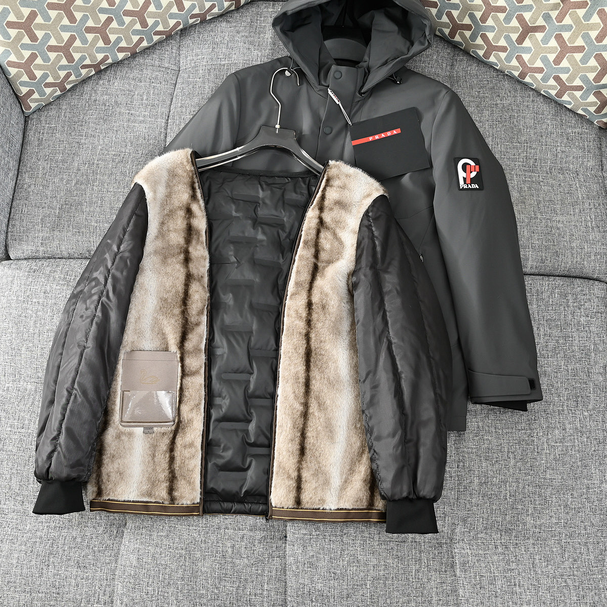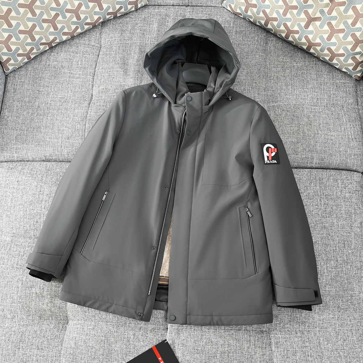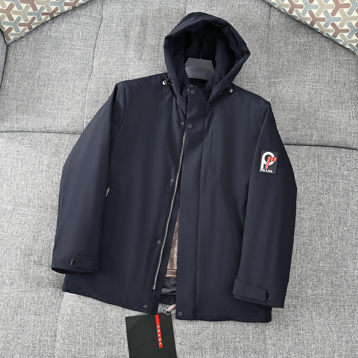 這款衣服是AAAAA 1:1 質量(非常棒). 使用了和原版一模一樣的材料. 商標部分也保持了和普拉達/Prada一樣. 圖片拍攝是實物衣服拍攝, 您所收到的實物保證和我們圖片一模一樣.