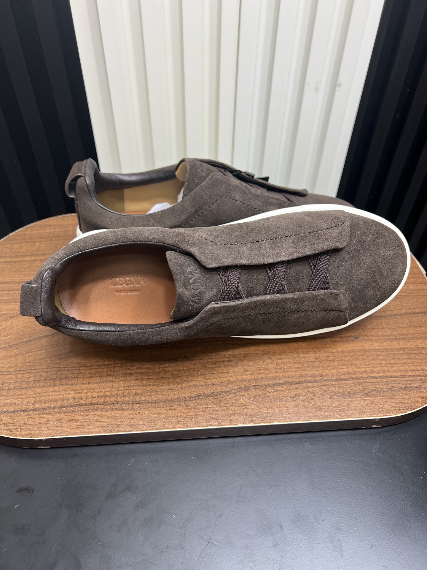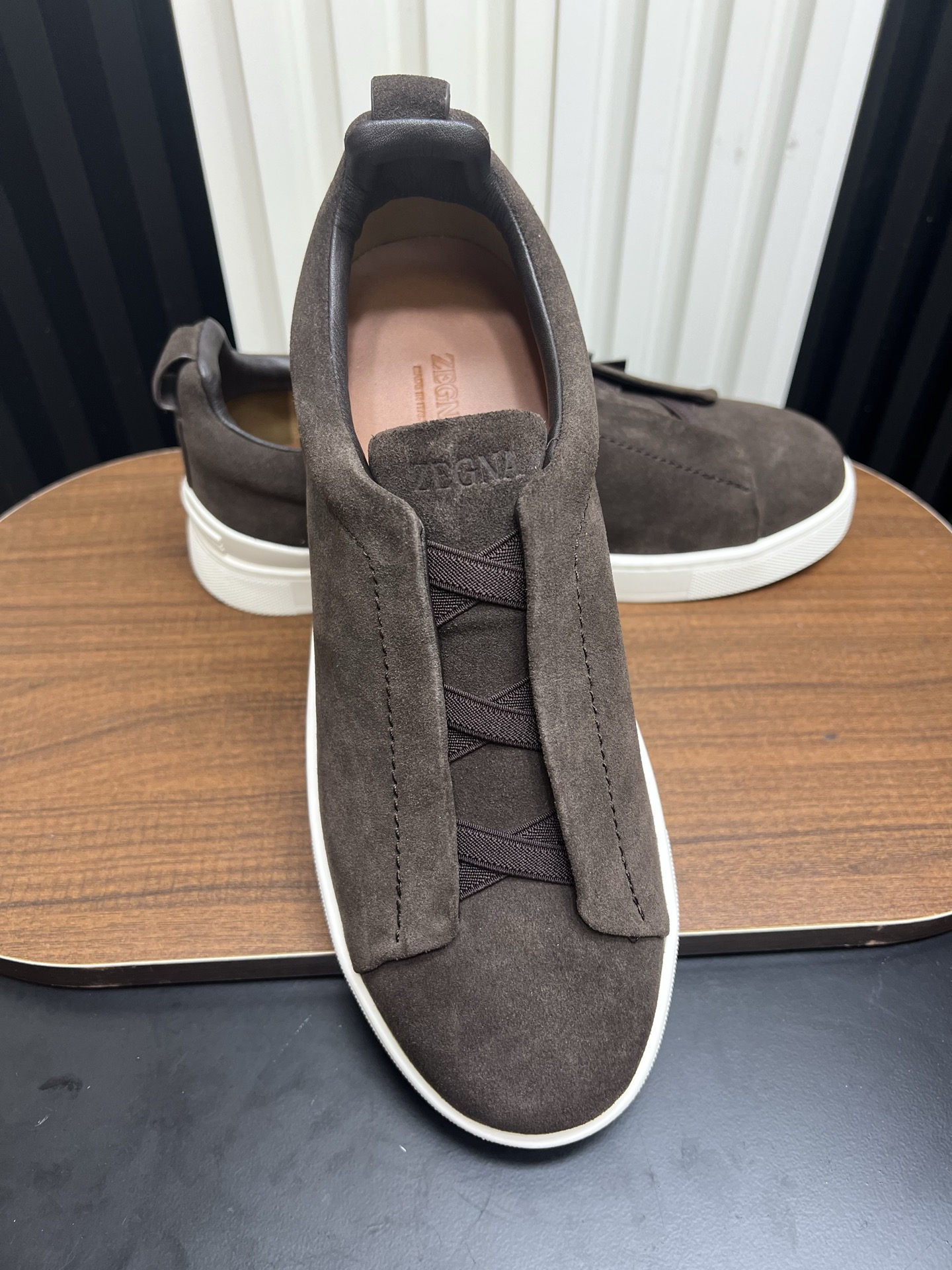 這款鞋子是AAAAA 1:1 質量(非常棒). 使用了和原版一模一樣的材料. 商標部分也保持了和Zegna一樣. 圖片拍攝是實物鞋子拍攝, 您所收到的實物保證和我們圖片一模一樣.