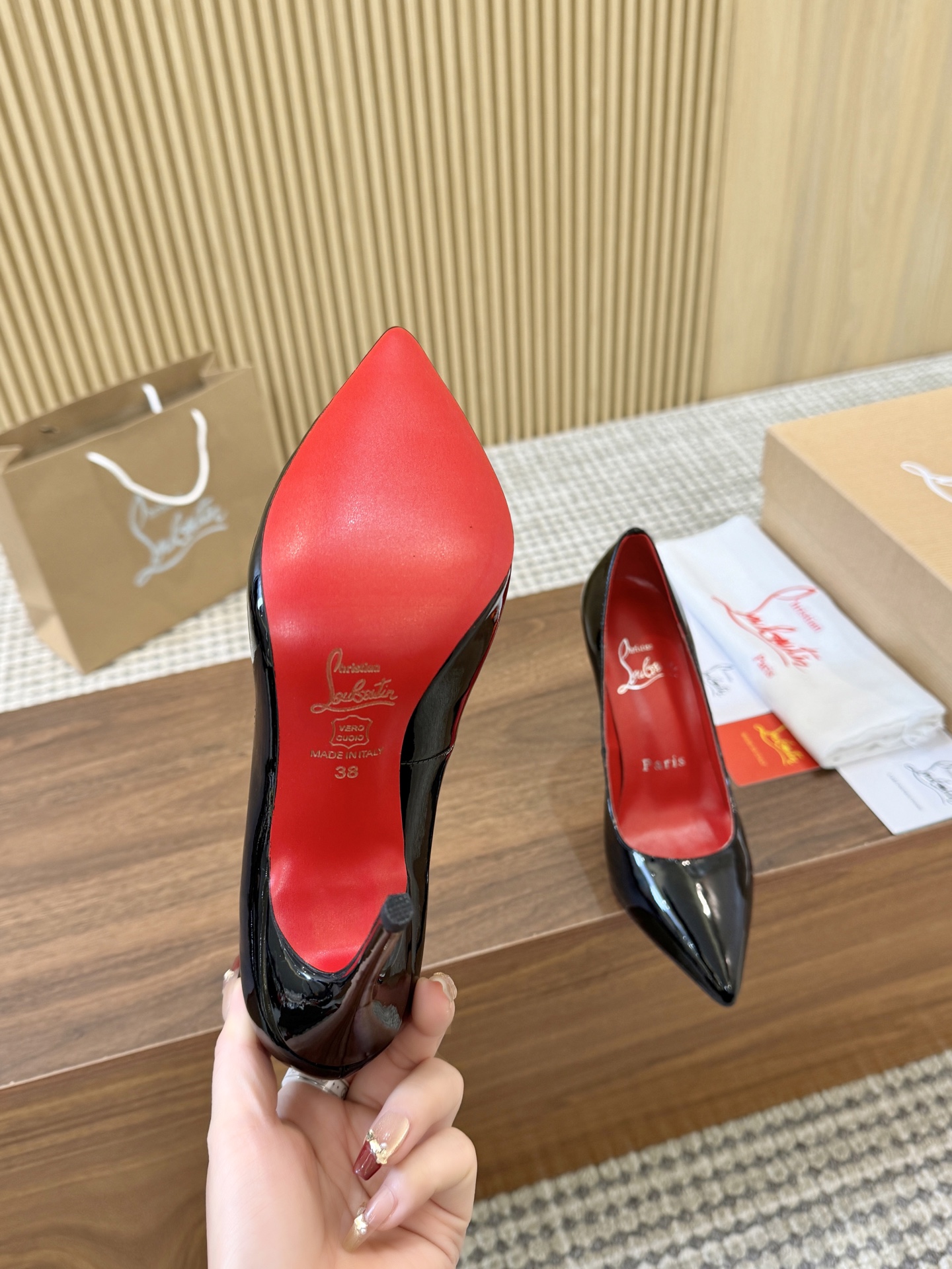 這款鞋子是AAAAA 1:1 質量(非常棒). 使用了和原版一模一樣的材料. 商標部分也保持了和Christian Louboutin一樣. 圖片拍攝是實物鞋子拍攝, 您所收到的實物保證和我們圖片一模一樣.