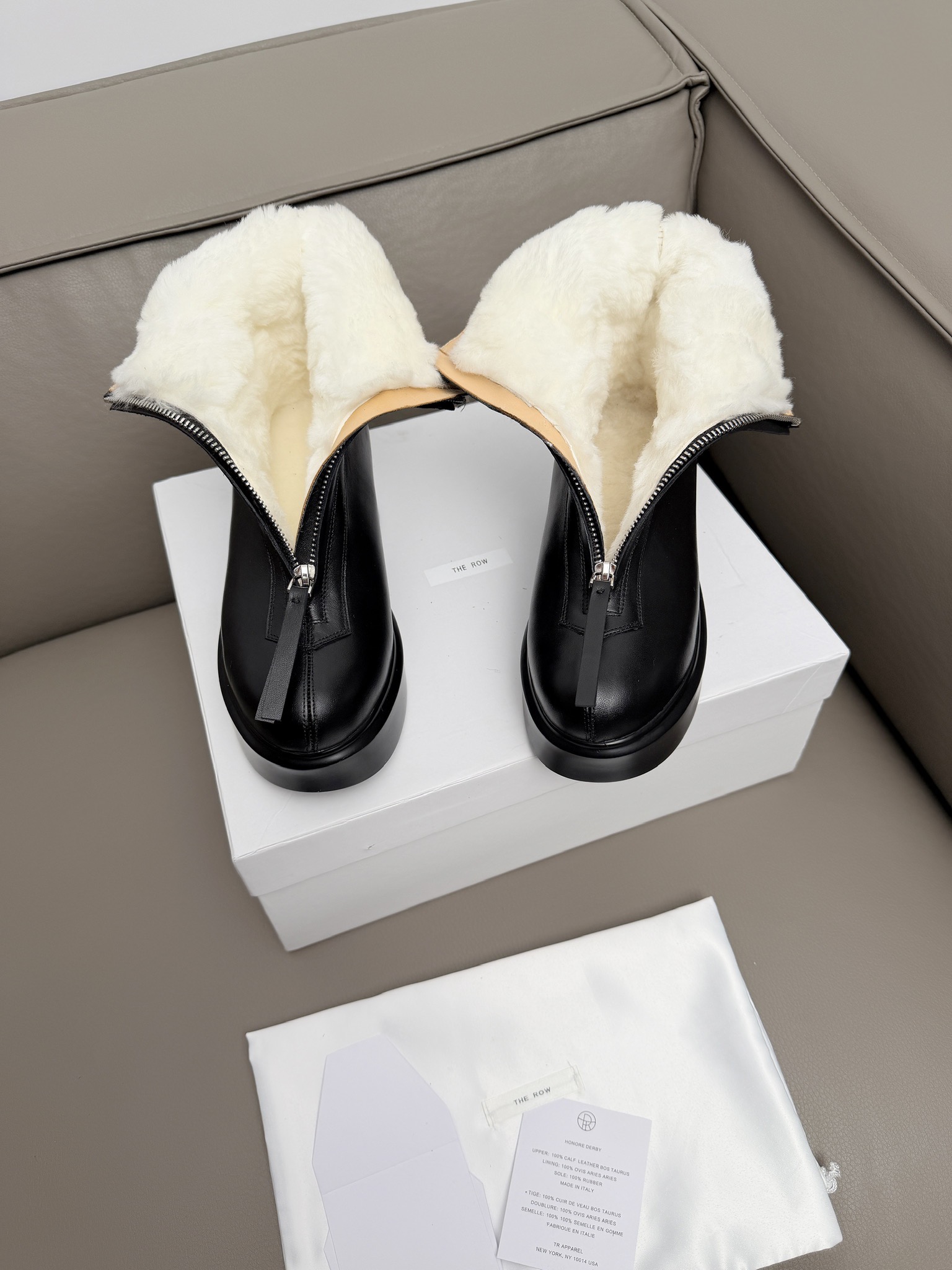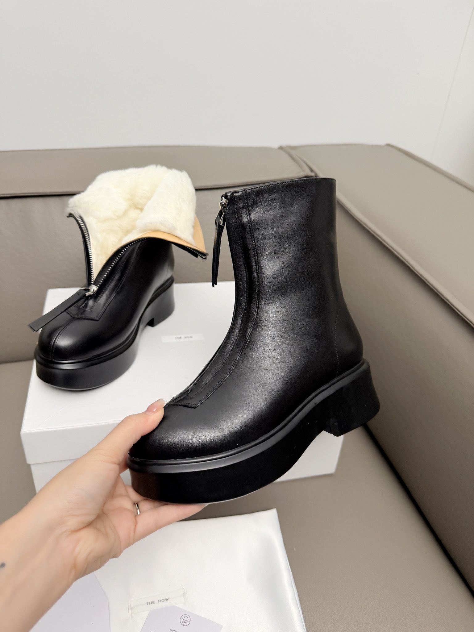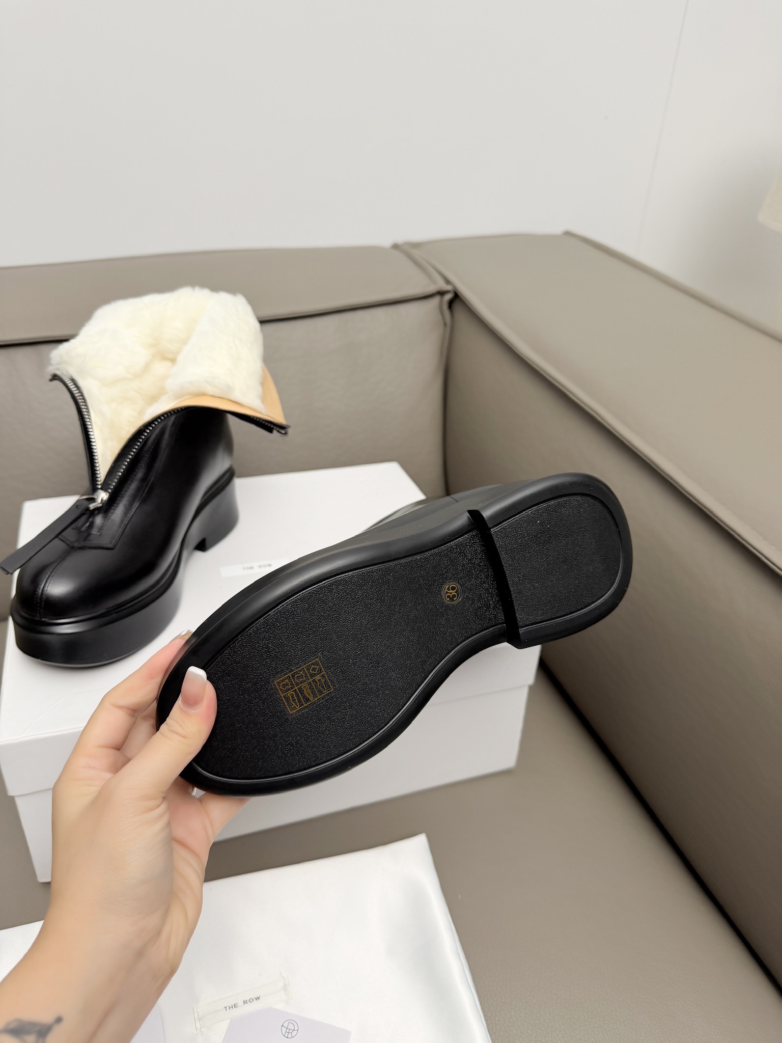 這款鞋子是AAAAA 1:1 質量(非常棒). 使用了和原版一模一樣的材料. 商標部分也保持了和The Row一樣. 圖片拍攝是實物鞋子拍攝, 您所收到的實物保證和我們圖片一模一樣.