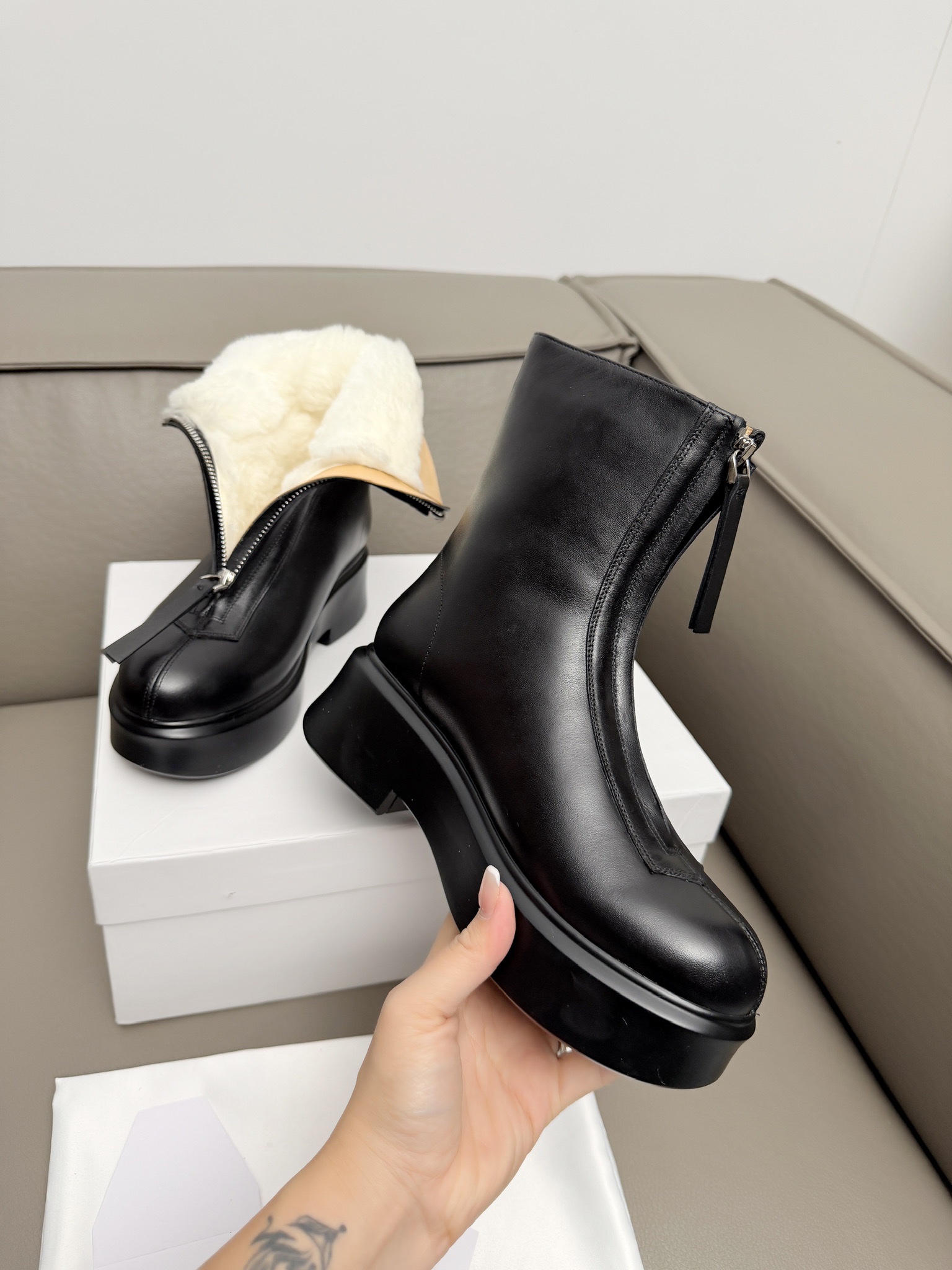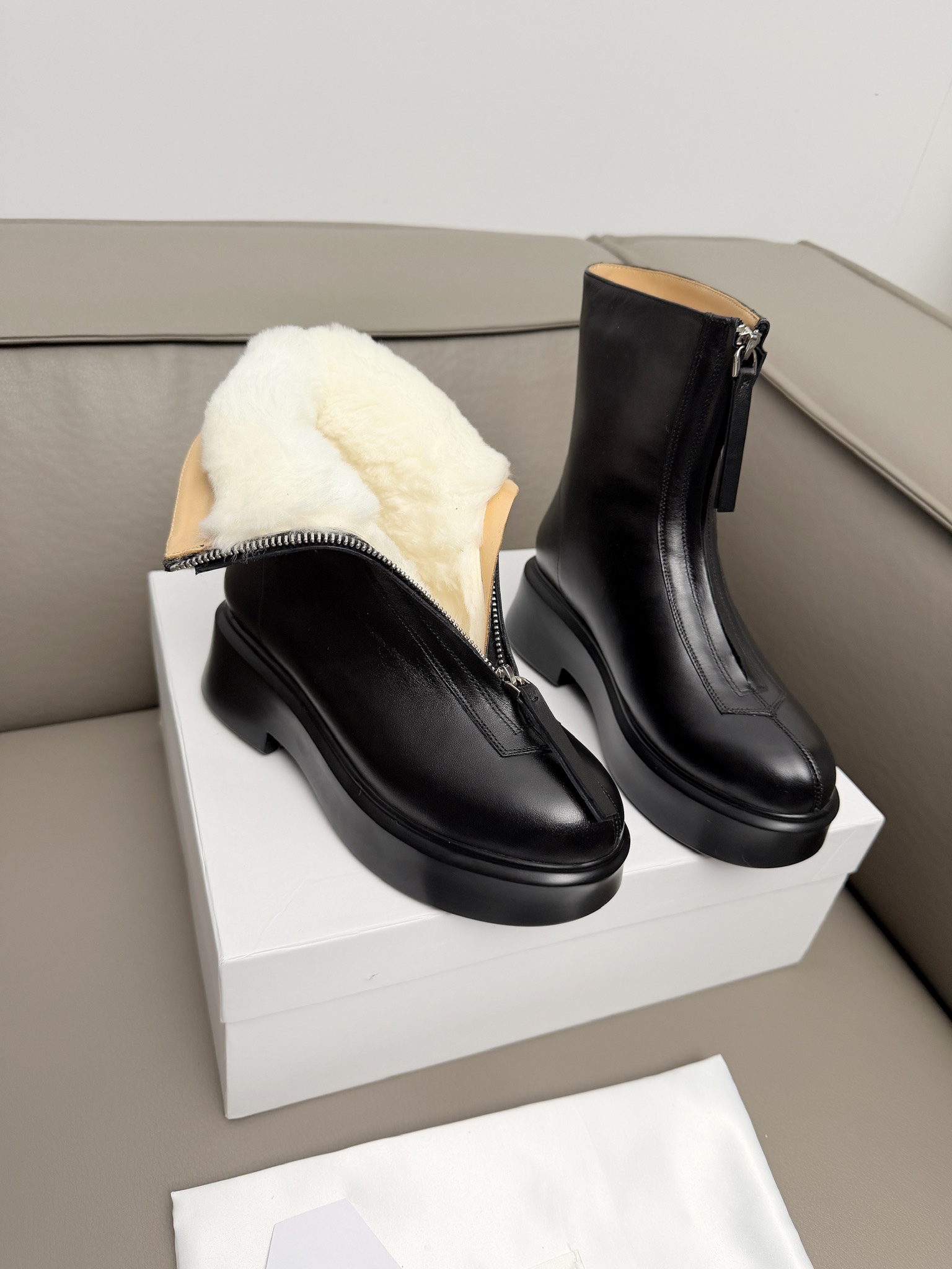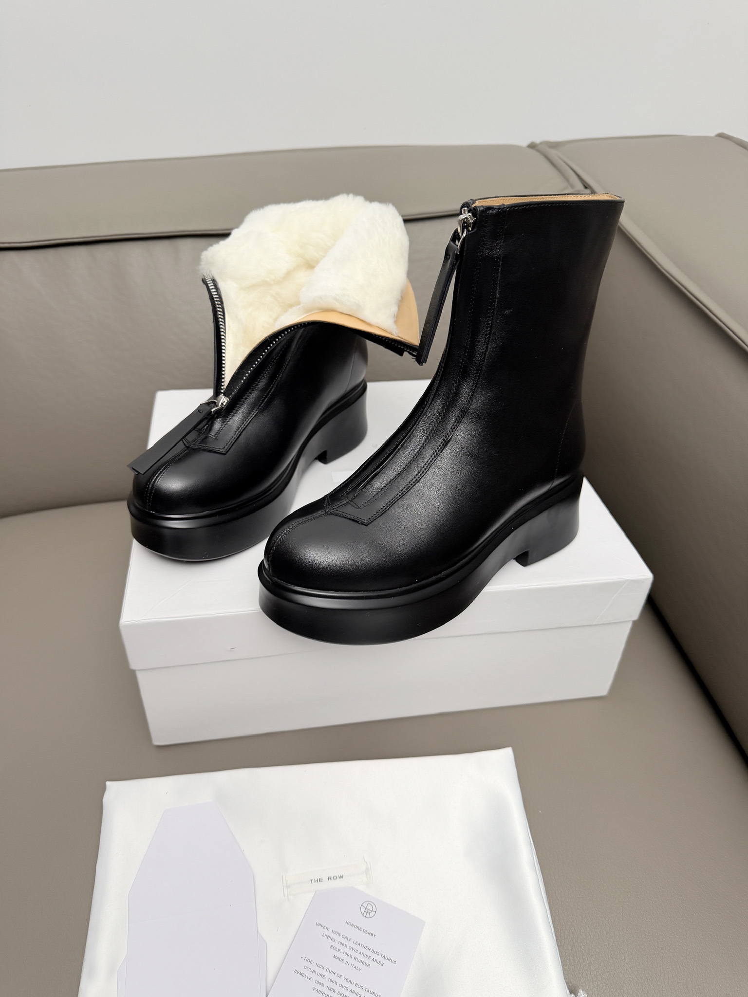 這款鞋子是AAAAA 1:1 質量(非常棒). 使用了和原版一模一樣的材料. 商標部分也保持了和The Row一樣. 圖片拍攝是實物鞋子拍攝, 您所收到的實物保證和我們圖片一模一樣.