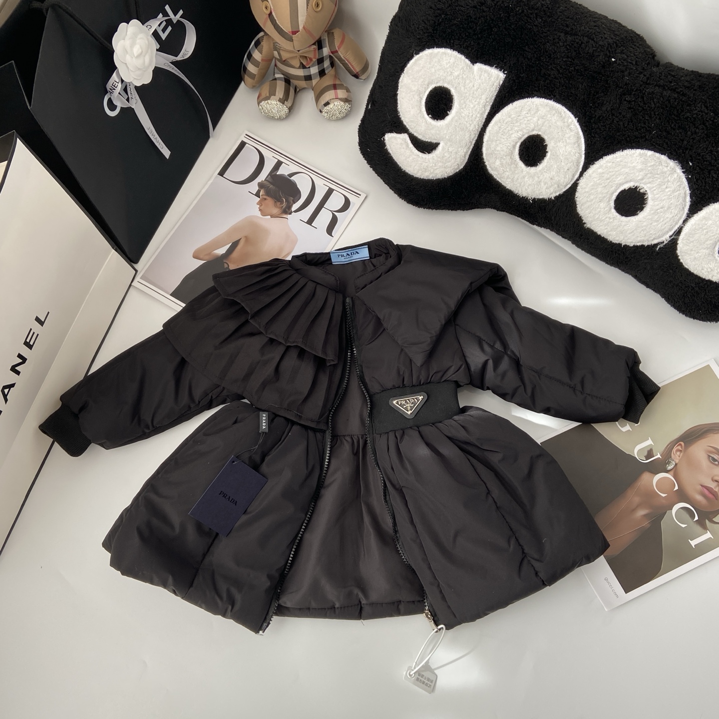 這款children's clothes是AAAAA 1:1 質量(非常棒). 使用了和原版一模一樣的材料. 商標部分也保持了和一樣. 圖片拍攝是實物children's clothes拍攝, 您所收到的實物保證和我們圖片一模一樣.