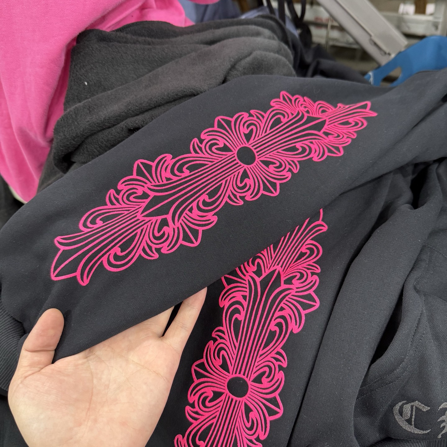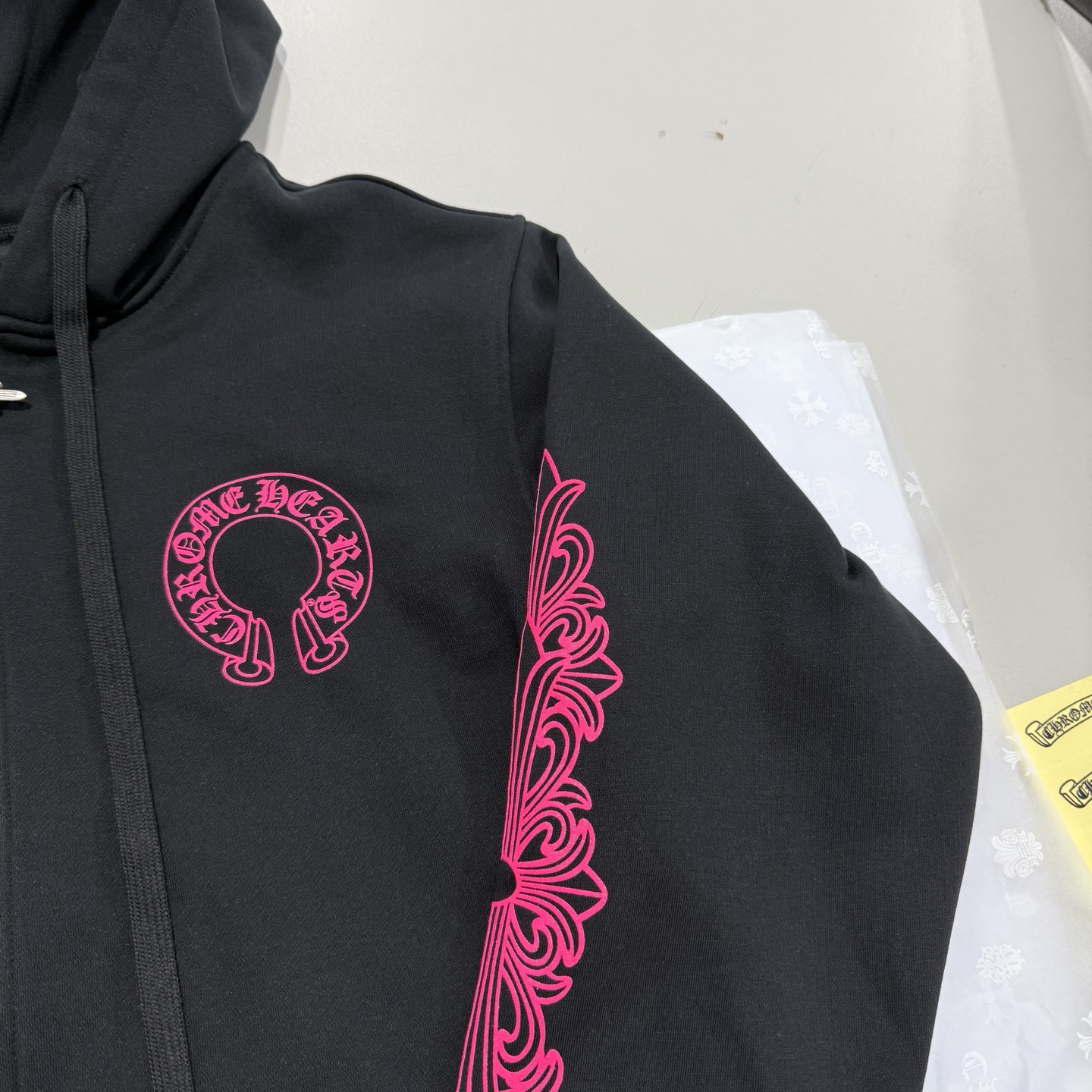 這款衣服是AAAAA 1:1 質量(非常棒). 使用了和原版一模一樣的材料. 商標部分也保持了和鉻心/Chrome Hearts一樣. 圖片拍攝是實物衣服拍攝, 您所收到的實物保證和我們圖片一模一樣.