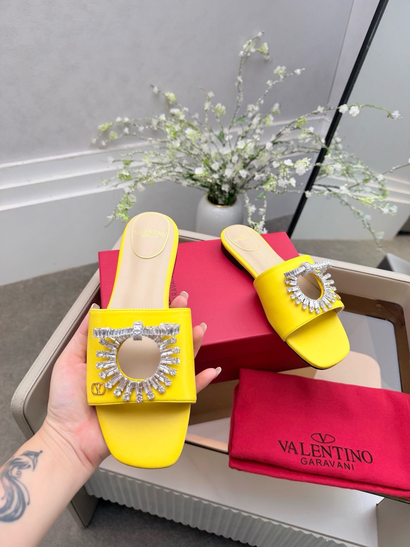 這款鞋子是AAAAA 1:1 質量(非常棒). 使用了和原版一模一樣的材料. 商標部分也保持了和瓦倫蒂諾/Valentino一樣. 圖片拍攝是實物鞋子拍攝, 您所收到的實物保證和我們圖片一模一樣.