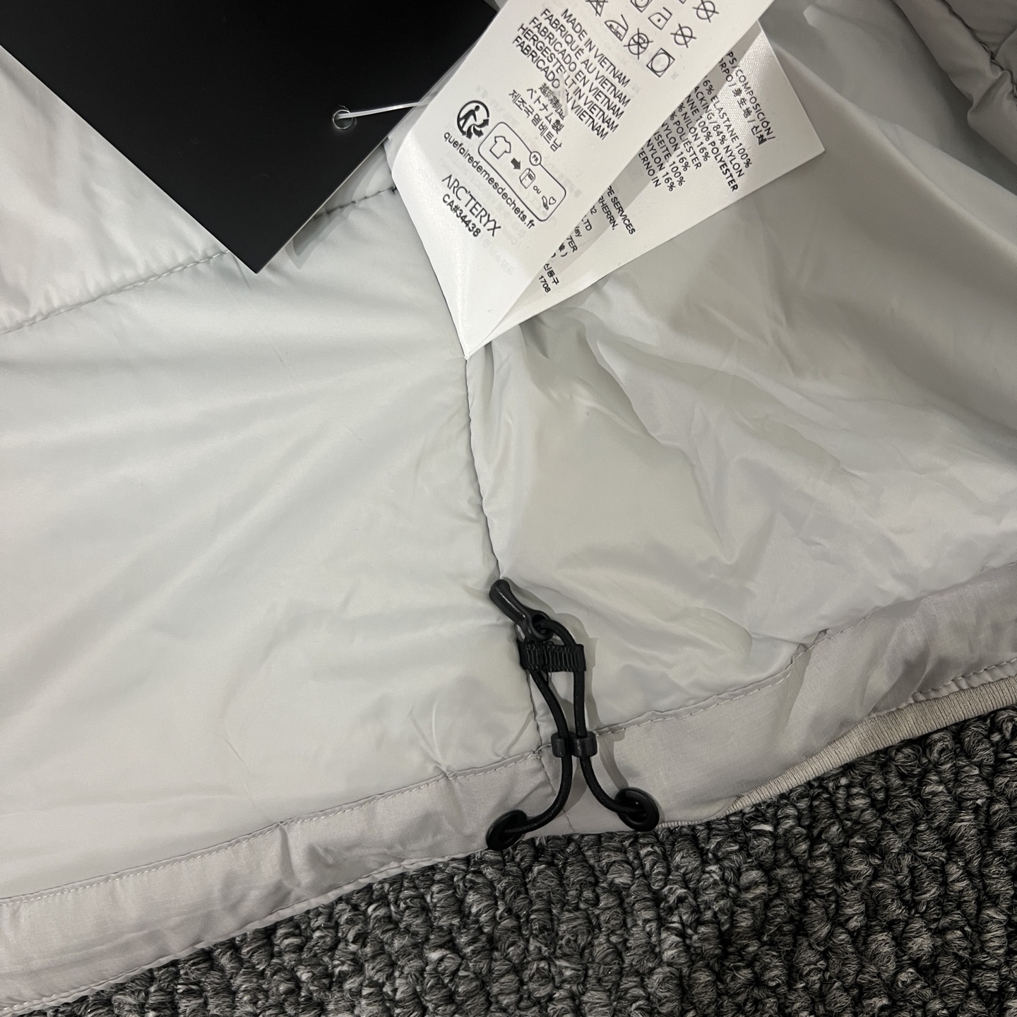 這款衣服是AAAAA 1:1 質量(非常棒). 使用了和原版一模一樣的材料. 商標部分也保持了和ARC'TERYX一樣. 圖片拍攝是實物衣服拍攝, 您所收到的實物保證和我們圖片一模一樣.
