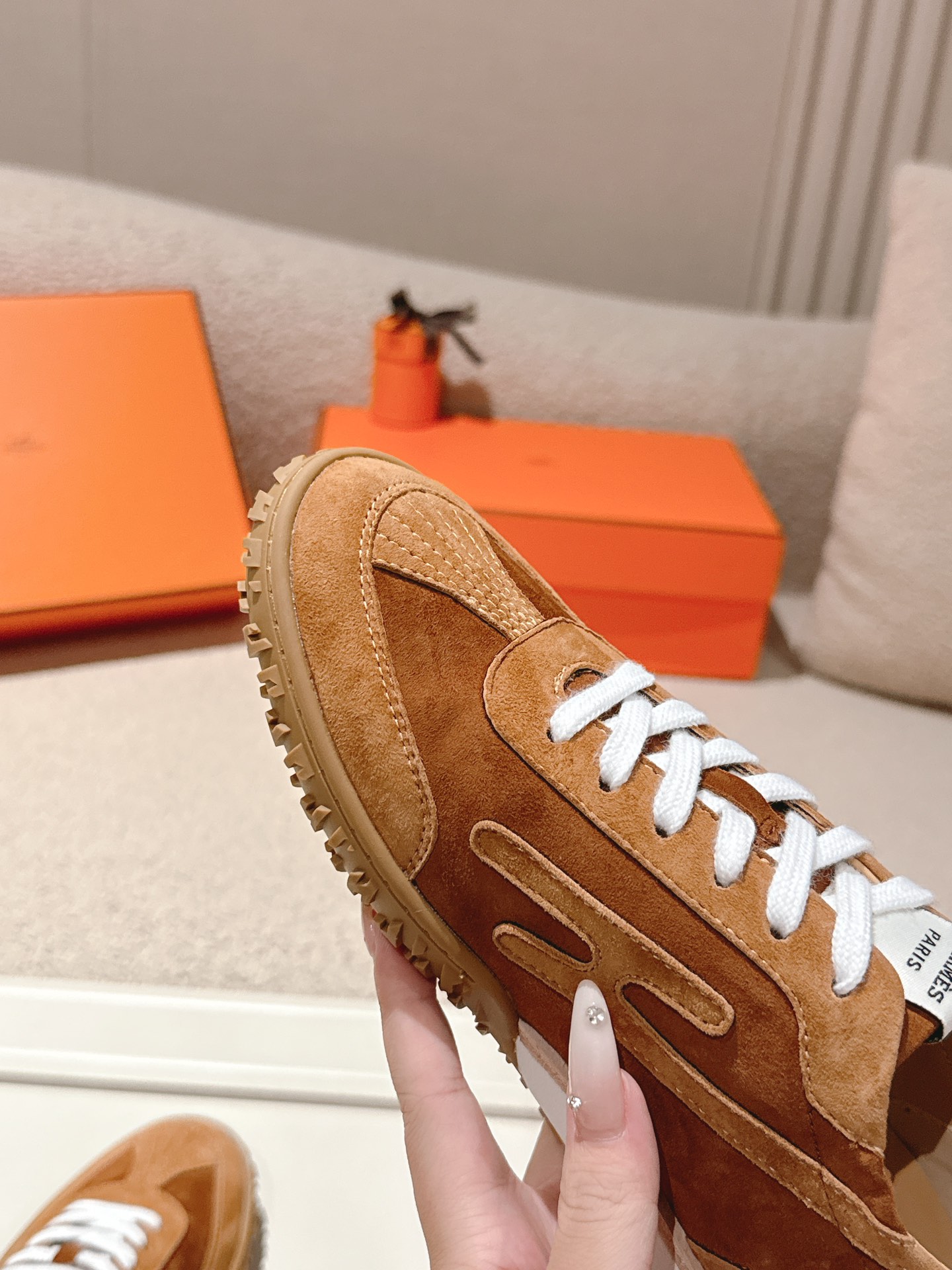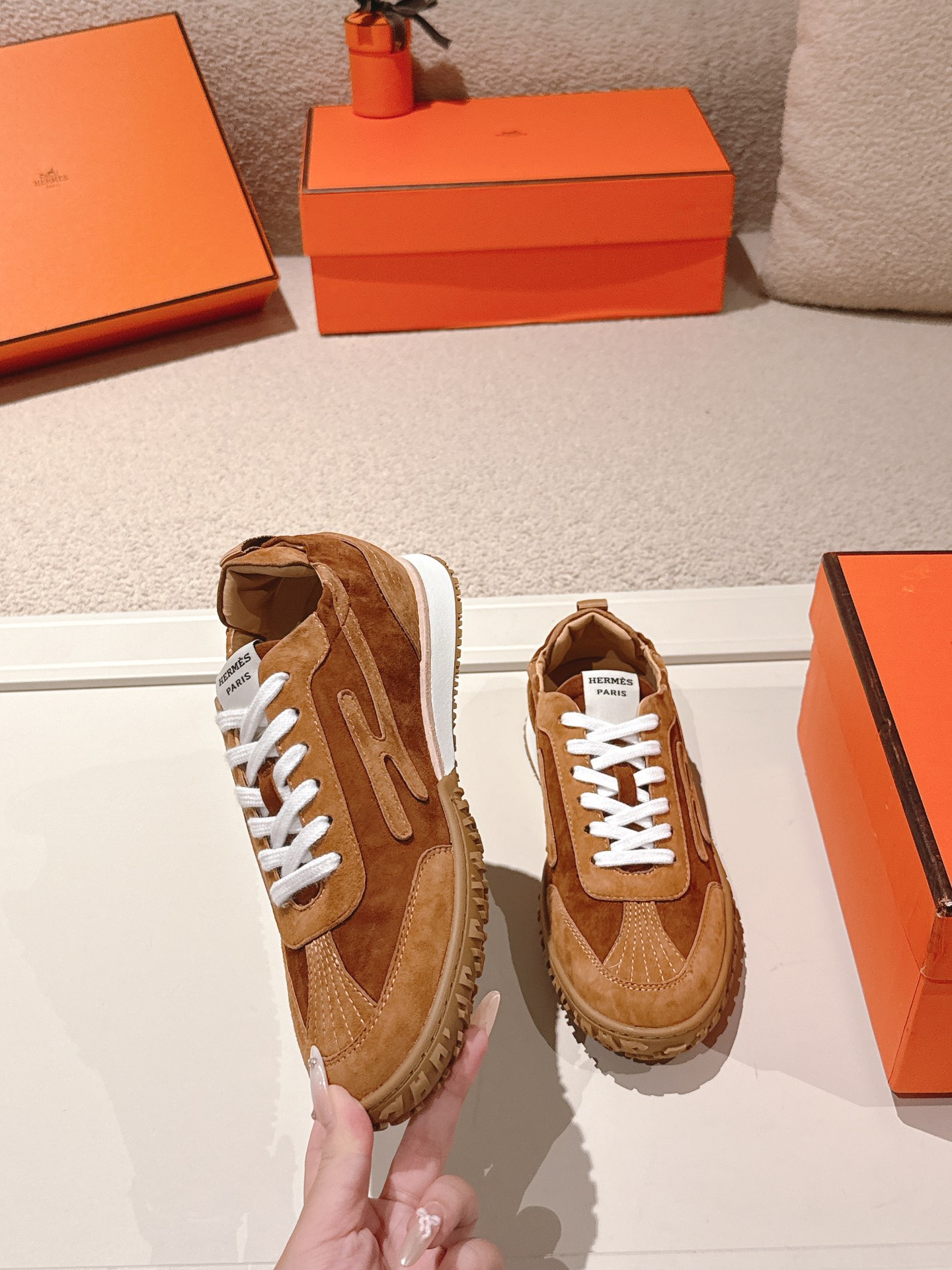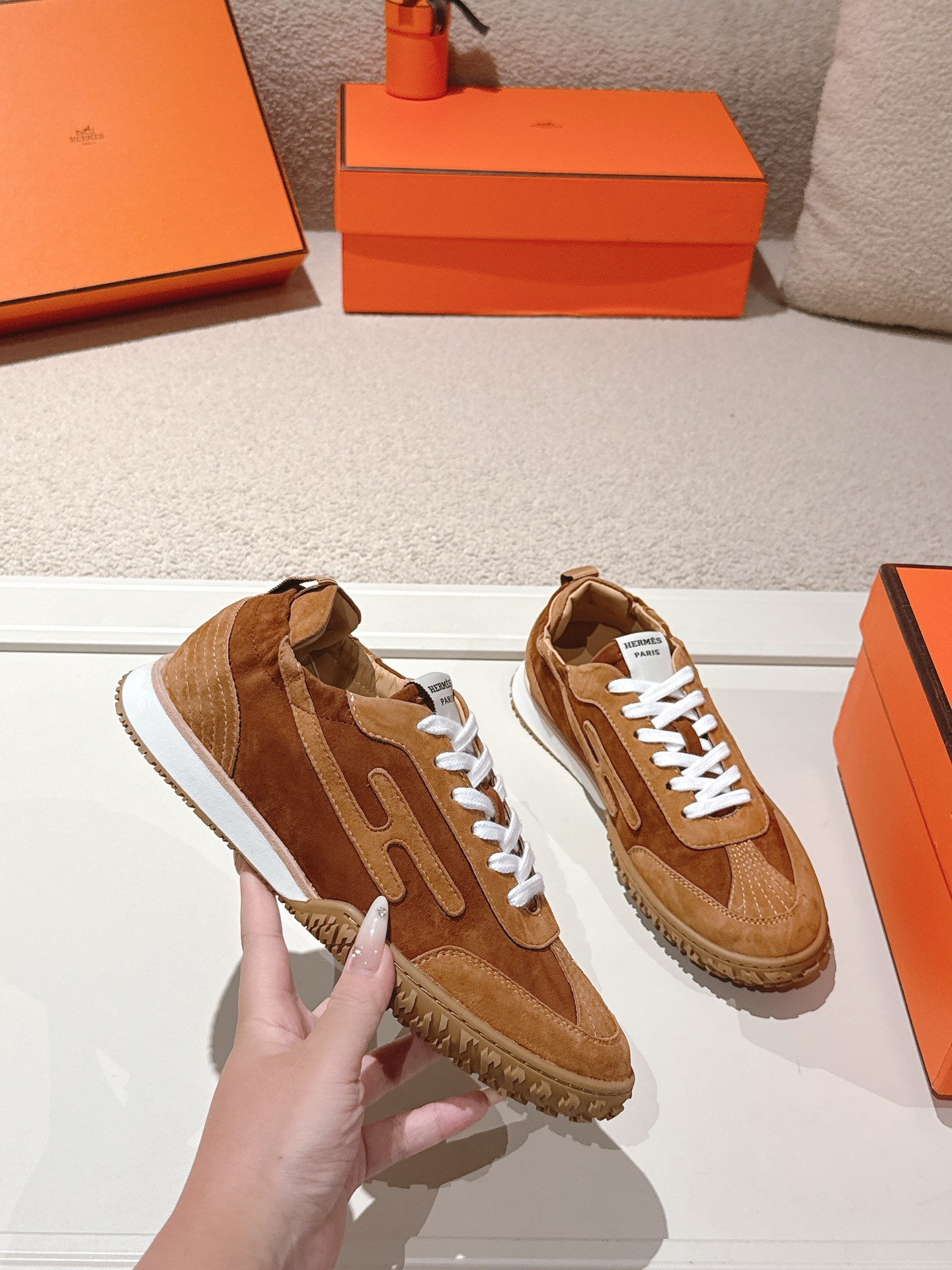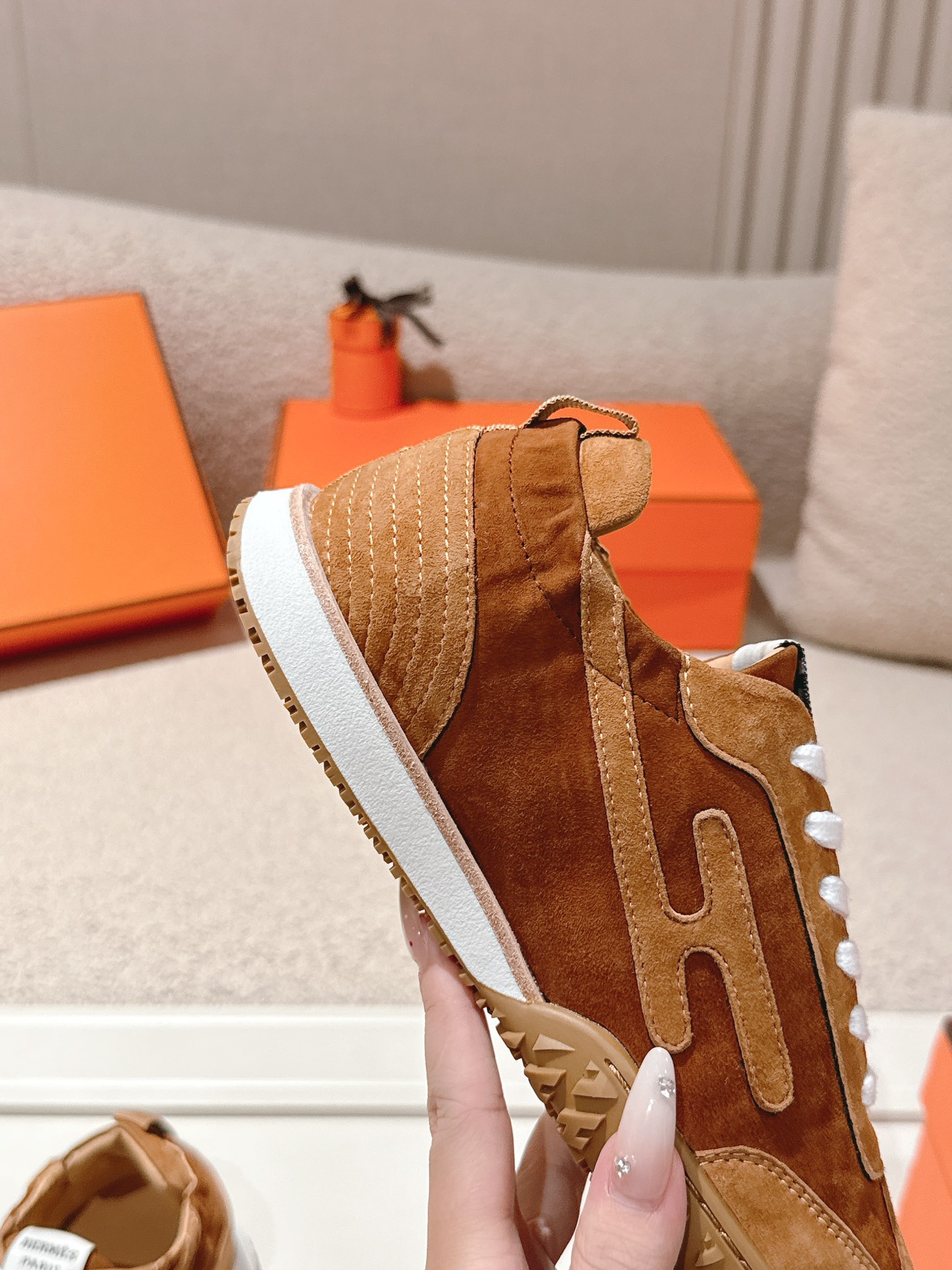 這款鞋子是AAAAA 1:1 質量(非常棒). 使用了和原版一模一樣的材料. 商標部分也保持了和愛馬仕/Hermes一樣. 圖片拍攝是實物鞋子拍攝, 您所收到的實物保證和我們圖片一模一樣.