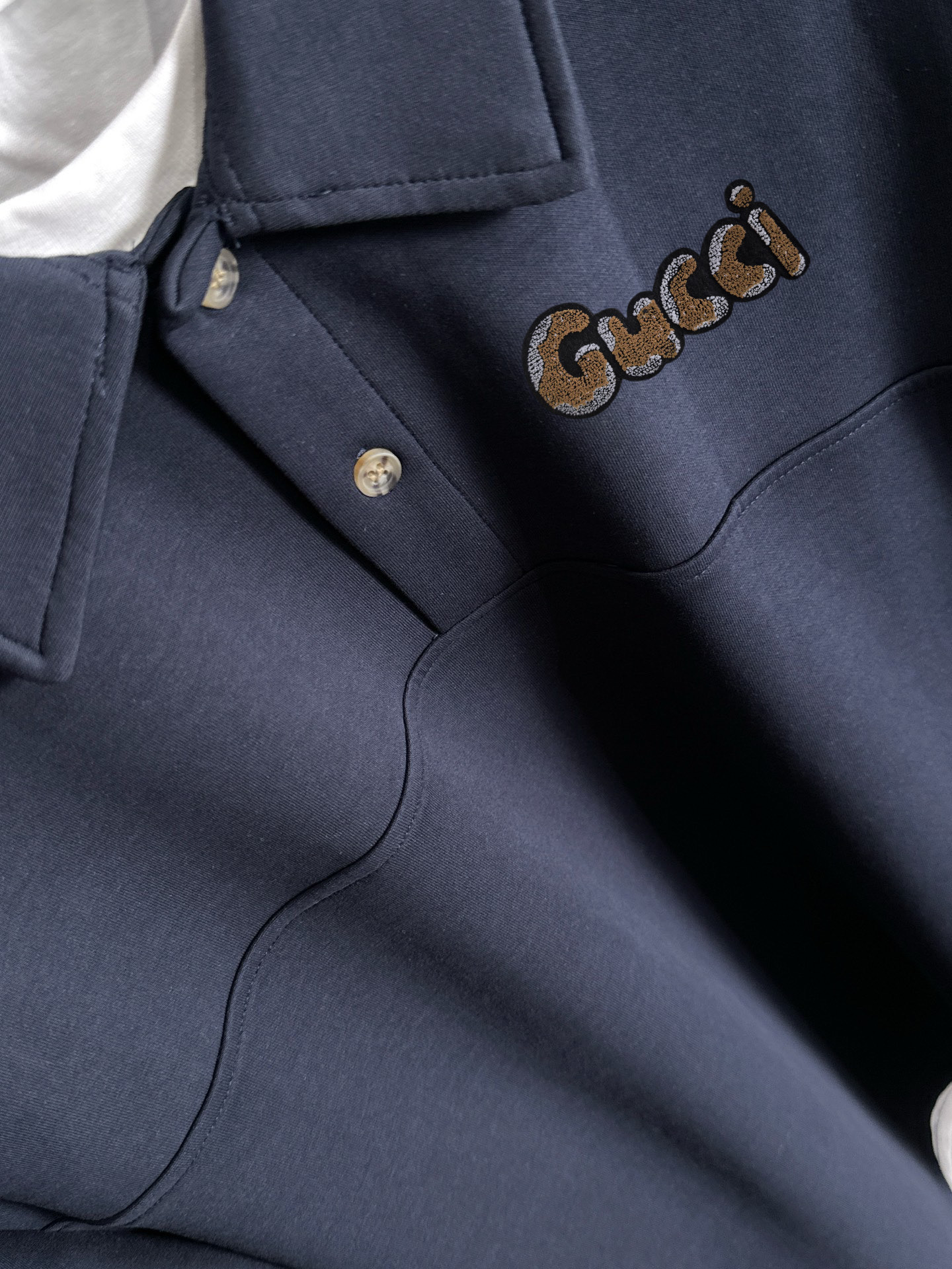 這款衣服是AAAAA 1:1 質量(非常棒). 使用了和原版一模一樣的材料. 商標部分也保持了和古奇/Gucci一樣. 圖片拍攝是實物衣服拍攝, 您所收到的實物保證和我們圖片一模一樣.