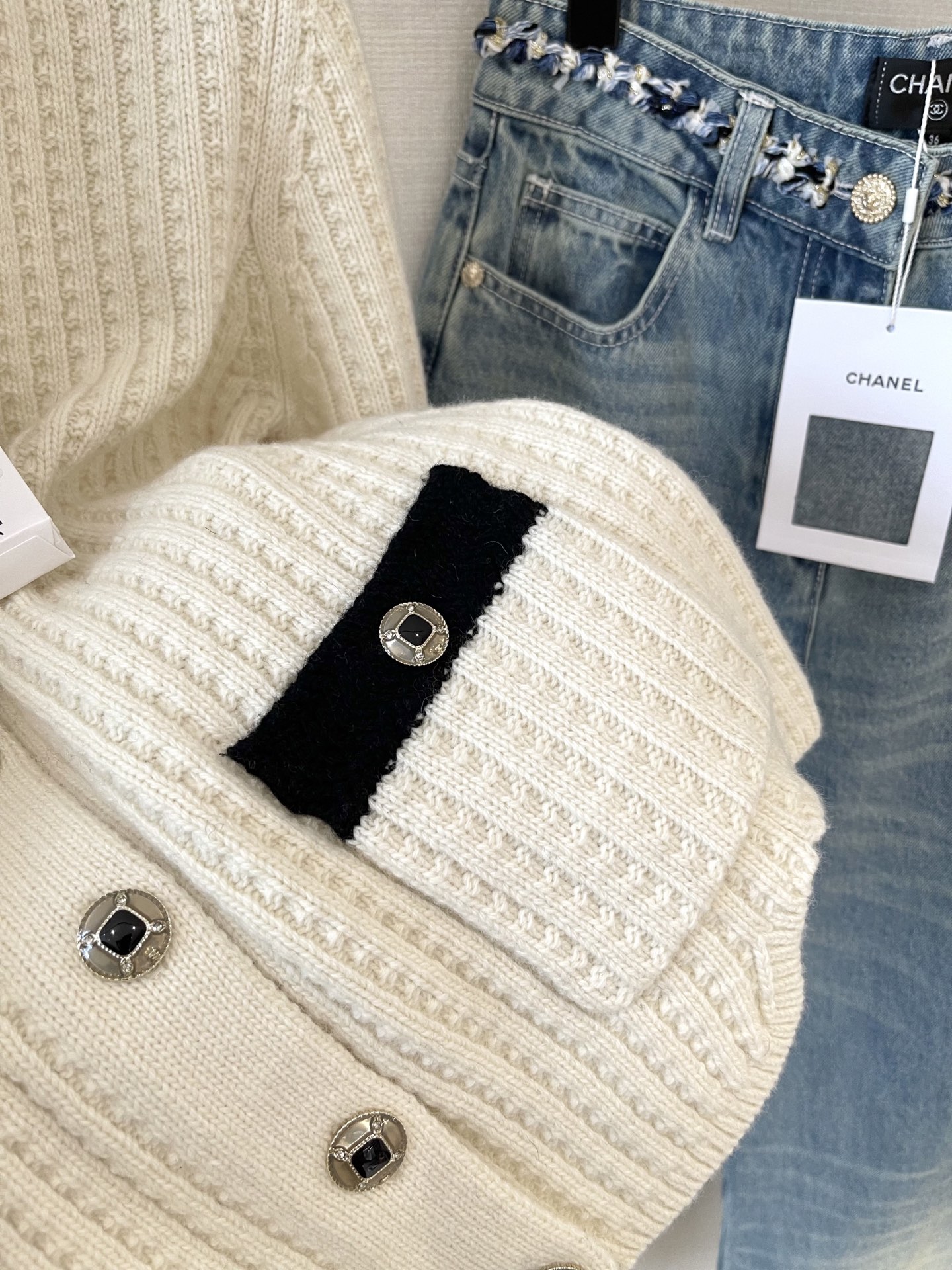 這款衣服是AAAAA 1:1 質量(非常棒). 使用了和原版一模一樣的材料. 商標部分也保持了和香奈兒/Chanel一樣. 圖片拍攝是實物衣服拍攝, 您所收到的實物保證和我們圖片一模一樣.