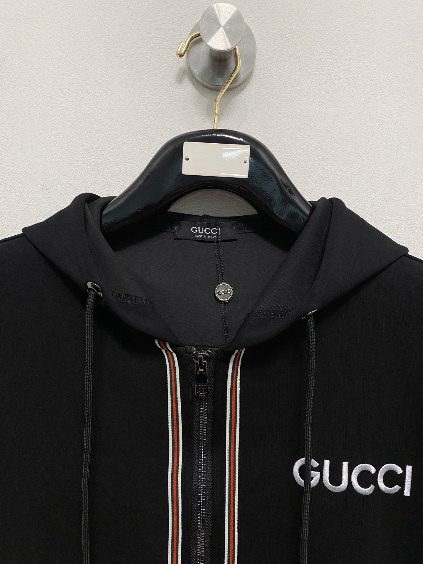 這款衣服是AAAAA 1:1 質量(非常棒). 使用了和原版一模一樣的材料. 商標部分也保持了和古奇/Gucci一樣. 圖片拍攝是實物衣服拍攝, 您所收到的實物保證和我們圖片一模一樣.