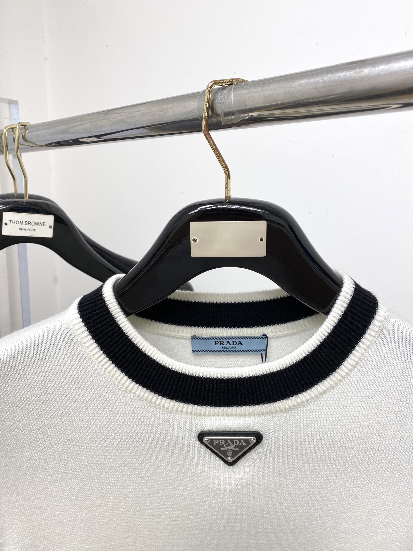 這款衣服是AAAAA 1:1 質量(非常棒). 使用了和原版一模一樣的材料. 商標部分也保持了和普拉達/Prada一樣. 圖片拍攝是實物衣服拍攝, 您所收到的實物保證和我們圖片一模一樣.