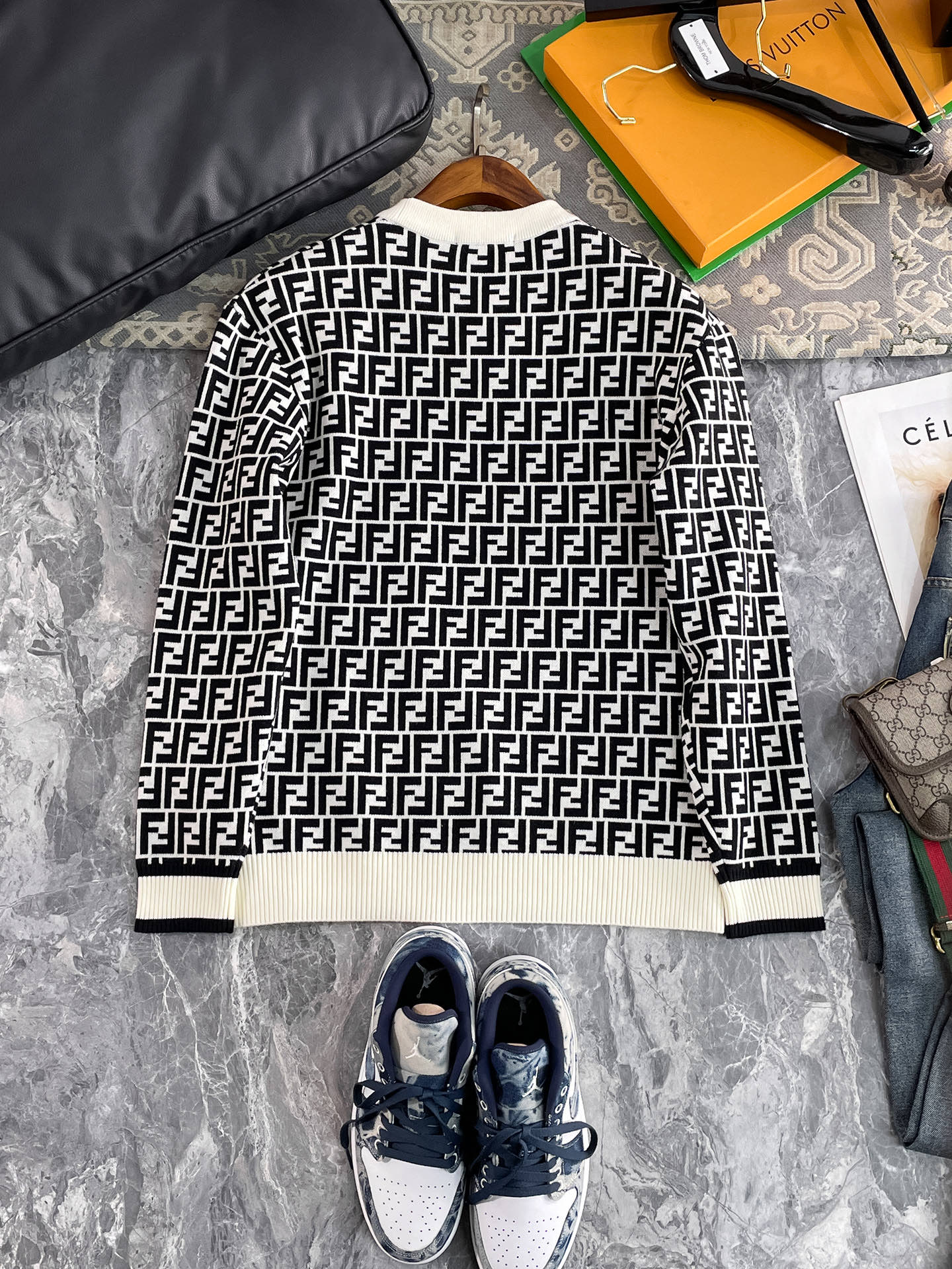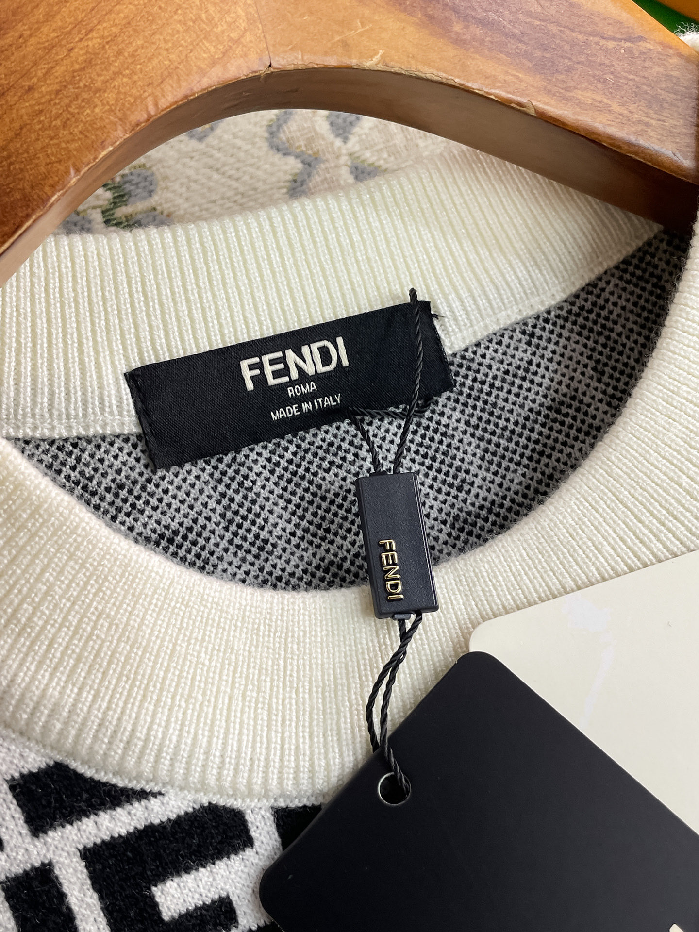這款衣服是AAAAA 1:1 質量(非常棒). 使用了和原版一模一樣的材料. 商標部分也保持了和芬迪/Fendi一樣. 圖片拍攝是實物衣服拍攝, 您所收到的實物保證和我們圖片一模一樣.