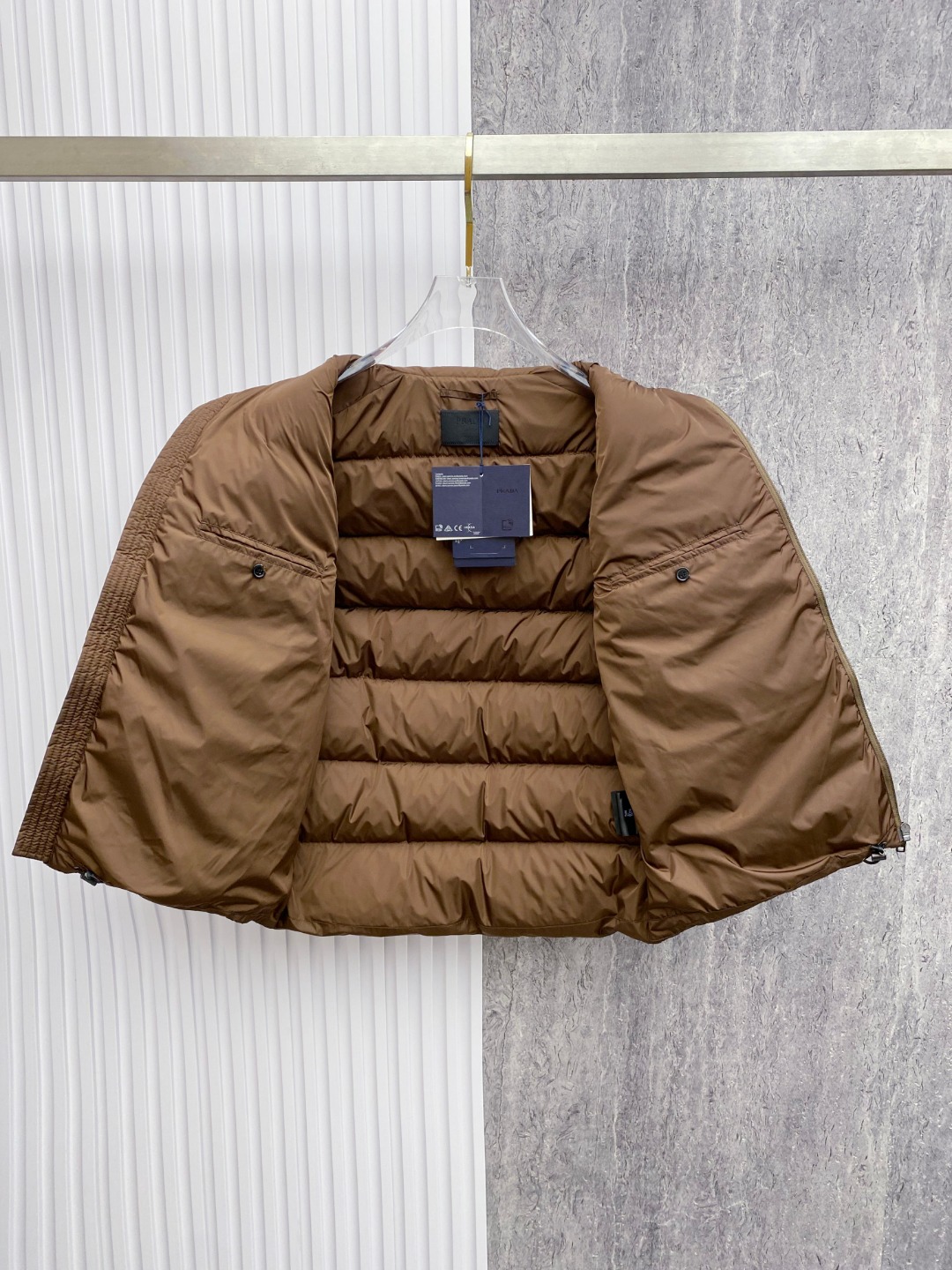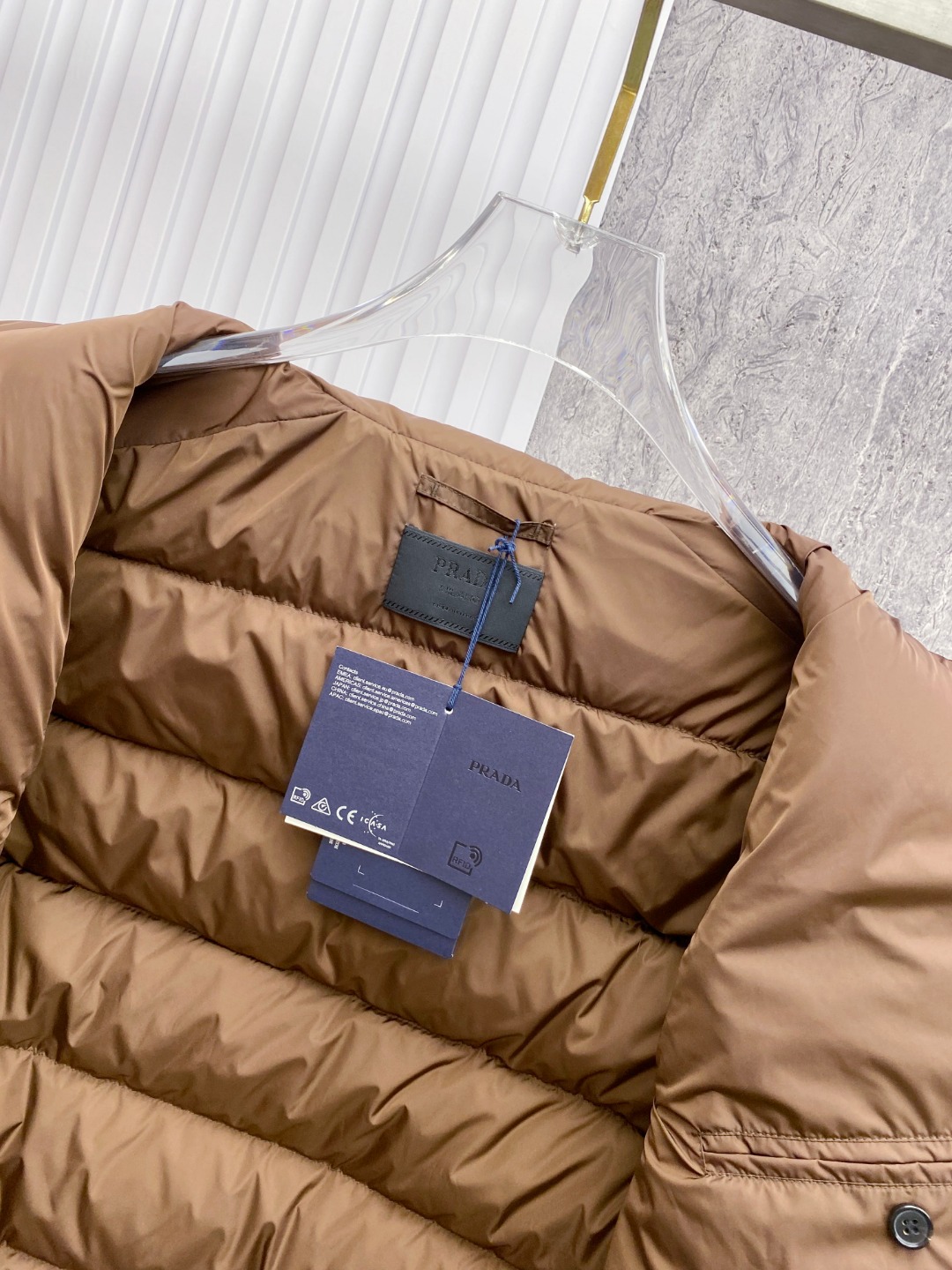 這款衣服是AAAAA 1:1 質量(非常棒). 使用了和原版一模一樣的材料. 商標部分也保持了和普拉達/Prada一樣. 圖片拍攝是實物衣服拍攝, 您所收到的實物保證和我們圖片一模一樣.
