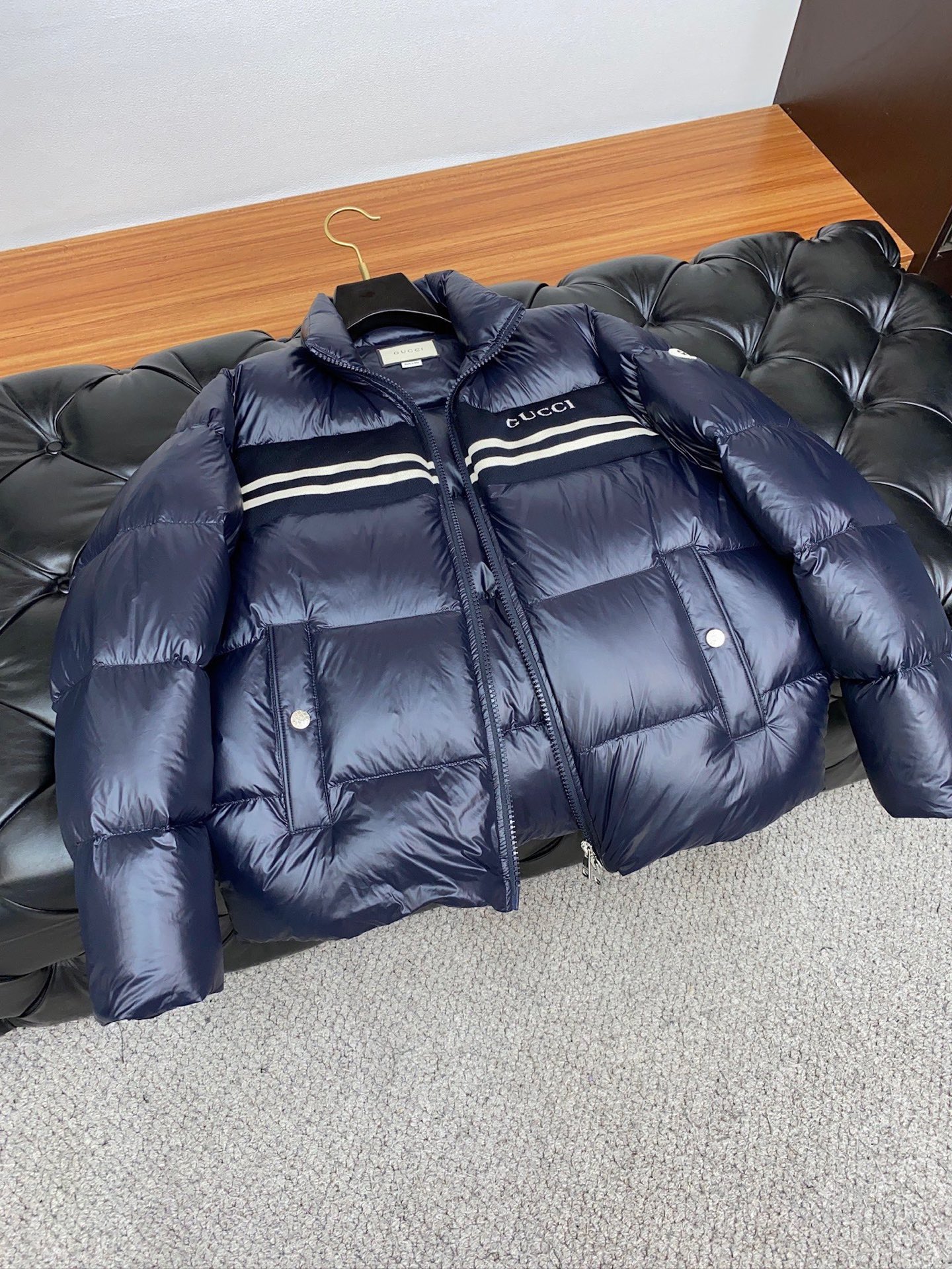 這款衣服是AAAAA 1:1 質量(非常棒). 使用了和原版一模一樣的材料. 商標部分也保持了和古奇/Gucci一樣. 圖片拍攝是實物衣服拍攝, 您所收到的實物保證和我們圖片一模一樣.