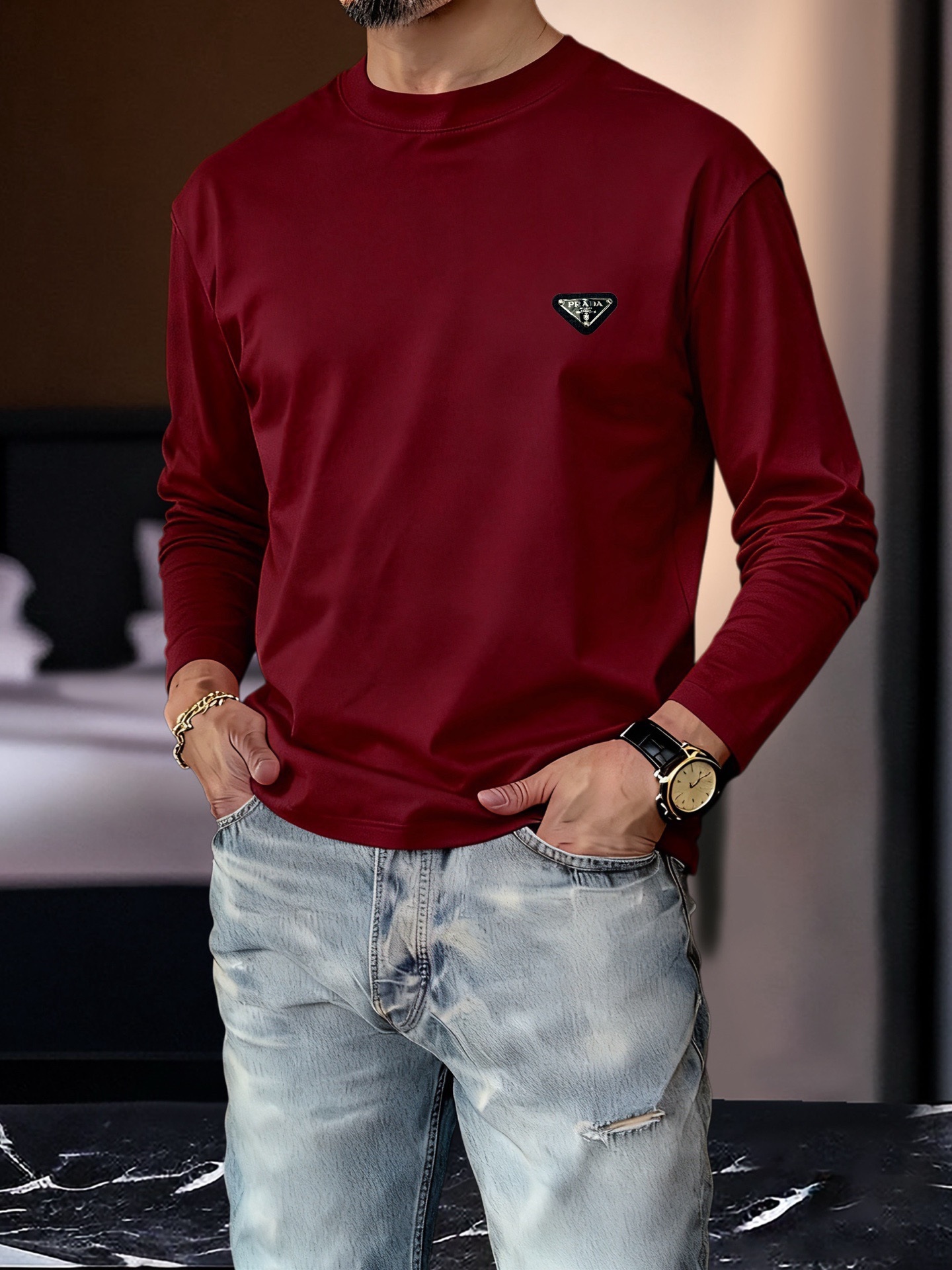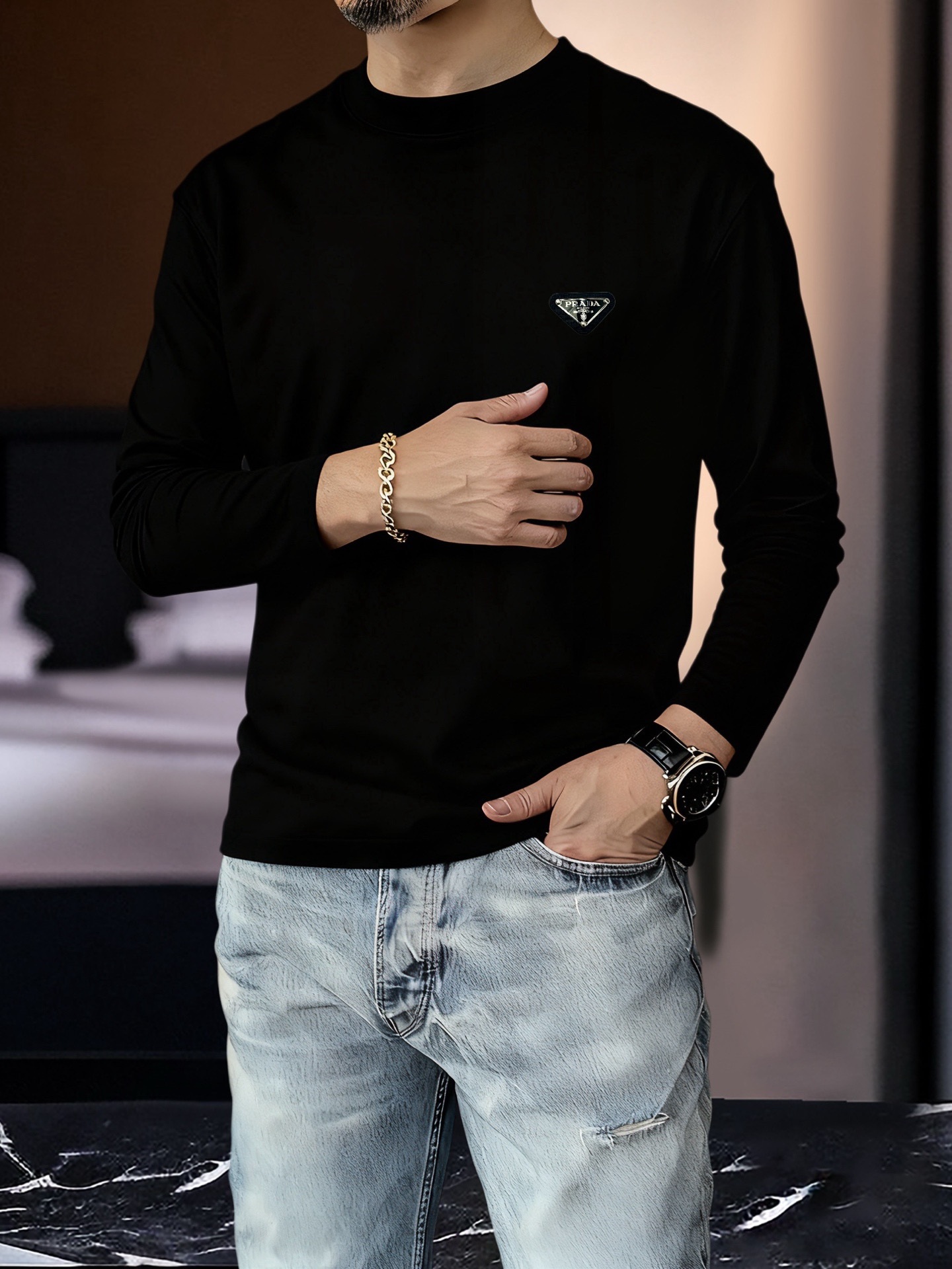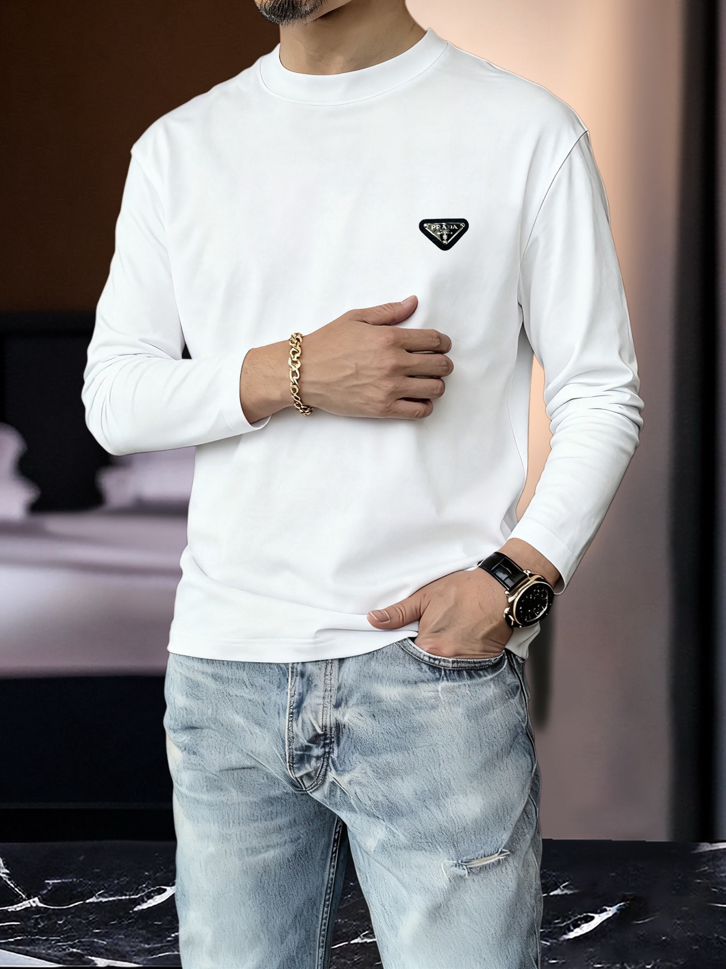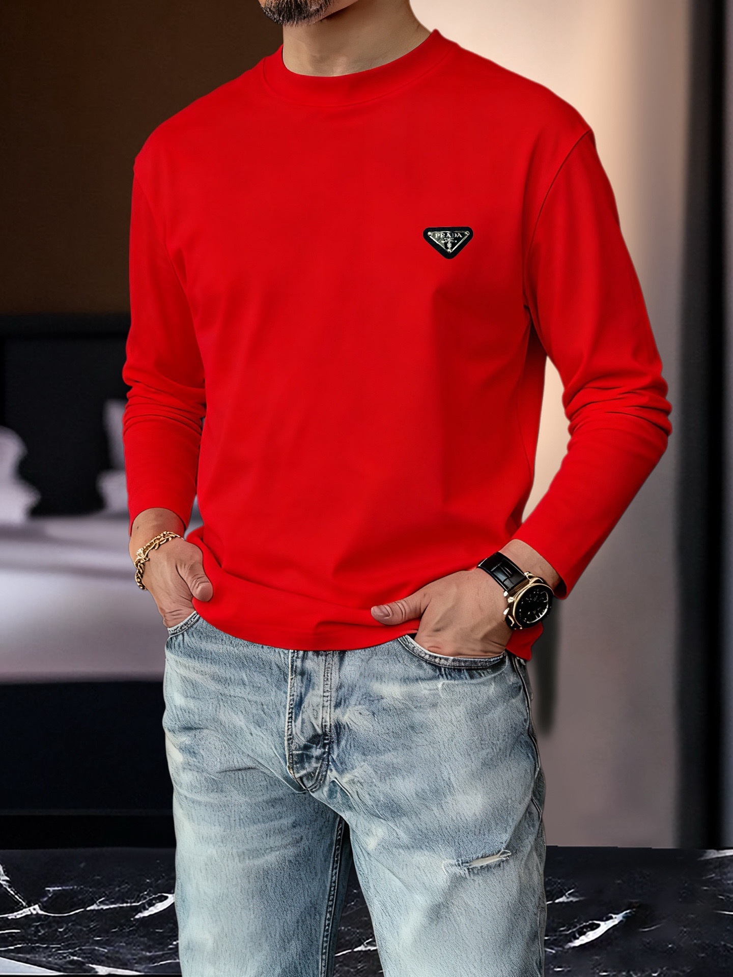 這款衣服是AAAAA 1:1 質量(非常棒). 使用了和原版一模一樣的材料. 商標部分也保持了和普拉達/Prada一樣. 圖片拍攝是實物衣服拍攝, 您所收到的實物保證和我們圖片一模一樣.