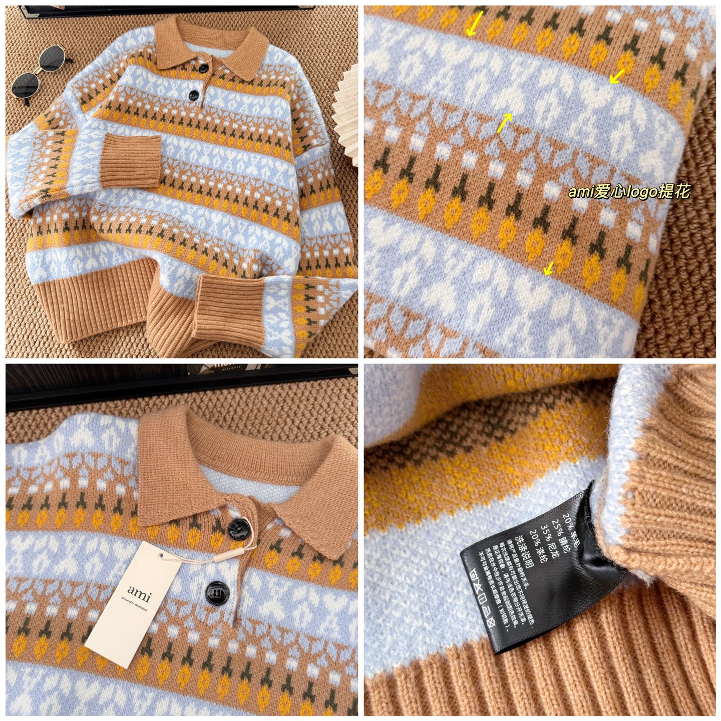 這款衣服是AAAAA 1:1 質量(非常棒). 使用了和原版一模一樣的材料. 商標部分也保持了和Ami一樣. 圖片拍攝是實物衣服拍攝, 您所收到的實物保證和我們圖片一模一樣.