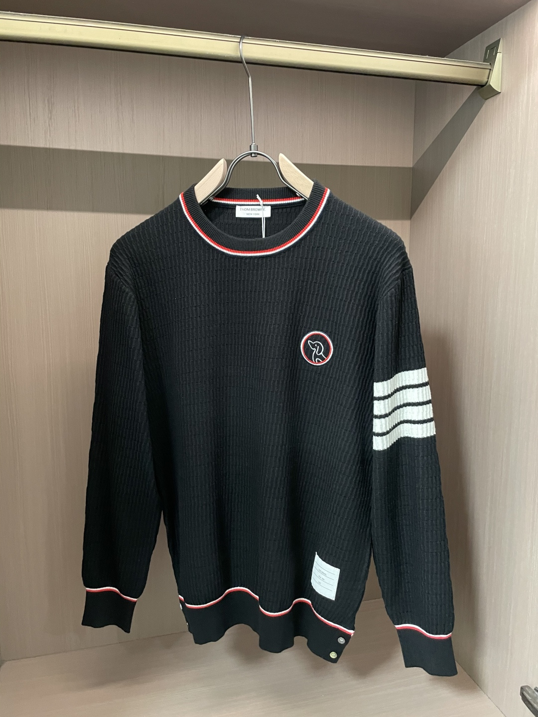 這款衣服是AAAAA 1:1 質量(非常棒). 使用了和原版一模一樣的材料. 商標部分也保持了和湯姆布朗/Thom Browne一樣. 圖片拍攝是實物衣服拍攝, 您所收到的實物保證和我們圖片一模一樣.