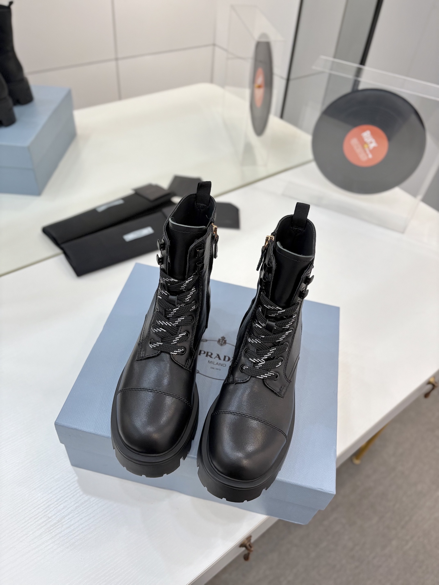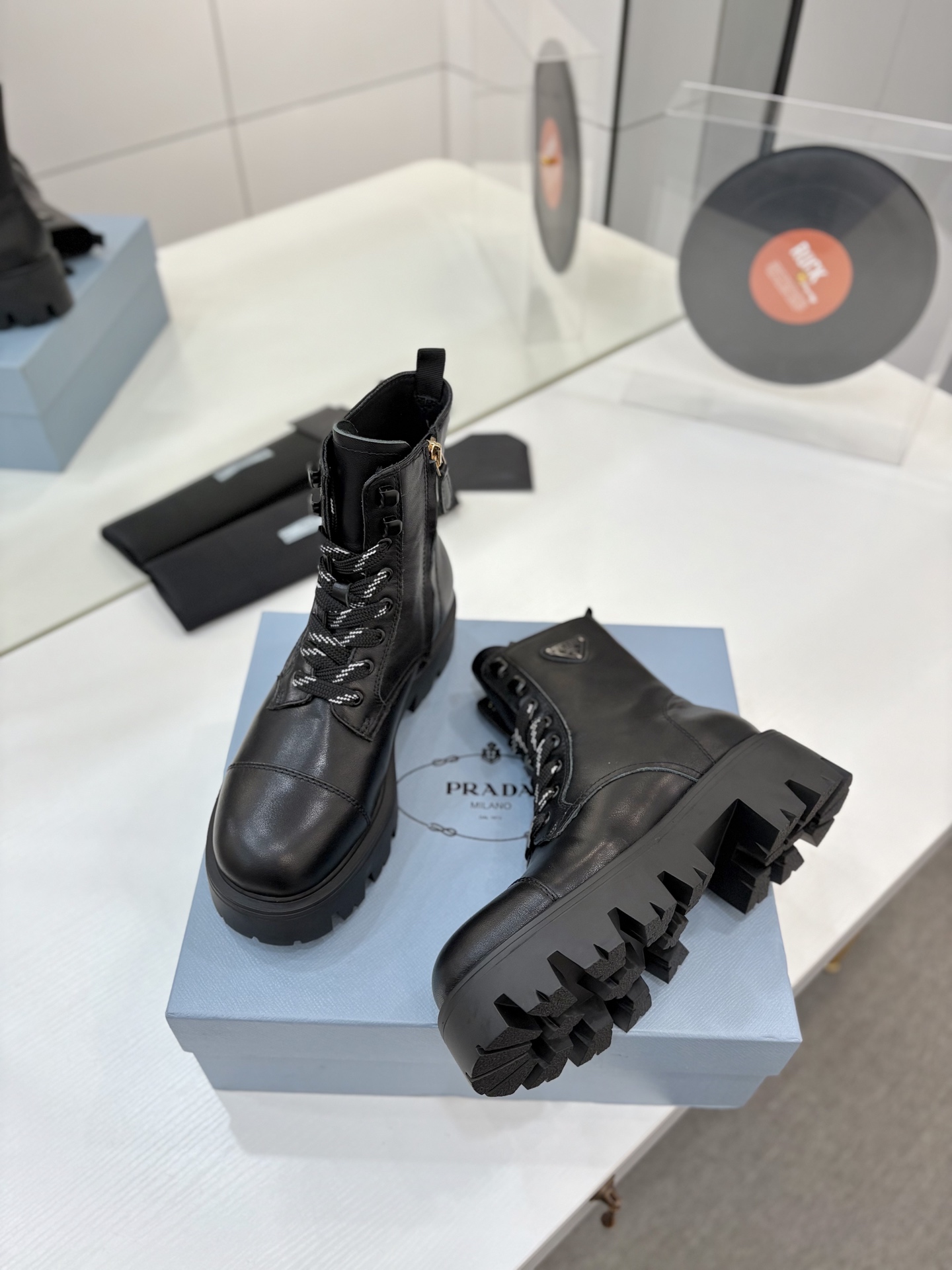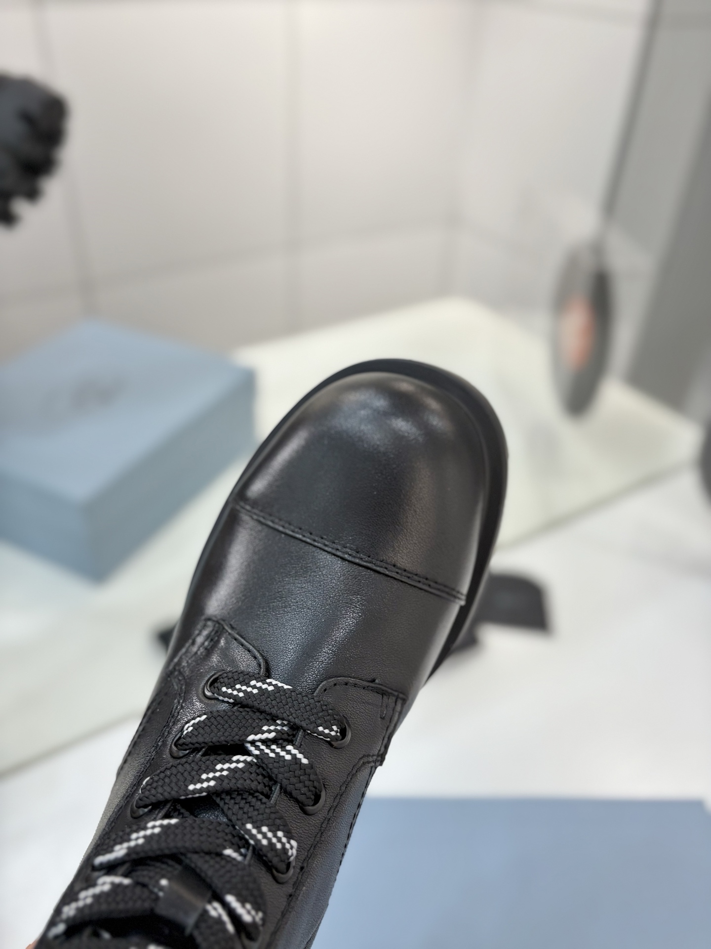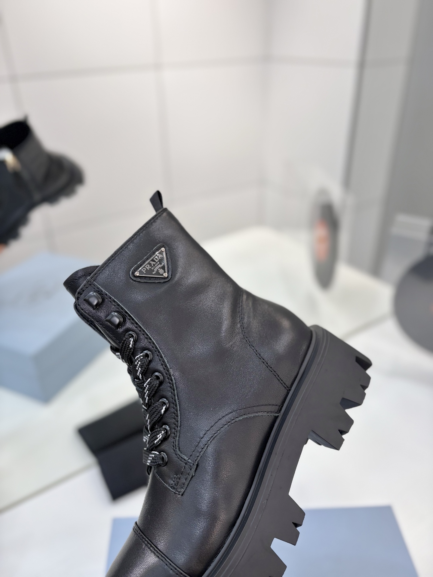 這款鞋子是AAAAA 1:1 質量(非常棒). 使用了和原版一模一樣的材料. 商標部分也保持了和普拉達/Prada一樣. 圖片拍攝是實物鞋子拍攝, 您所收到的實物保證和我們圖片一模一樣.