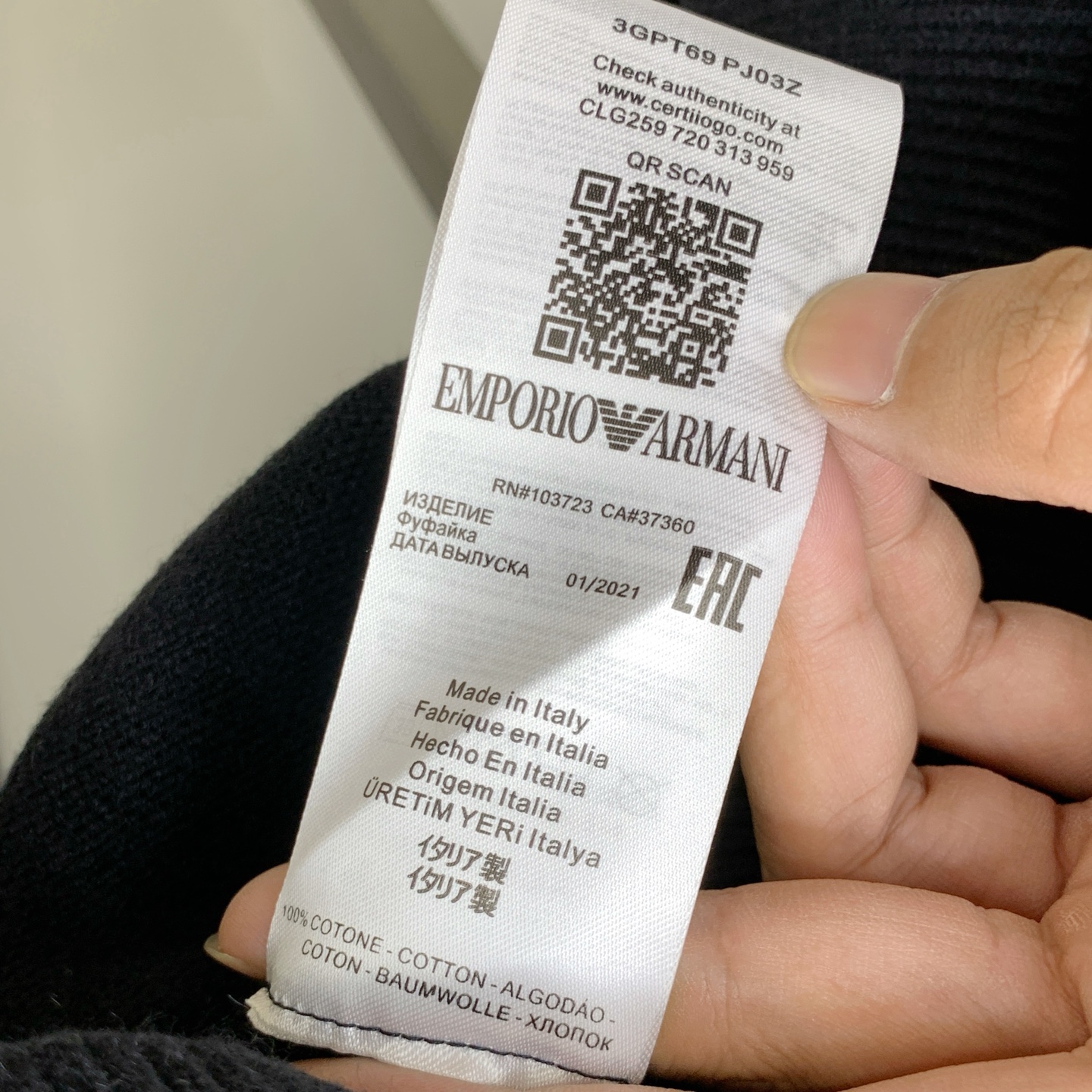 這款衣服是AAAAA 1:1 質量(非常棒). 使用了和原版一模一樣的材料. 商標部分也保持了和阿瑪尼/Armani一樣. 圖片拍攝是實物衣服拍攝, 您所收到的實物保證和我們圖片一模一樣.