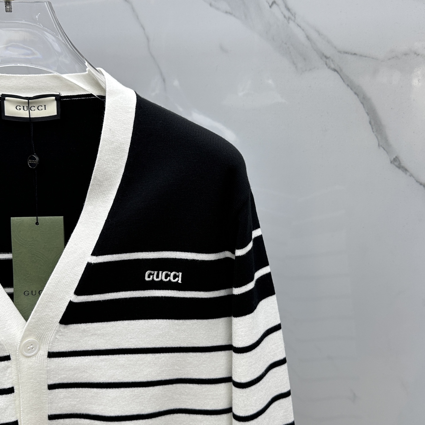 這款衣服是AAAAA 1:1 質量(非常棒). 使用了和原版一模一樣的材料. 商標部分也保持了和古奇/Gucci一樣. 圖片拍攝是實物衣服拍攝, 您所收到的實物保證和我們圖片一模一樣.