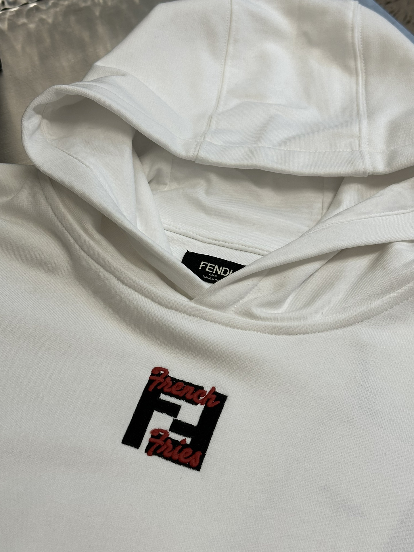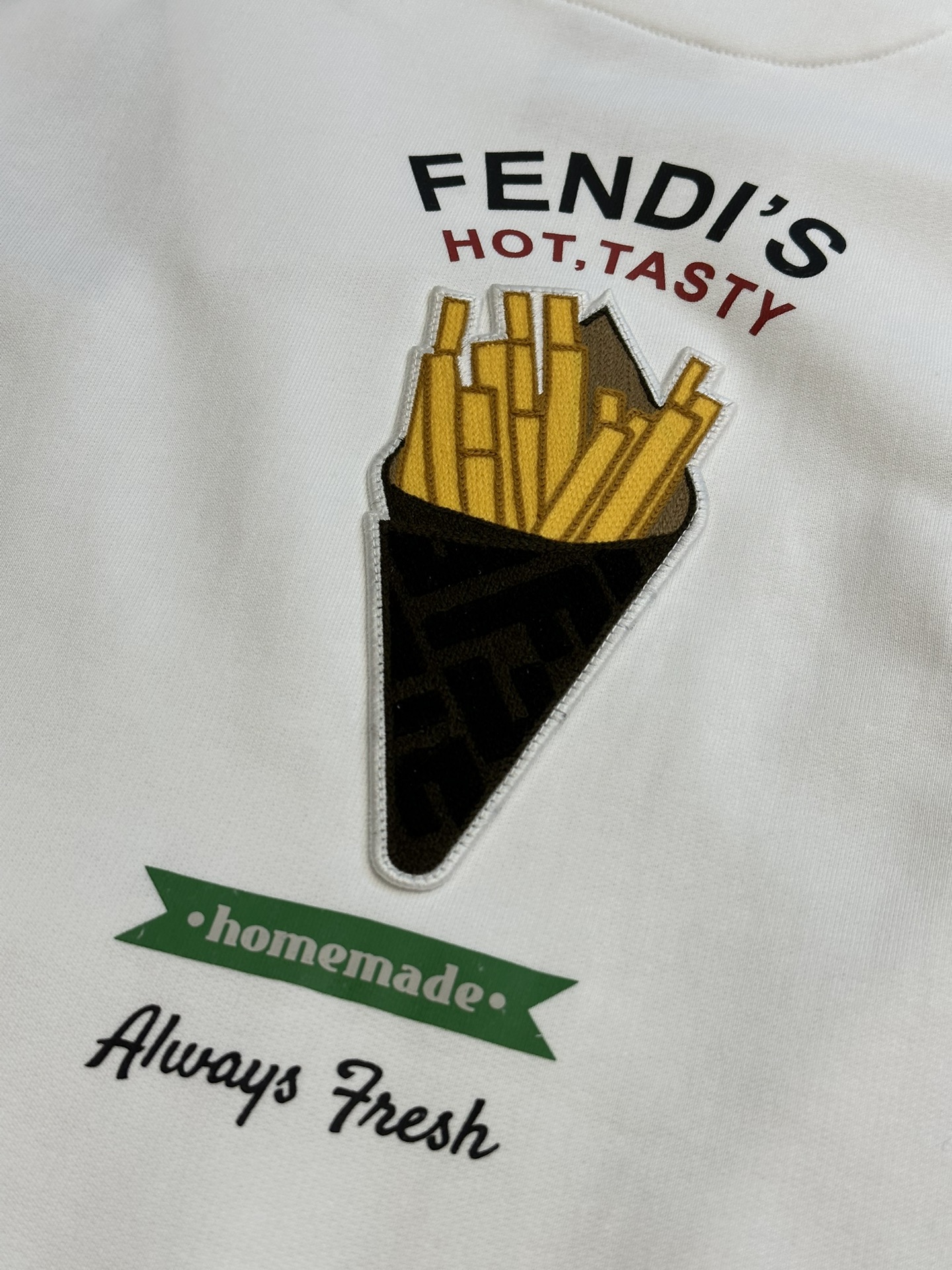 這款衣服是AAAAA 1:1 質量(非常棒). 使用了和原版一模一樣的材料. 商標部分也保持了和芬迪/Fendi一樣. 圖片拍攝是實物衣服拍攝, 您所收到的實物保證和我們圖片一模一樣.