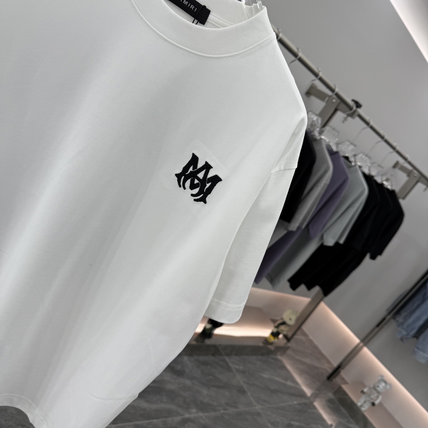 這款衣服是AAAAA 1:1 質量(非常棒). 使用了和原版一模一樣的材料. 商標部分也保持了和AMIRI一樣. 圖片拍攝是實物衣服拍攝, 您所收到的實物保證和我們圖片一模一樣.
