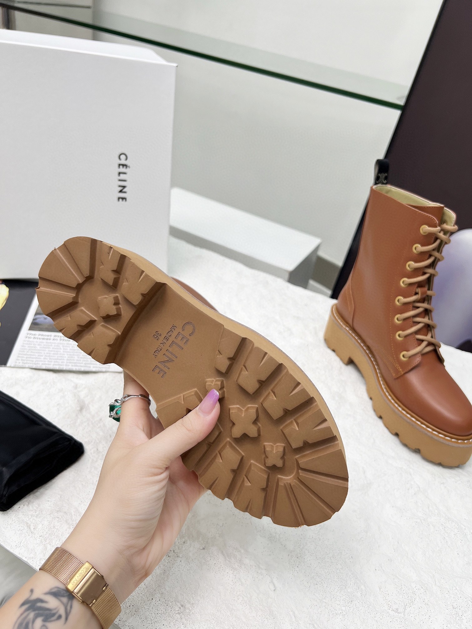 這款鞋子是AAAAA 1:1 質量(非常棒). 使用了和原版一模一樣的材料. 商標部分也保持了和思琳/赛琳/Celine一樣. 圖片拍攝是實物鞋子拍攝, 您所收到的實物保證和我們圖片一模一樣.