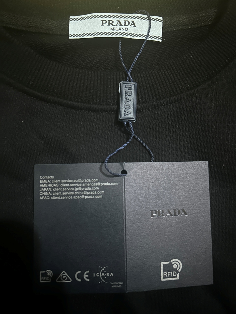 這款衣服是AAAAA 1:1 質量(非常棒). 使用了和原版一模一樣的材料. 商標部分也保持了和普拉達/Prada一樣. 圖片拍攝是實物衣服拍攝, 您所收到的實物保證和我們圖片一模一樣.