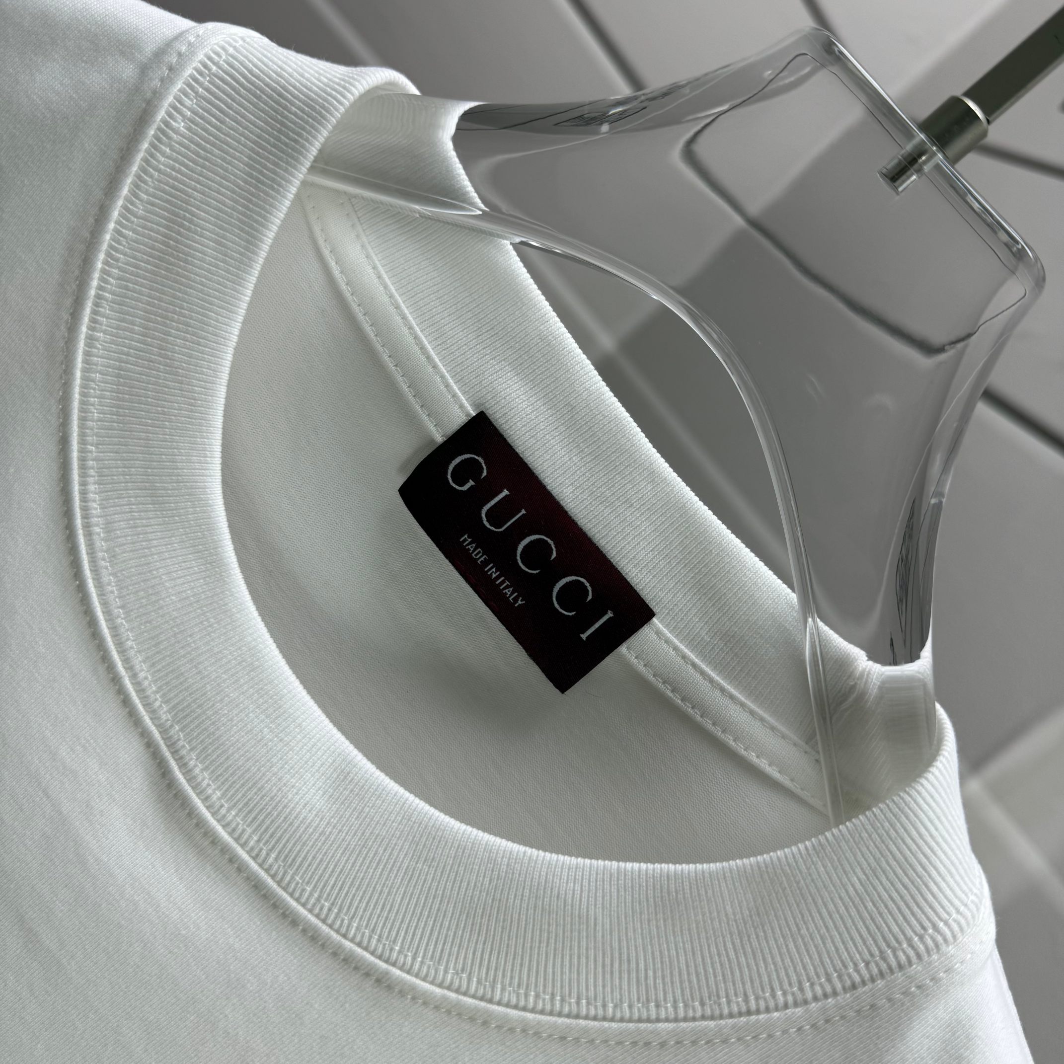 這款衣服是AAAAA 1:1 質量(非常棒). 使用了和原版一模一樣的材料. 商標部分也保持了和古奇/Gucci一樣. 圖片拍攝是實物衣服拍攝, 您所收到的實物保證和我們圖片一模一樣.