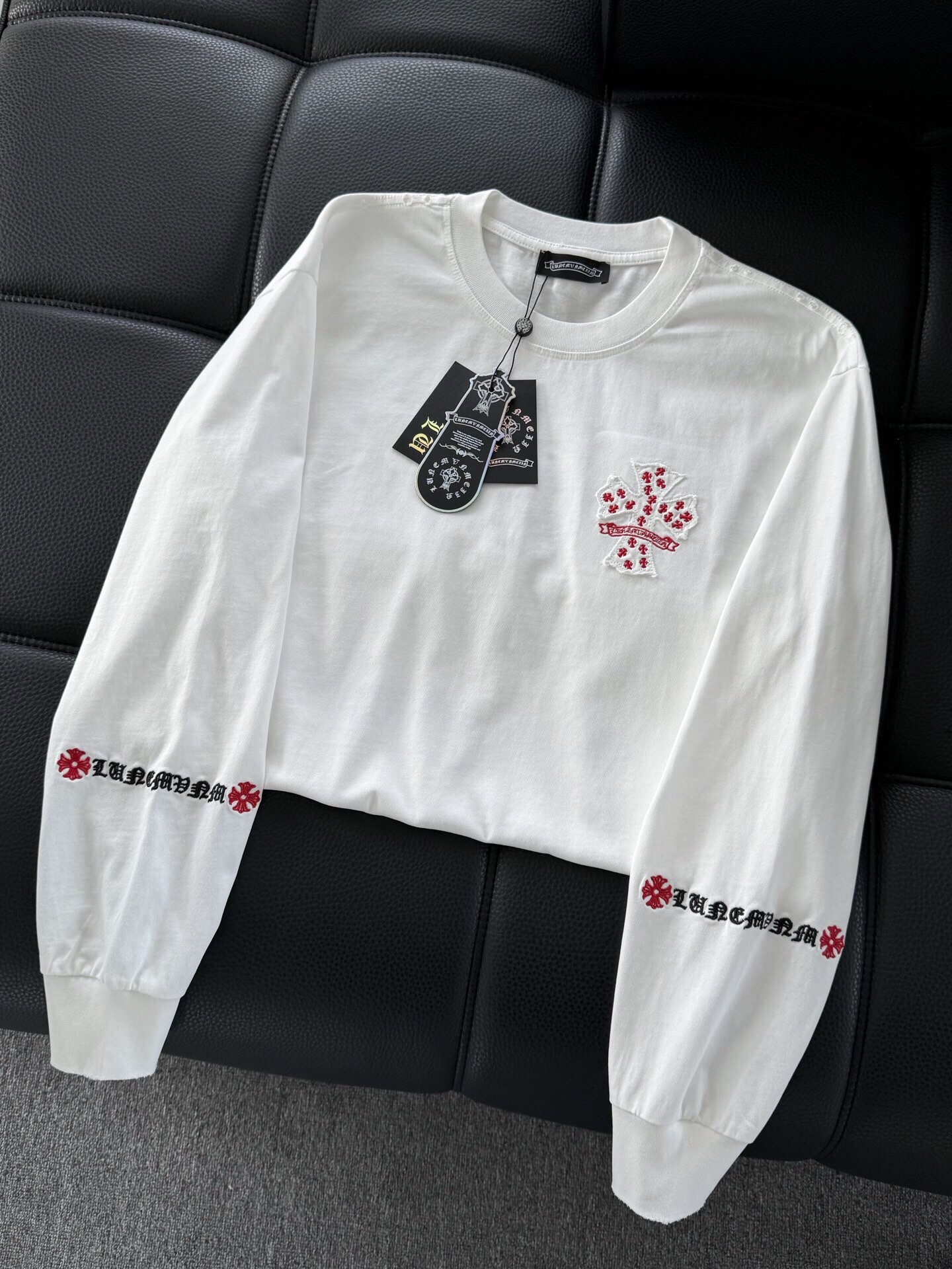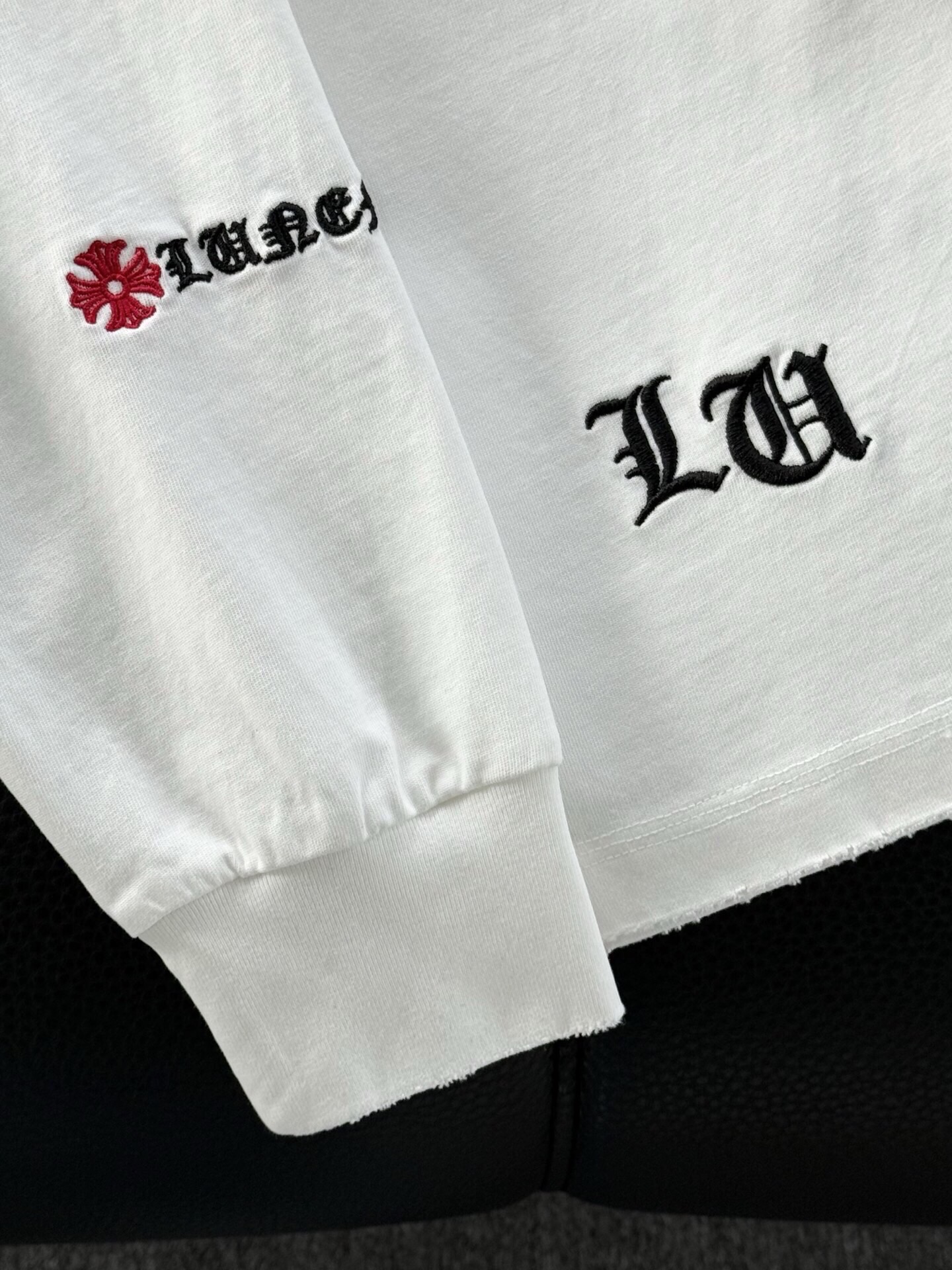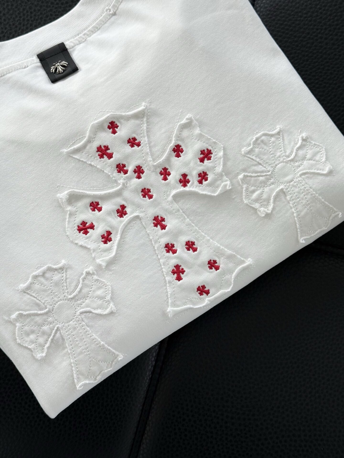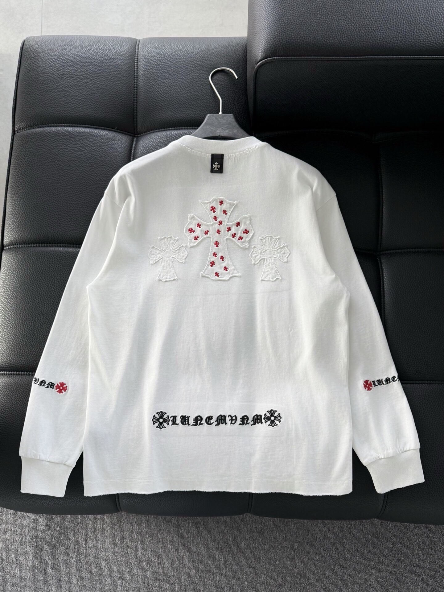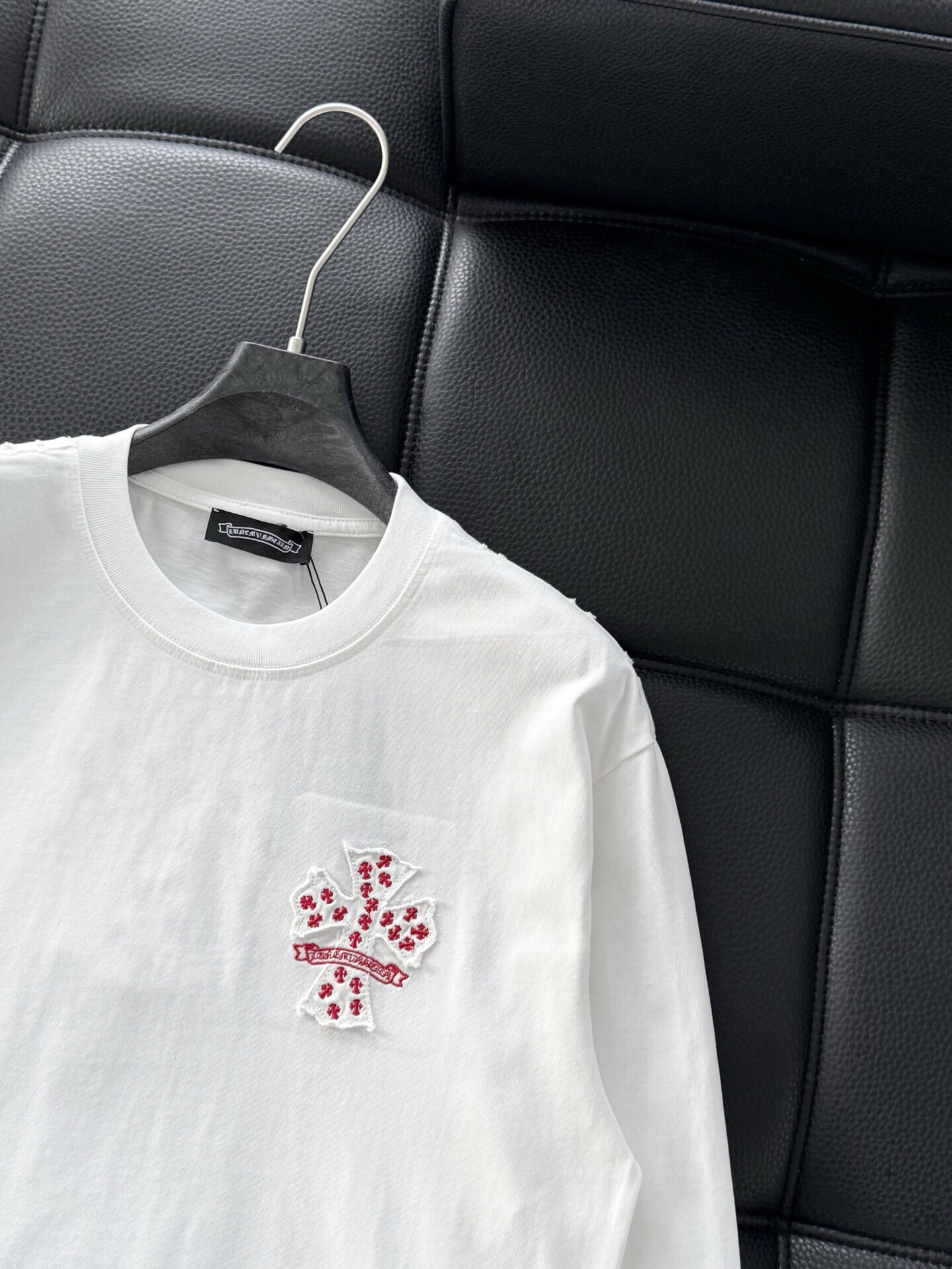 這款衣服是AAAAA 1:1 質量(非常棒). 使用了和原版一模一樣的材料. 商標部分也保持了和鉻心/Chrome Hearts一樣. 圖片拍攝是實物衣服拍攝, 您所收到的實物保證和我們圖片一模一樣.
