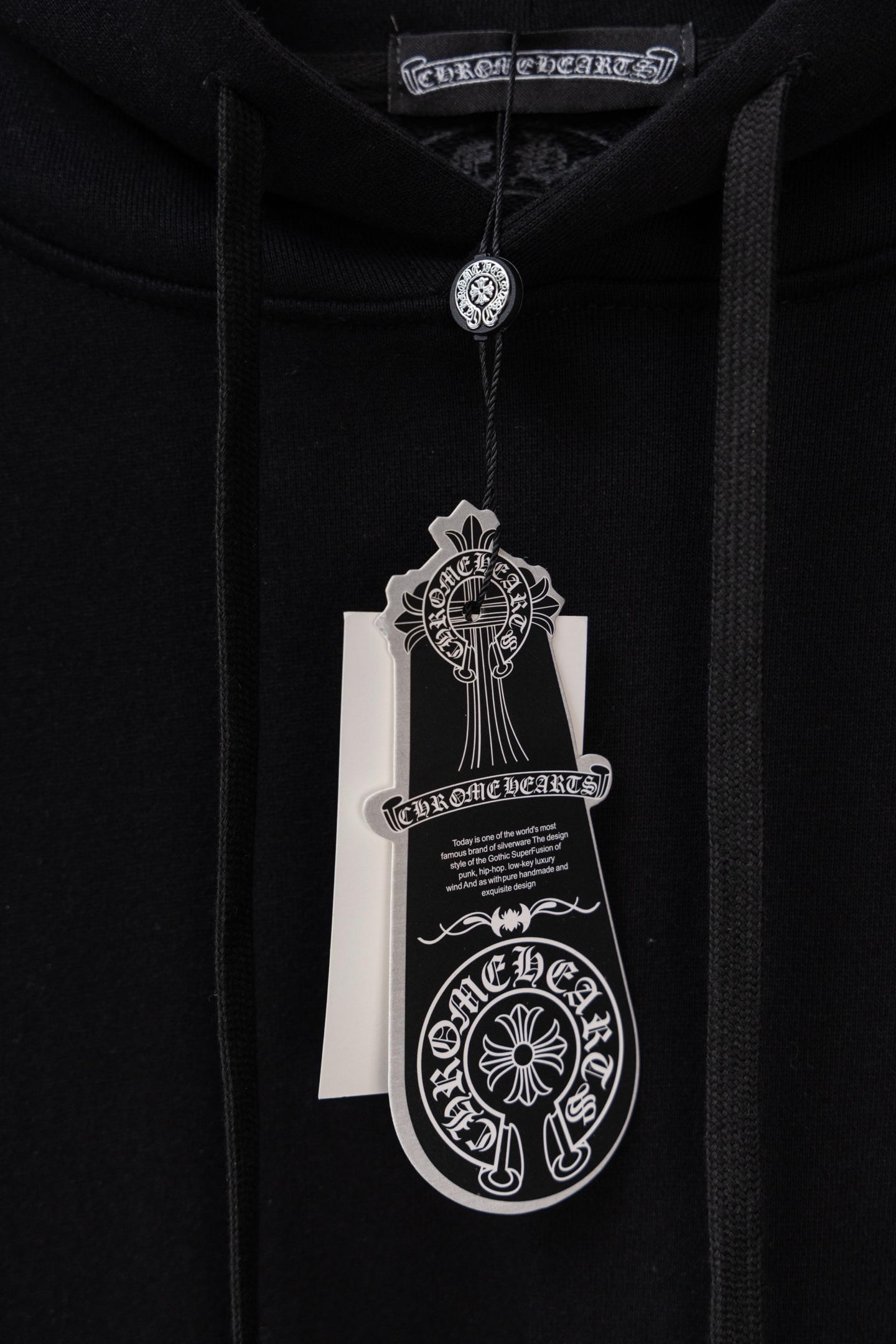 這款衣服是AAAAA 1:1 質量(非常棒). 使用了和原版一模一樣的材料. 商標部分也保持了和鉻心/Chrome Hearts一樣. 圖片拍攝是實物衣服拍攝, 您所收到的實物保證和我們圖片一模一樣.