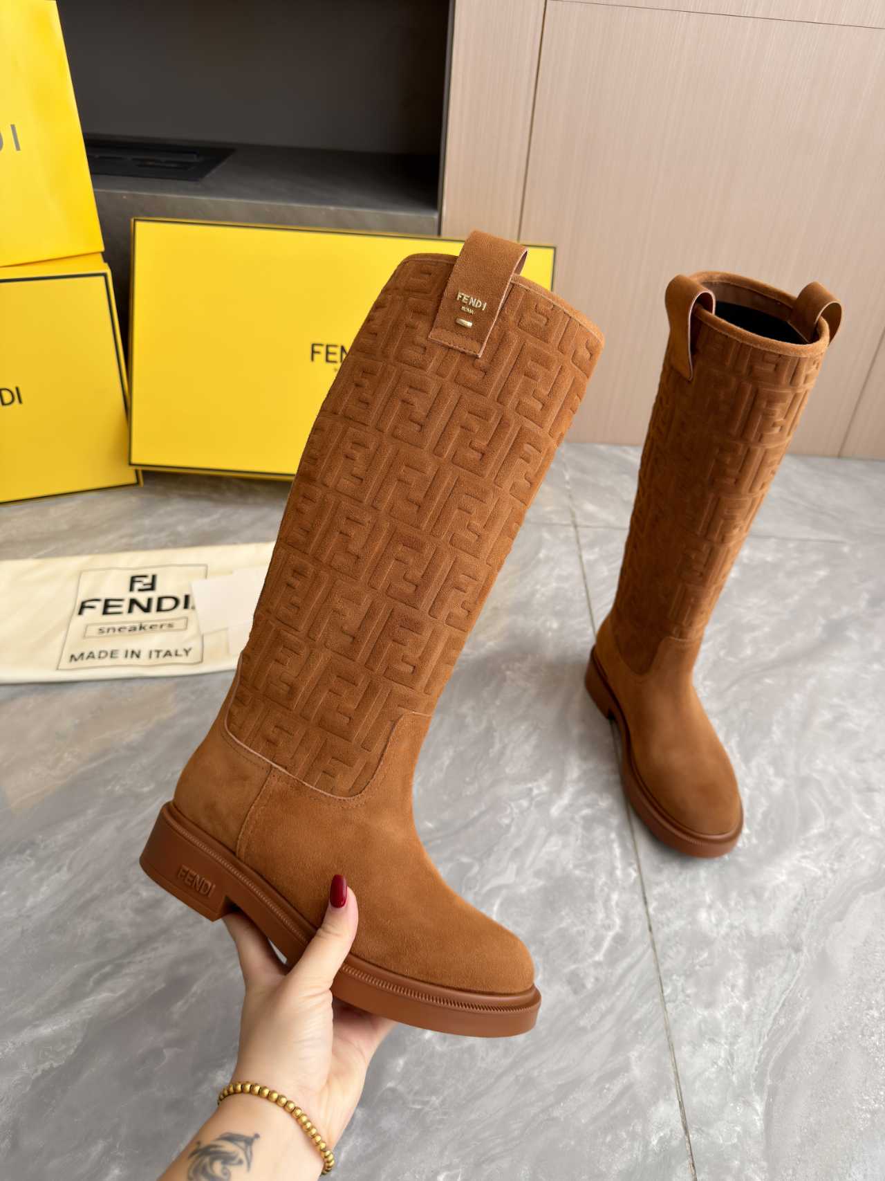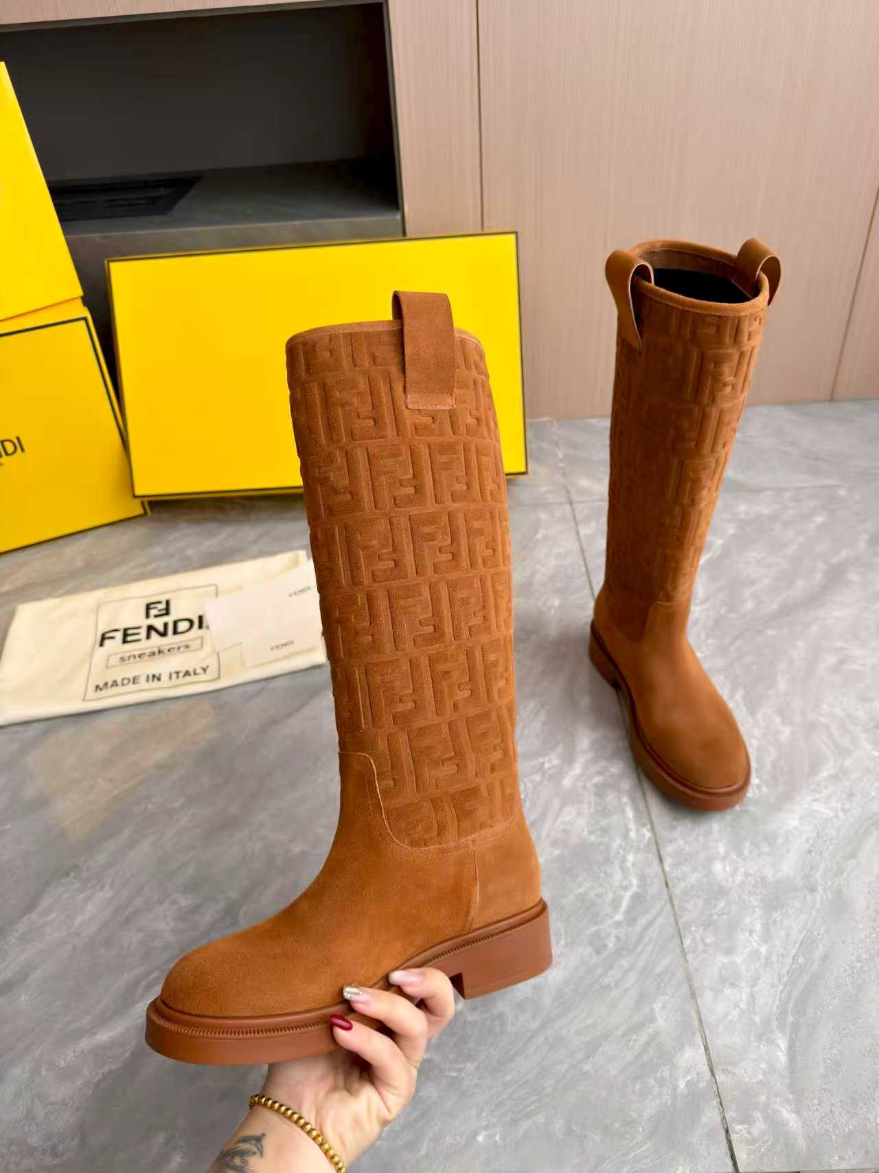 這款鞋子是AAAAA 1:1 質量(非常棒). 使用了和原版一模一樣的材料. 商標部分也保持了和芬迪/Fendi一樣. 圖片拍攝是實物鞋子拍攝, 您所收到的實物保證和我們圖片一模一樣.