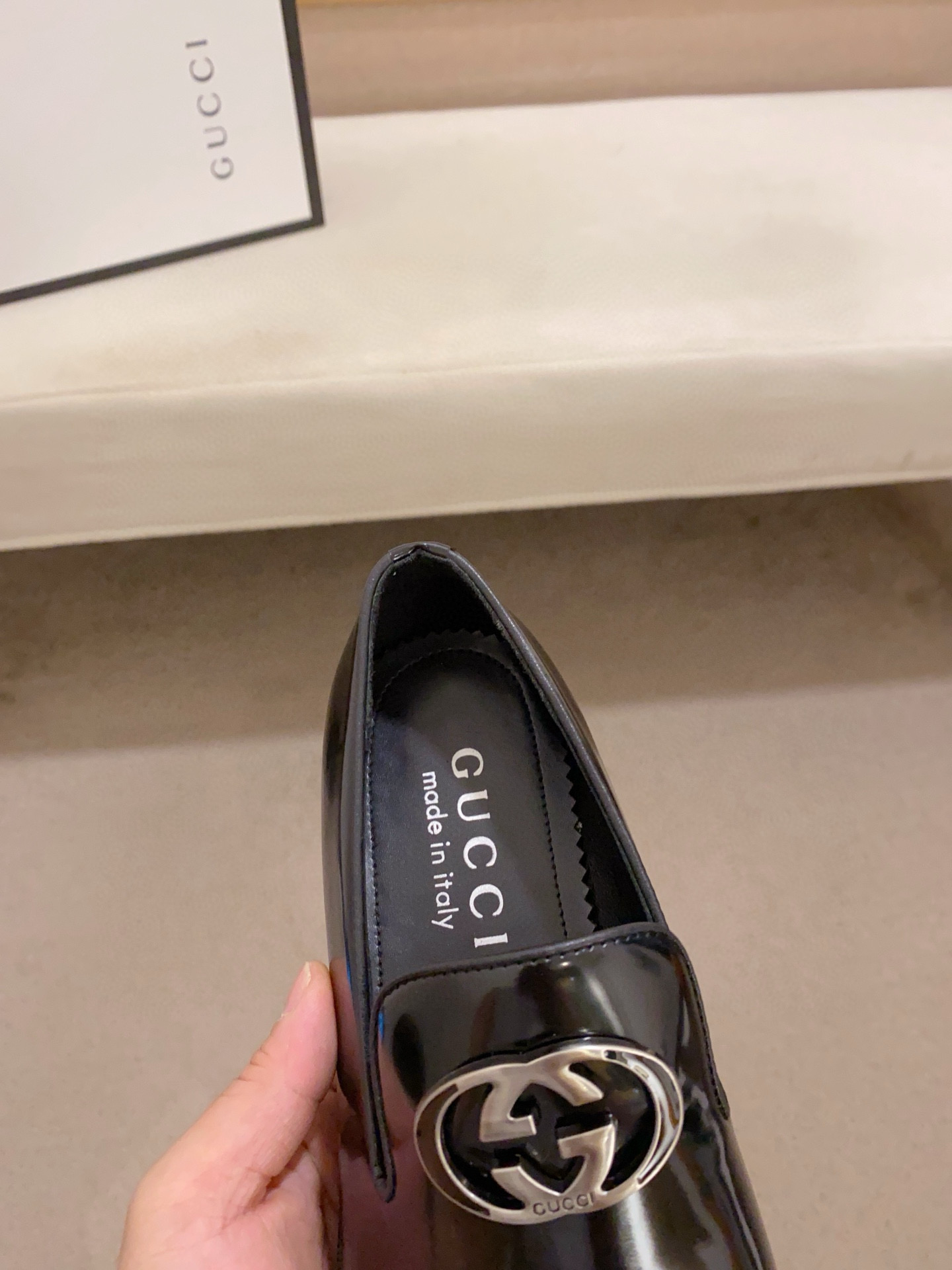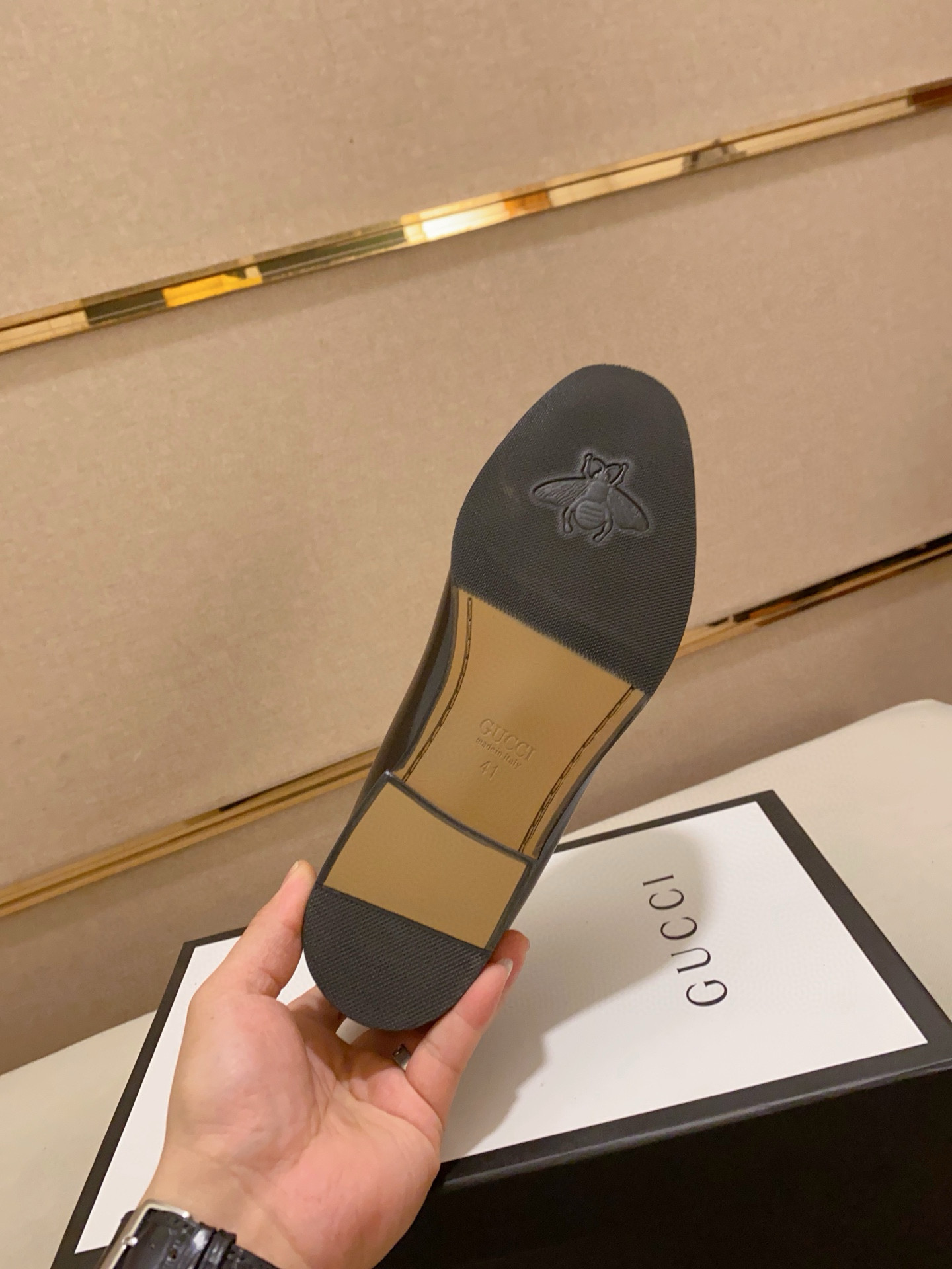 這款鞋子是AAAAA 1:1 質量(非常棒). 使用了和原版一模一樣的材料. 商標部分也保持了和古奇/Gucci一樣. 圖片拍攝是實物鞋子拍攝, 您所收到的實物保證和我們圖片一模一樣.
