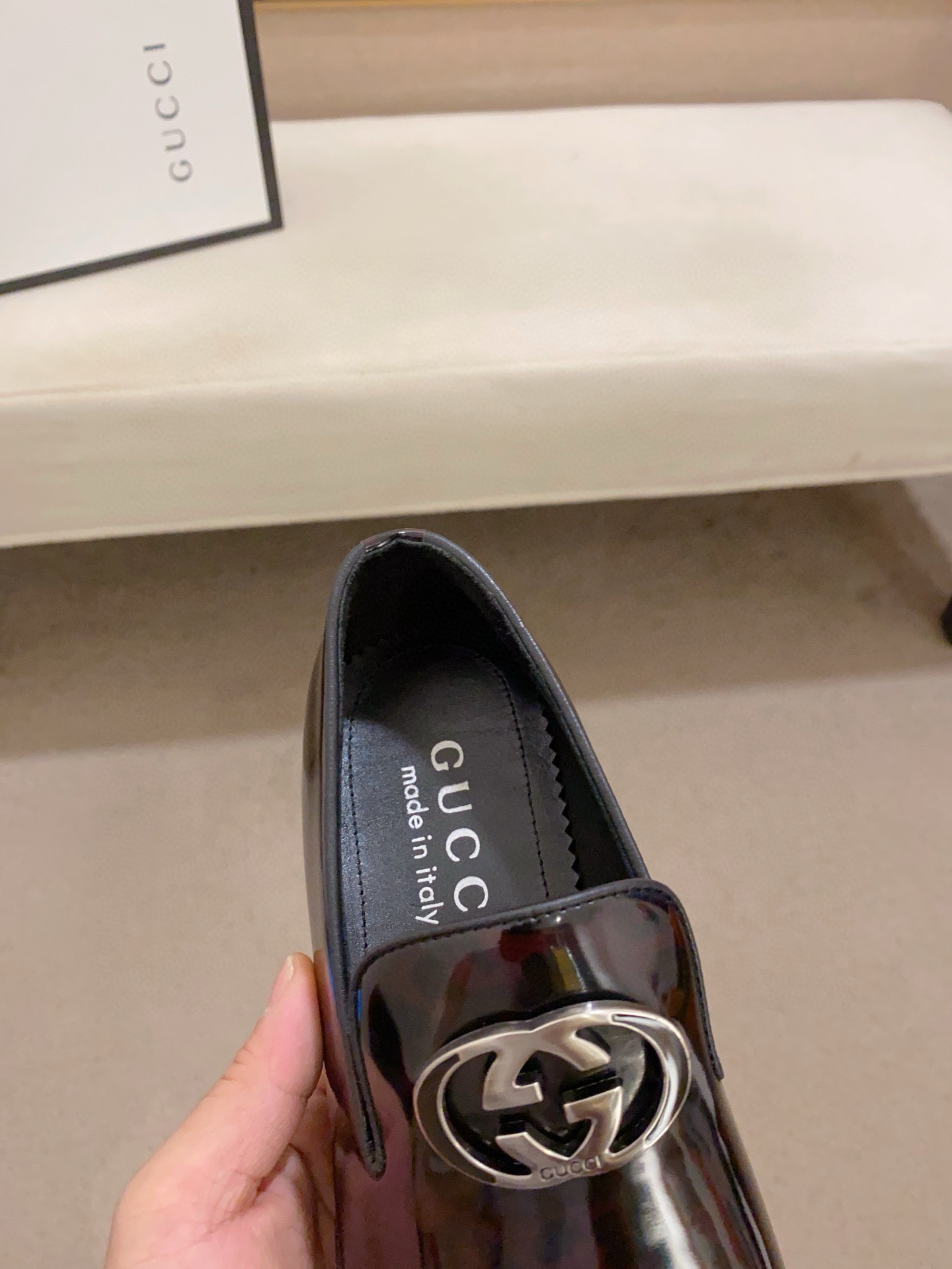 這款鞋子是AAAAA 1:1 質量(非常棒). 使用了和原版一模一樣的材料. 商標部分也保持了和古奇/Gucci一樣. 圖片拍攝是實物鞋子拍攝, 您所收到的實物保證和我們圖片一模一樣.