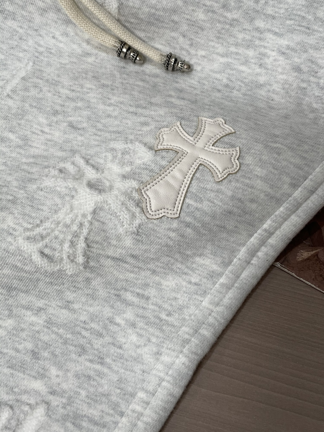 這款衣服是AAAAA 1:1 質量(非常棒). 使用了和原版一模一樣的材料. 商標部分也保持了和鉻心/Chrome Hearts一樣. 圖片拍攝是實物衣服拍攝, 您所收到的實物保證和我們圖片一模一樣.