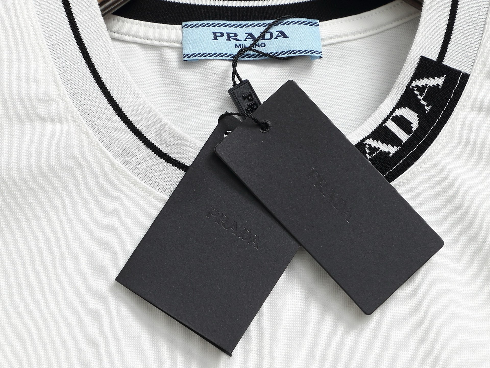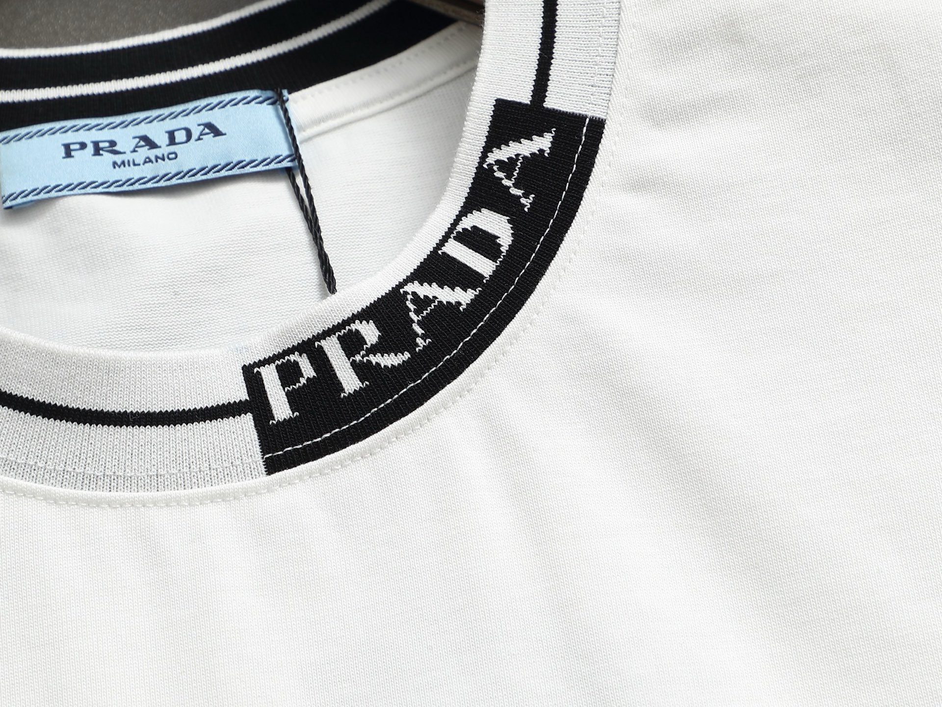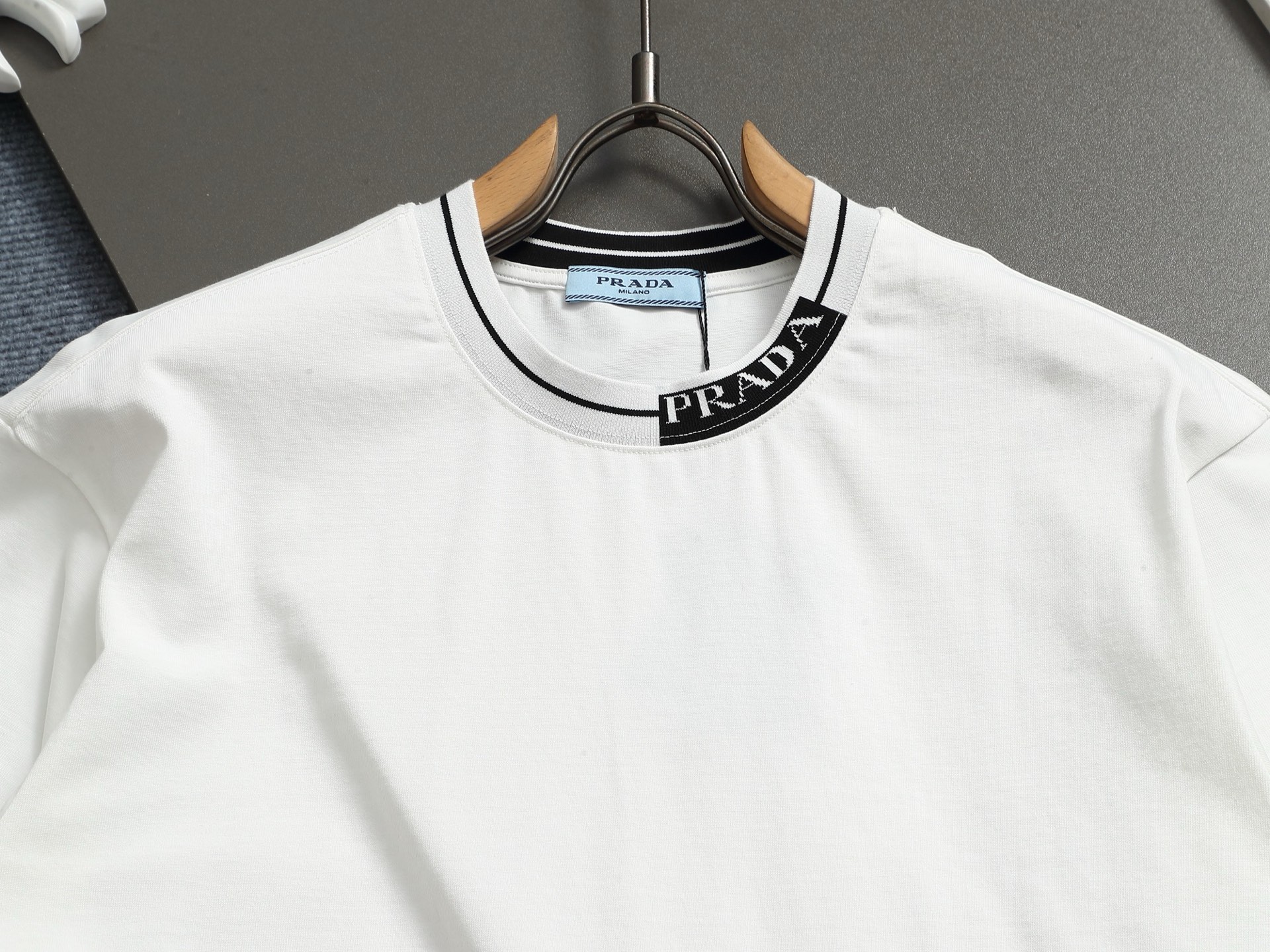 這款衣服是AAAAA 1:1 質量(非常棒). 使用了和原版一模一樣的材料. 商標部分也保持了和普拉達/Prada一樣. 圖片拍攝是實物衣服拍攝, 您所收到的實物保證和我們圖片一模一樣.