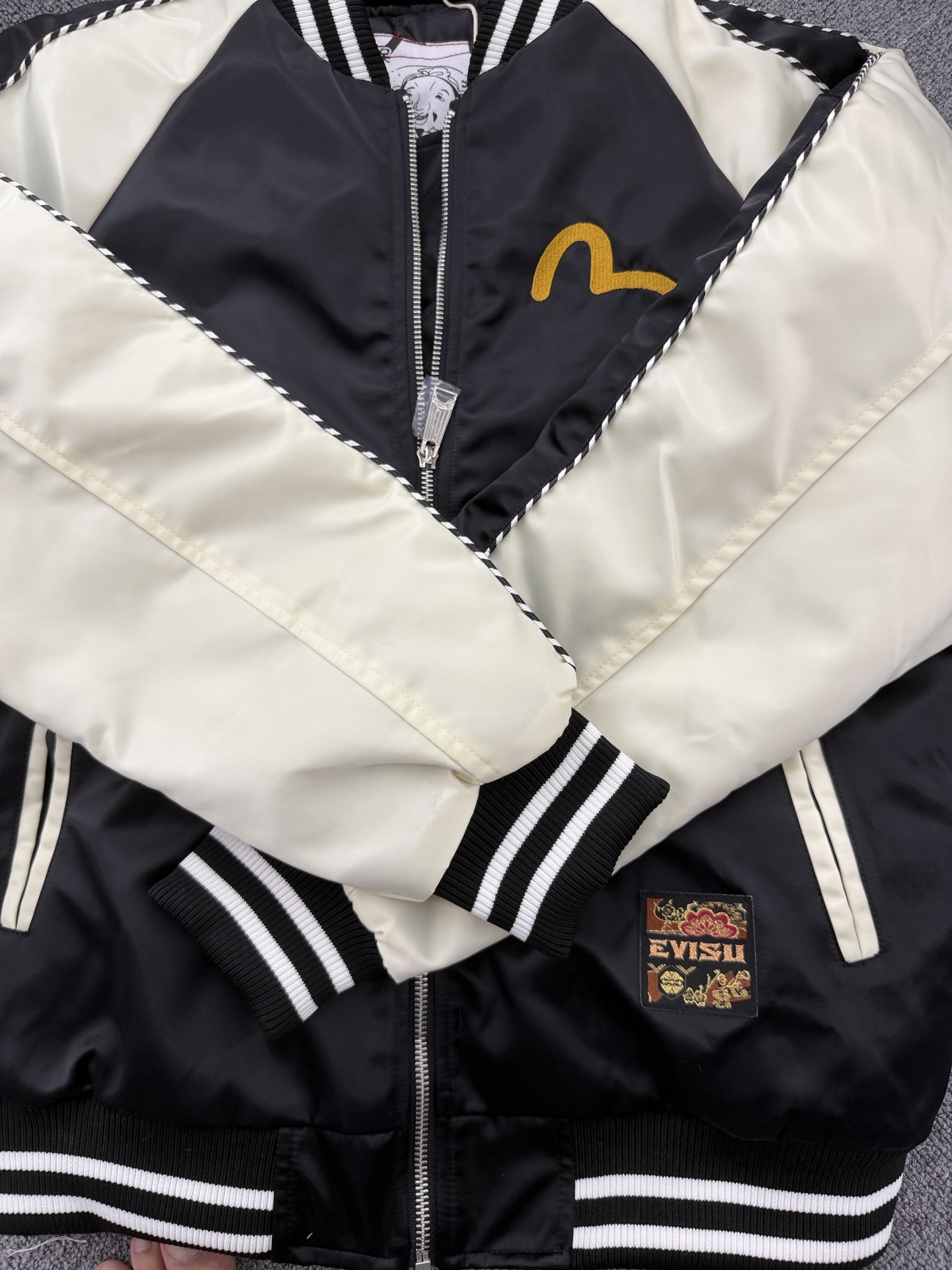 這款衣服是AAAAA 1:1 質量(非常棒). 使用了和原版一模一樣的材料. 商標部分也保持了和EVISU一樣. 圖片拍攝是實物衣服拍攝, 您所收到的實物保證和我們圖片一模一樣.