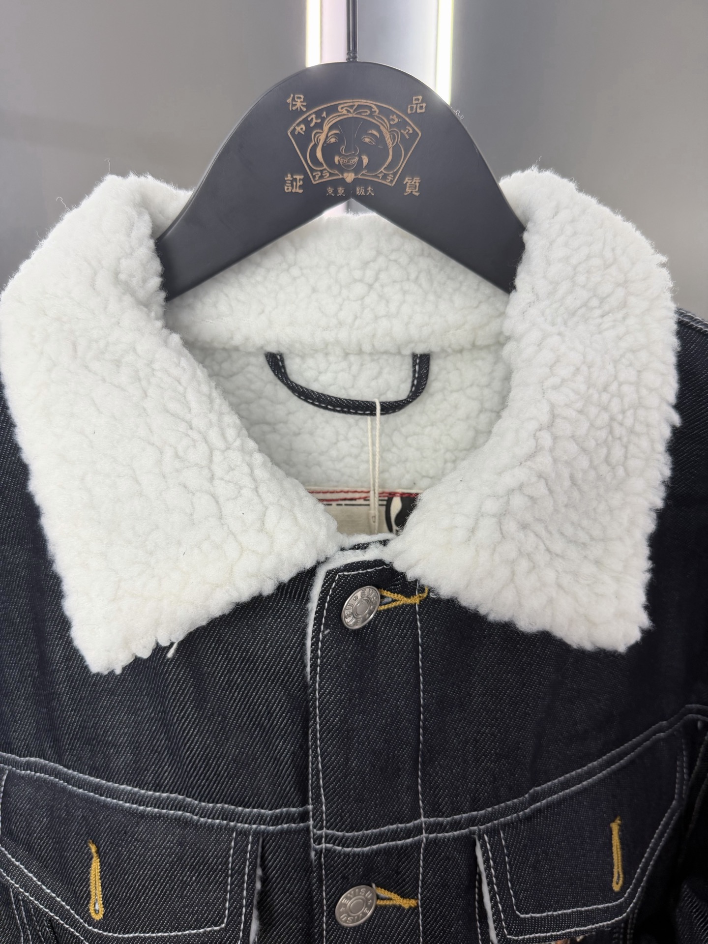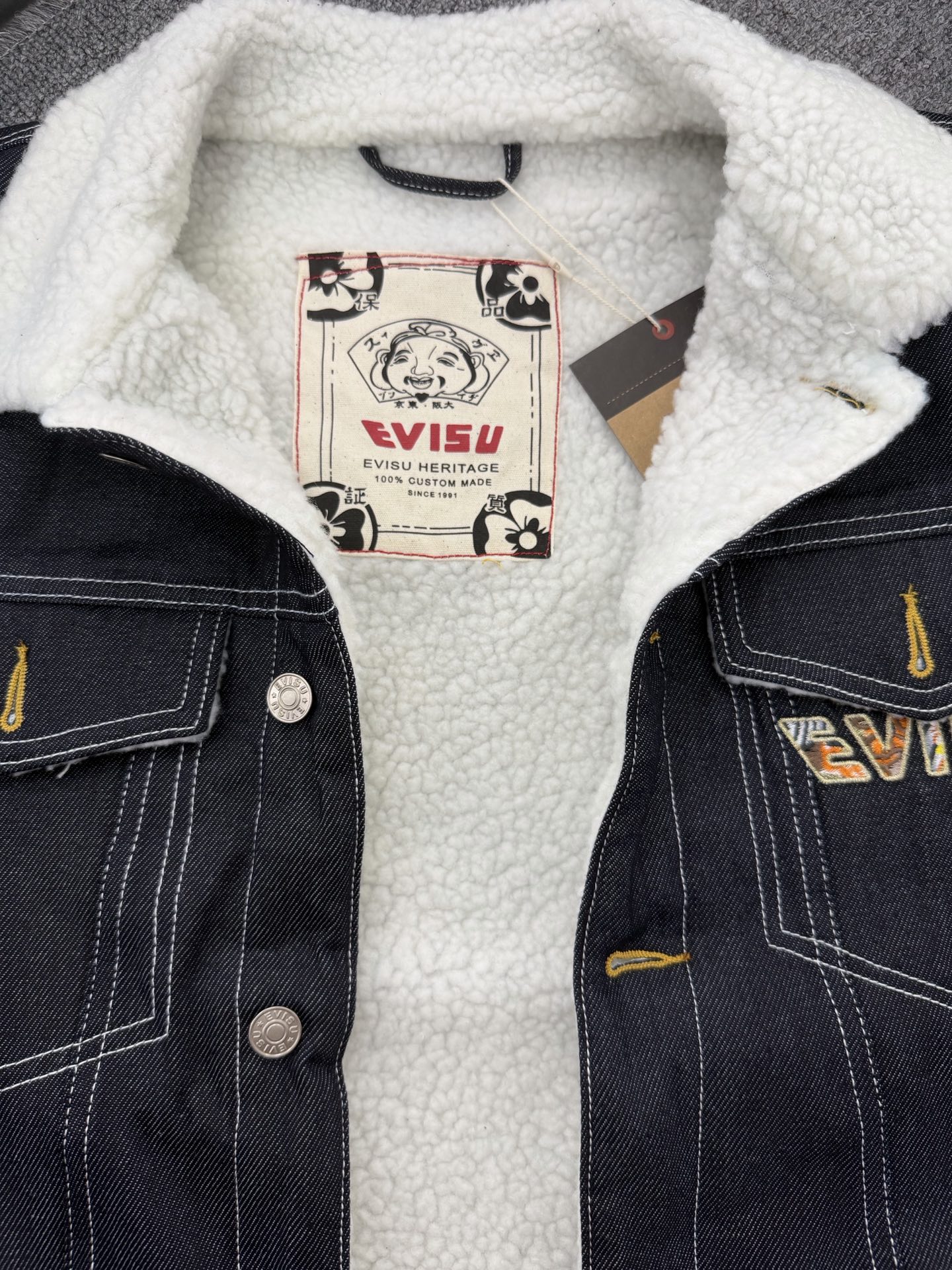 這款衣服是AAAAA 1:1 質量(非常棒). 使用了和原版一模一樣的材料. 商標部分也保持了和EVISU一樣. 圖片拍攝是實物衣服拍攝, 您所收到的實物保證和我們圖片一模一樣.
