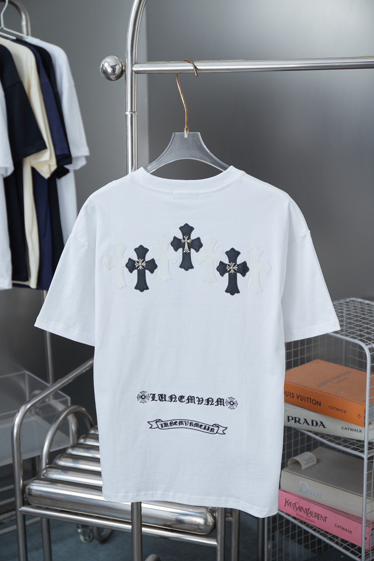 這款衣服是AAAAA 1:1 質量(非常棒). 使用了和原版一模一樣的材料. 商標部分也保持了和鉻心/Chrome Hearts一樣. 圖片拍攝是實物衣服拍攝, 您所收到的實物保證和我們圖片一模一樣.