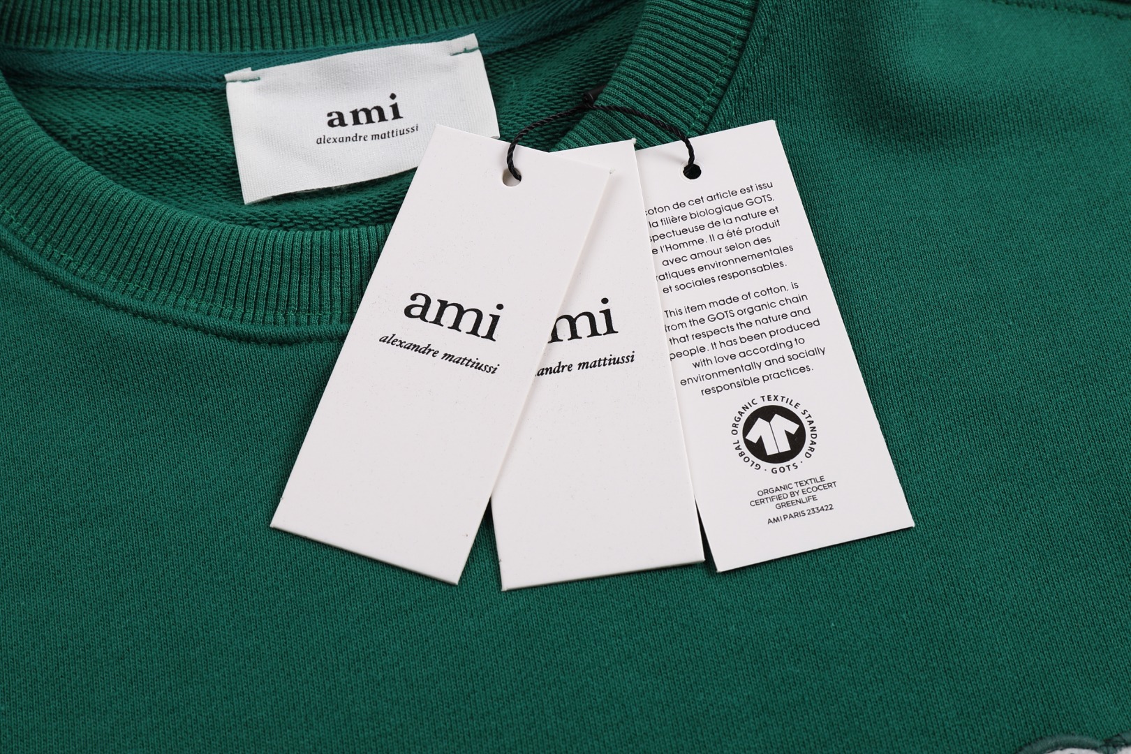 這款衣服是AAAAA 1:1 質量(非常棒). 使用了和原版一模一樣的材料. 商標部分也保持了和Ami一樣. 圖片拍攝是實物衣服拍攝, 您所收到的實物保證和我們圖片一模一樣.